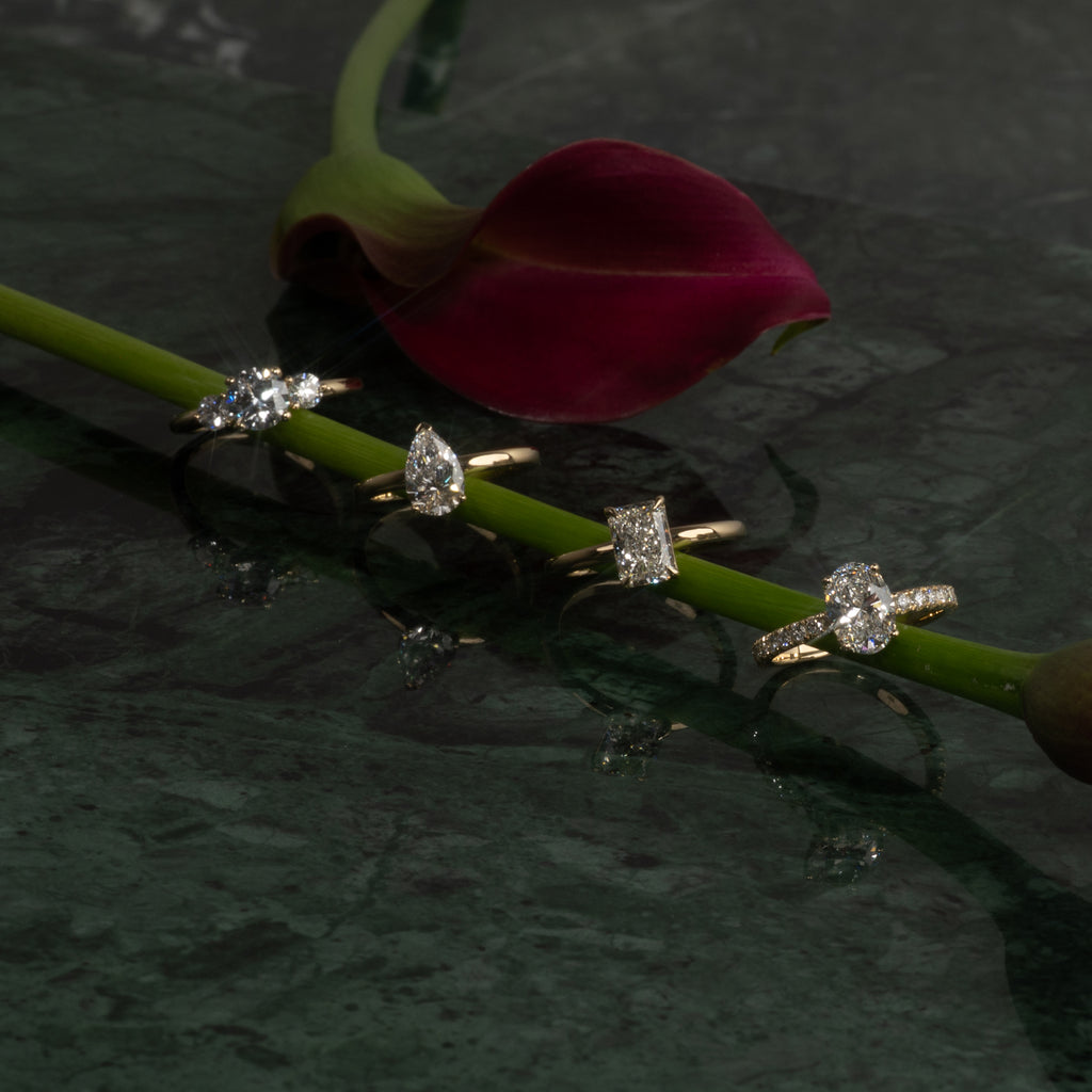 Bli kjent med form, størrelse, stil og materialer, og se vårt utvalg av klassiske og moderne forlovelsesringer.