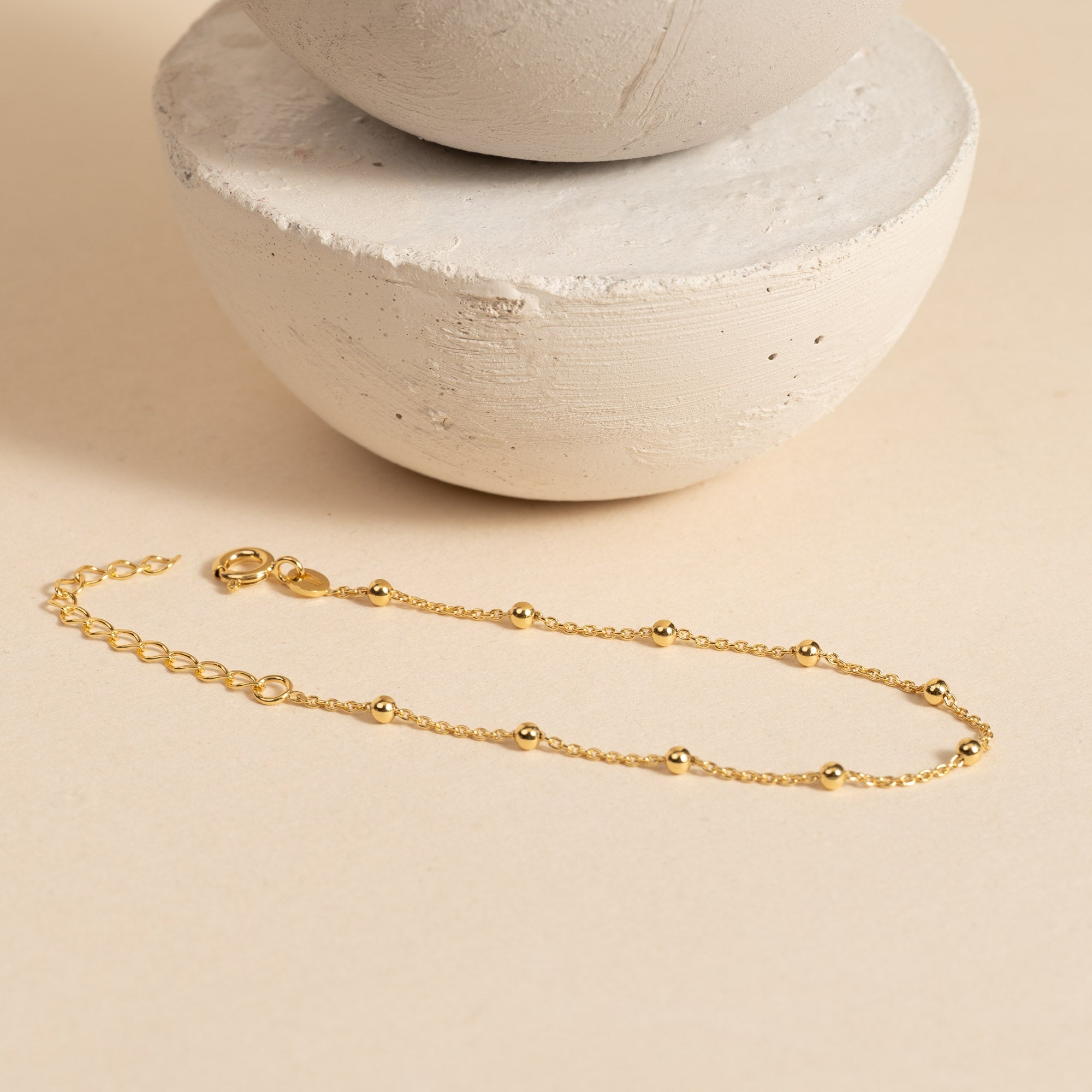 Armbåndet er med fjærlås. Det er justerbart i størrelsen, og måler 15,5 cm til 19,5 cm i omkrets. Ankerkjedet har små kuler som gir en fin detalj til det ellers enkle designet.