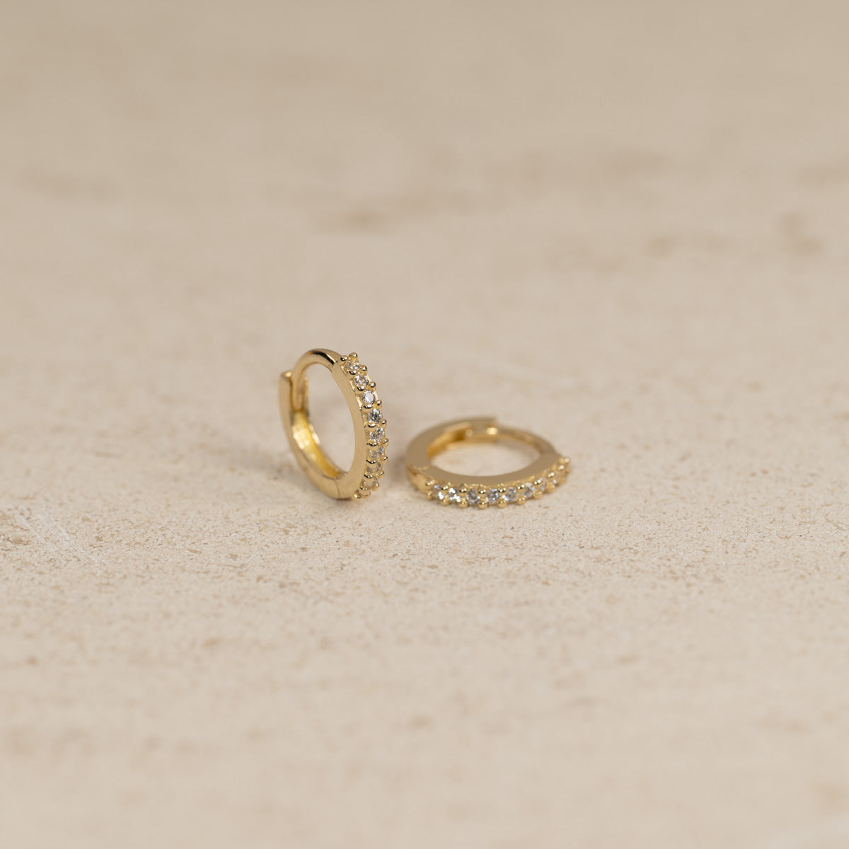 Øreringene er besatt med små, klare glitrende zirkoniastener som gir en feminin detalje til de ellers enkle øreringene.