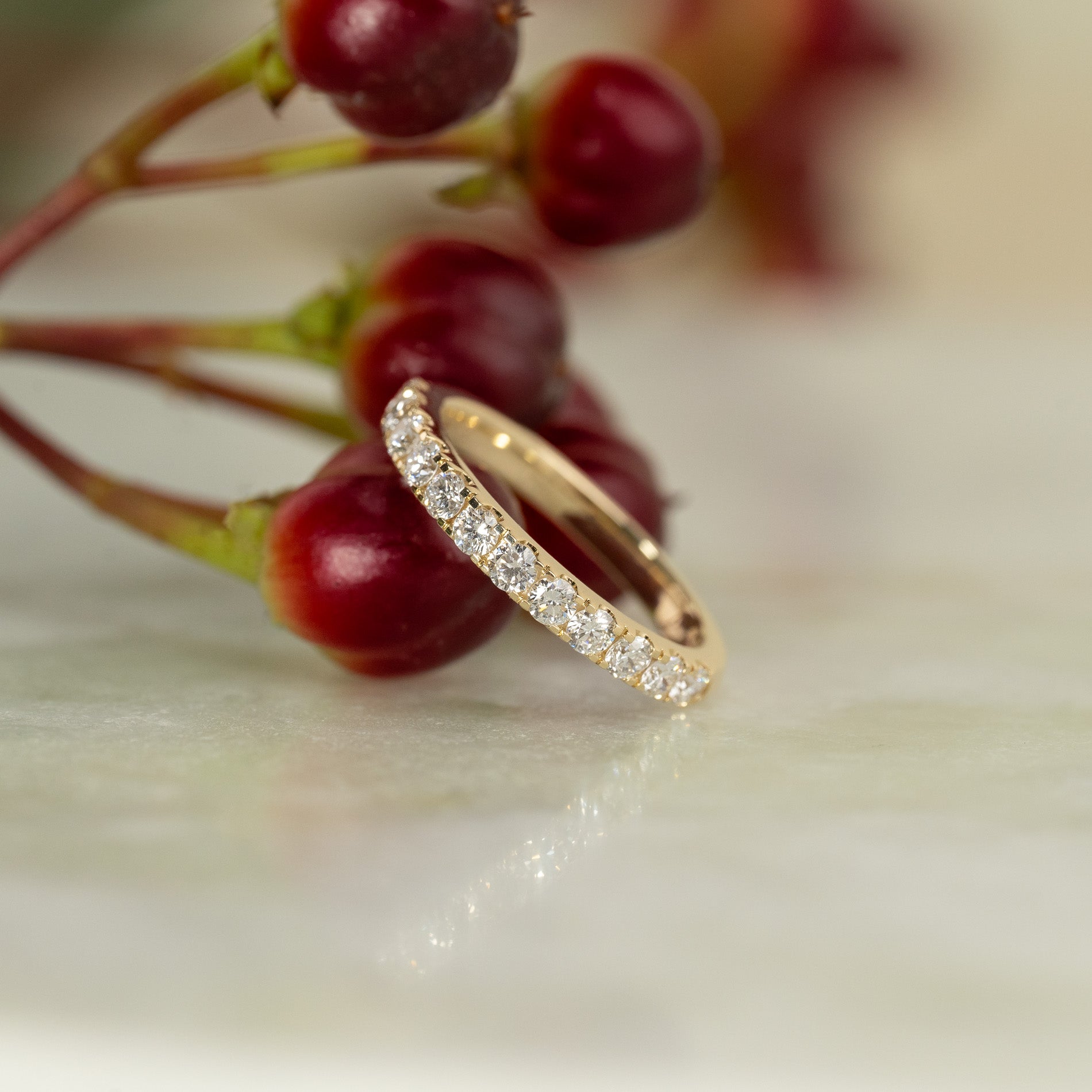 Alliansering med en rekke lab-dyrkede diamanter på øvre halvdel av skinnen.