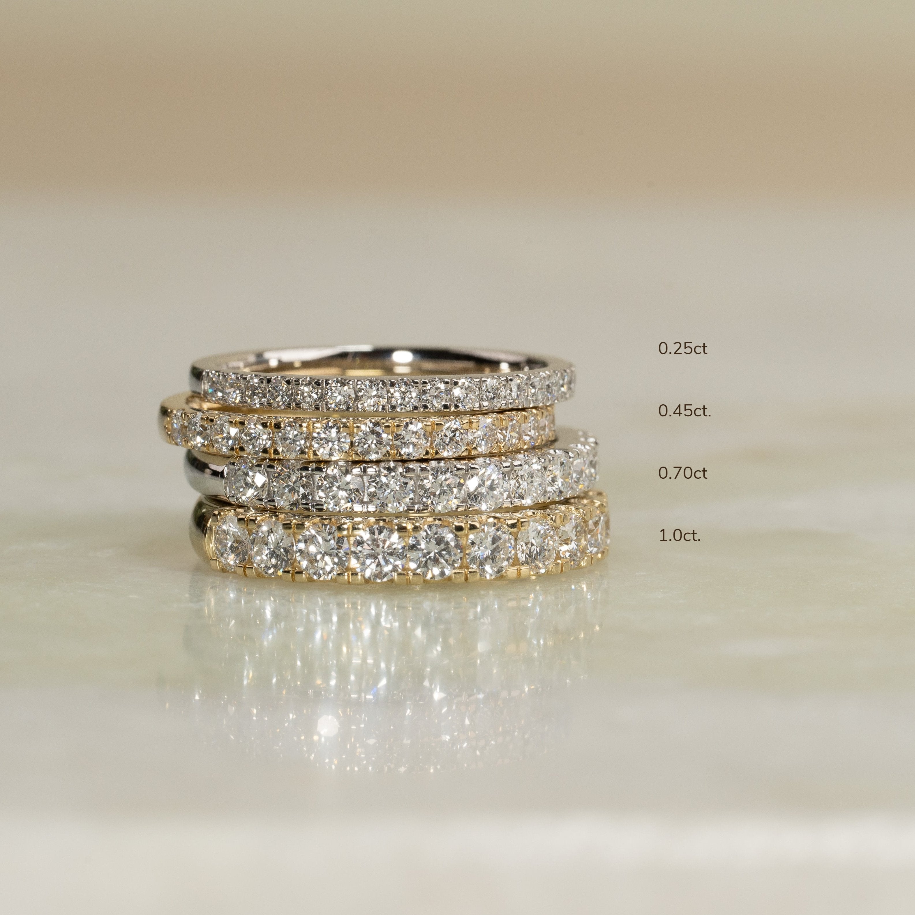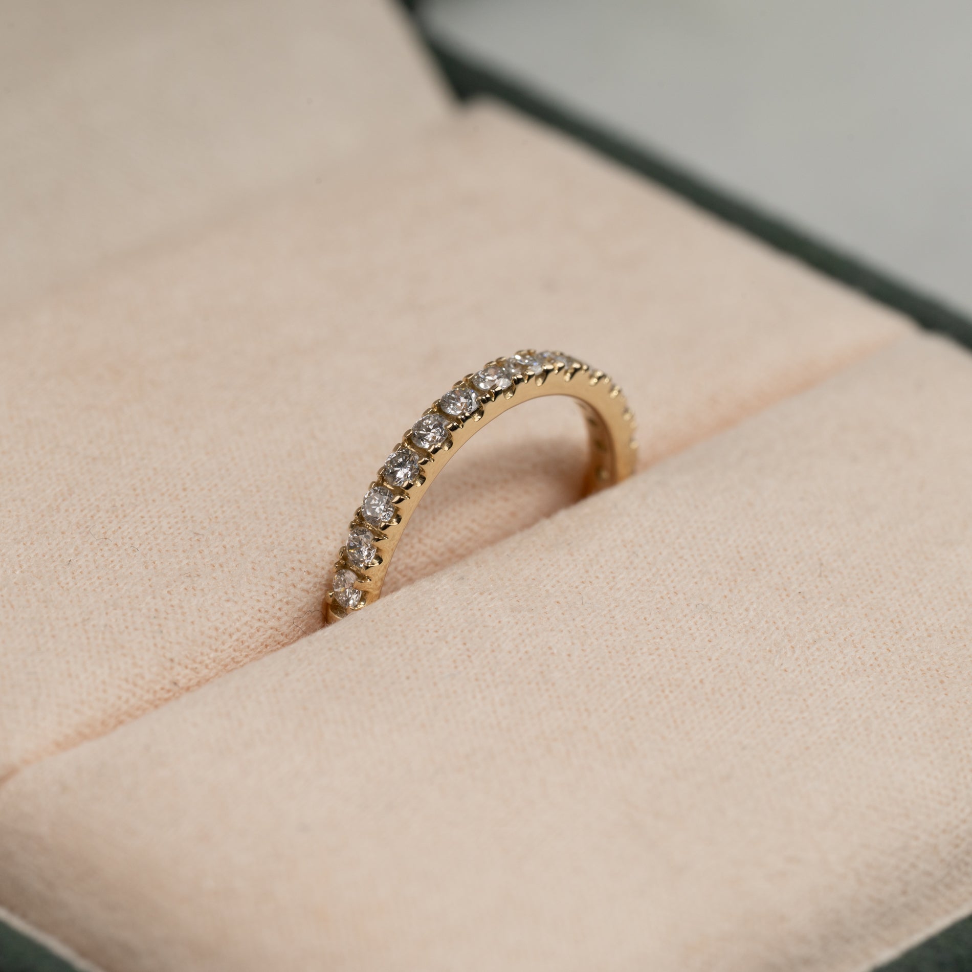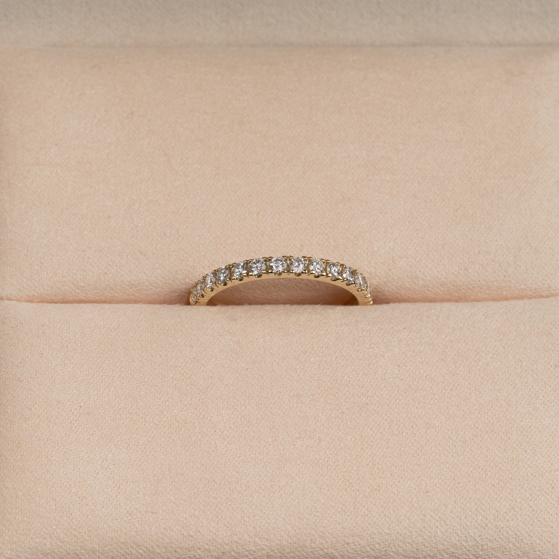 Allianseringen har en lang rekke lab-dyrkede diamanter (totalt 0,45 ct.) langs den øvre halvdelen av ringenskinnen. Ringen er et klassisk og tidløst smykke som er en sikker vinner, også i hverdagen.
