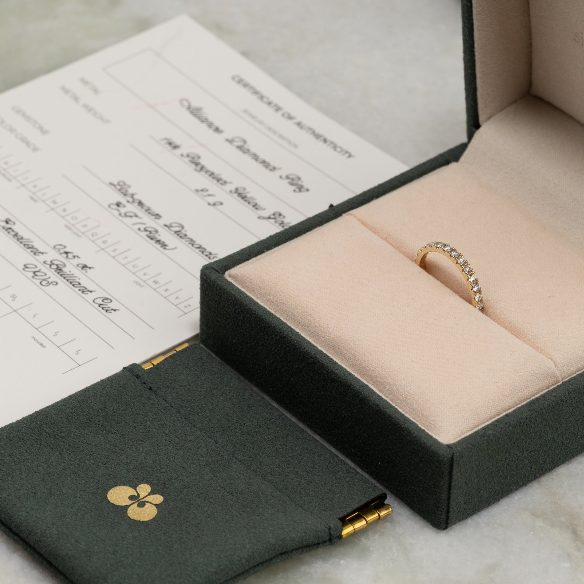 Ringen kommer i vår eksklusive Diamond Collection eske med en fin smykkeboks, diamant-sertifikat og pouch. Boksen passer også perfekt dersom smykket skal gis i gave.