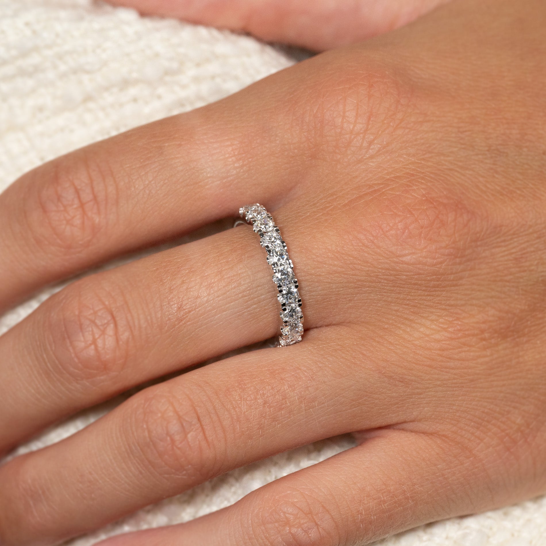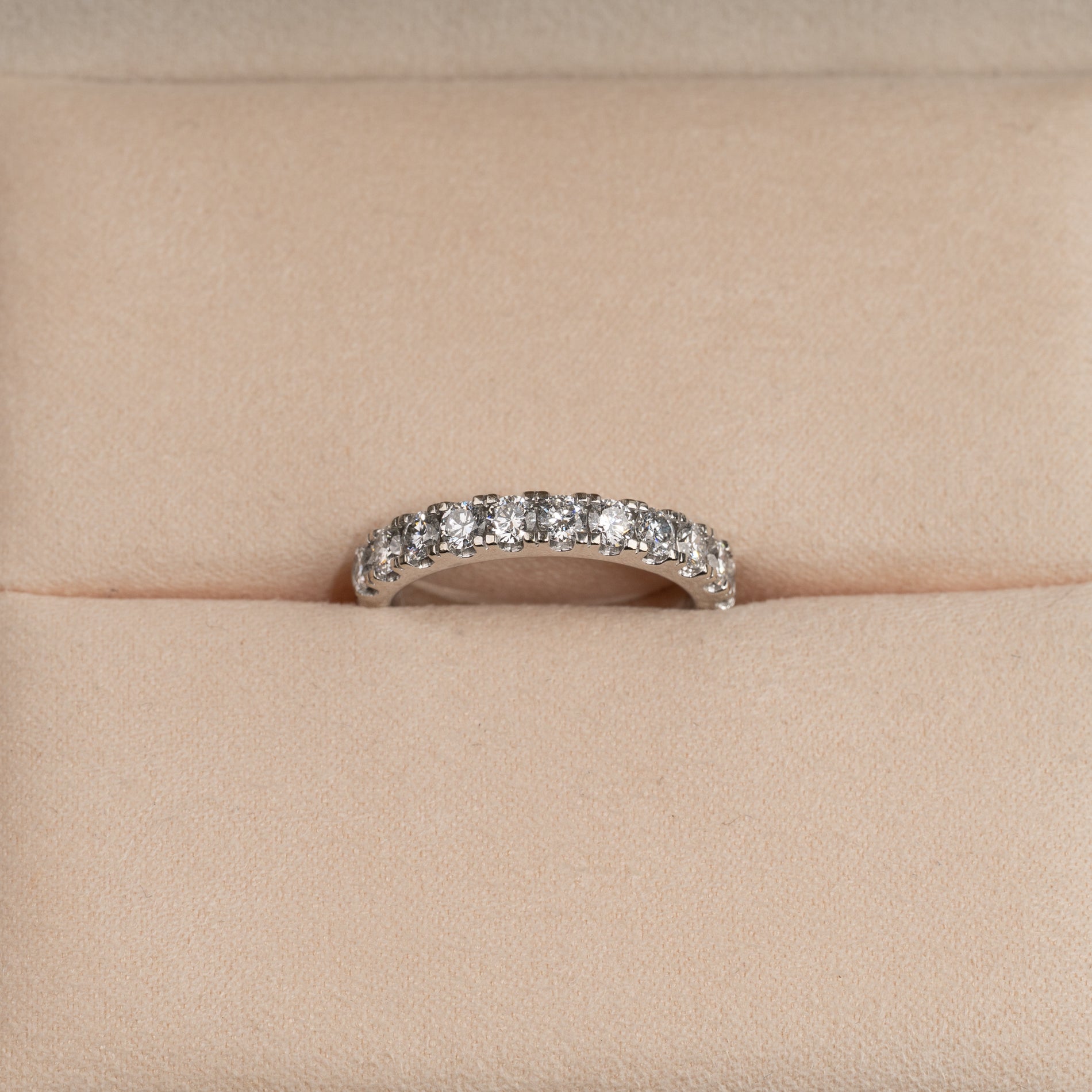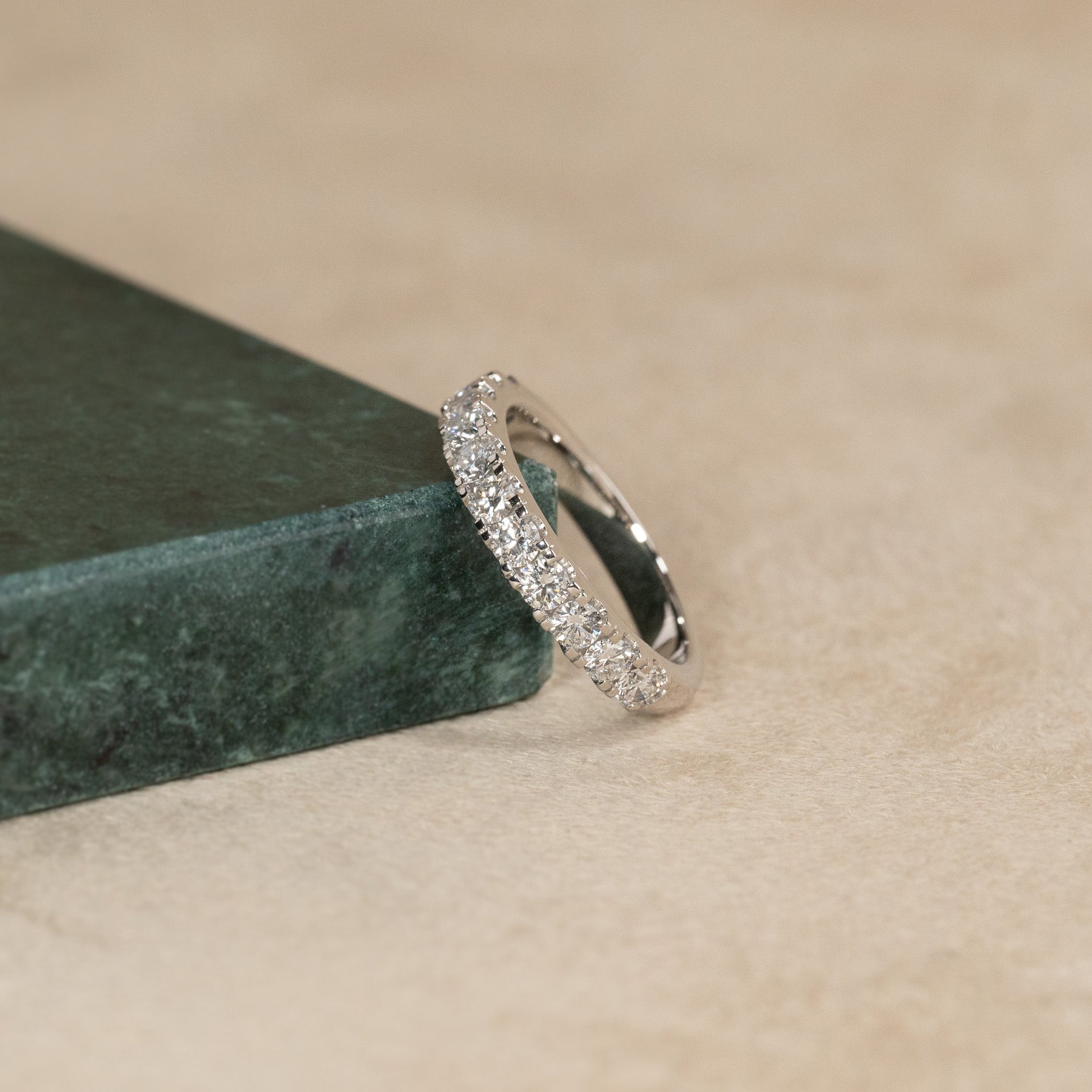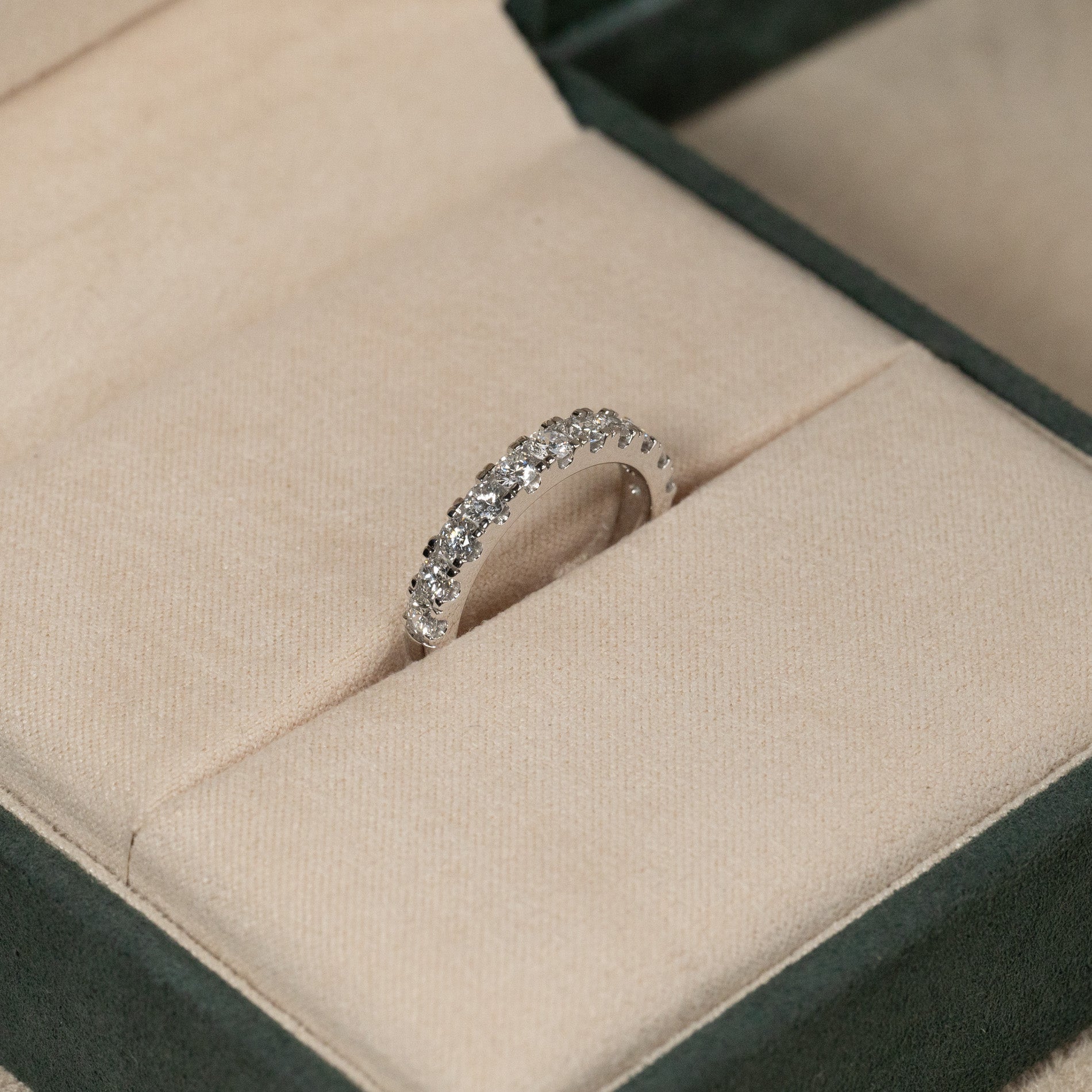 Allianseringen er laget i 14 karat hvitt gull med 11 lab-grown diamanter som sammen er 1,0 carat i den øvre delen av ringskinnen. Materialene gjør ringen lett og fin å bære, selv i en travel hverdag.
