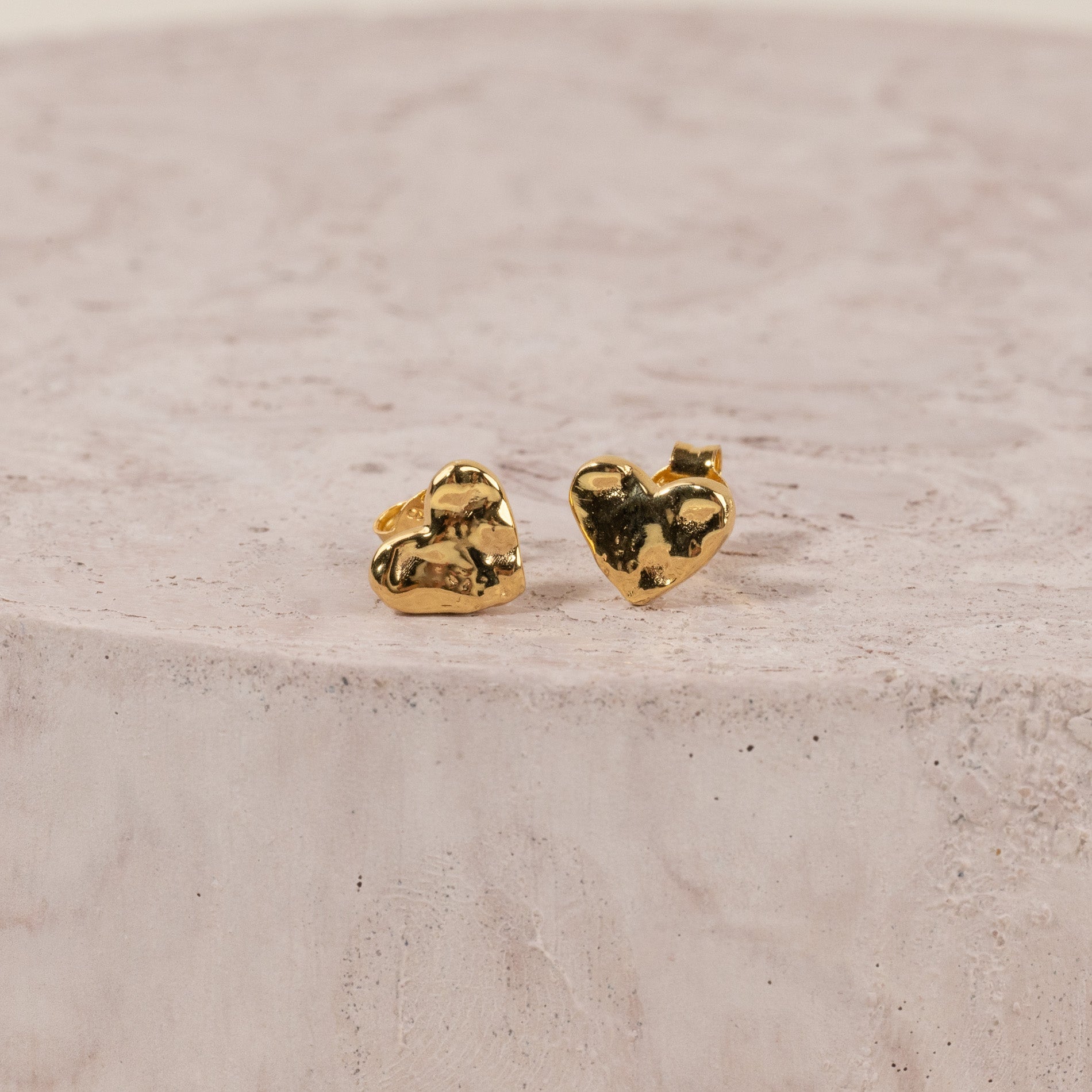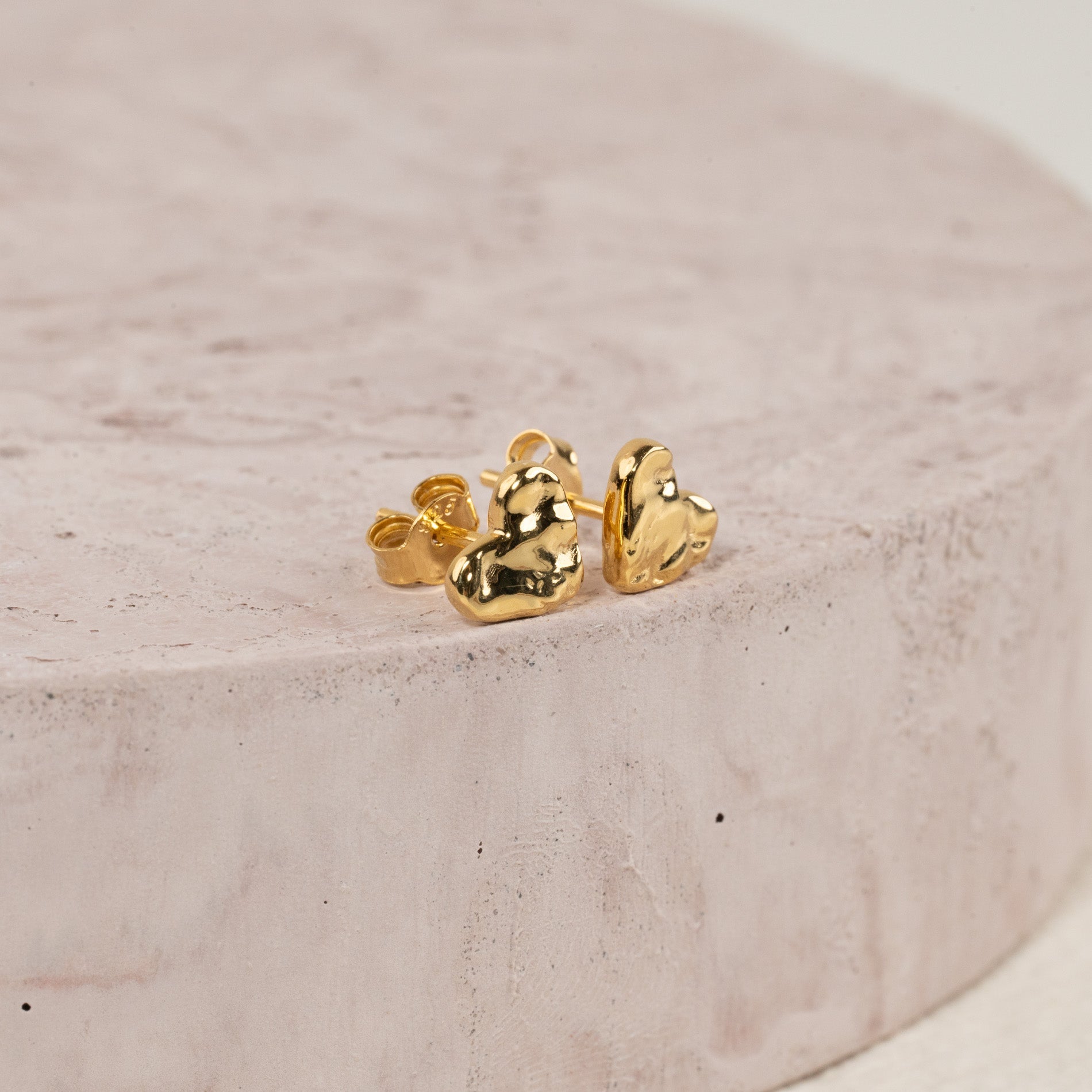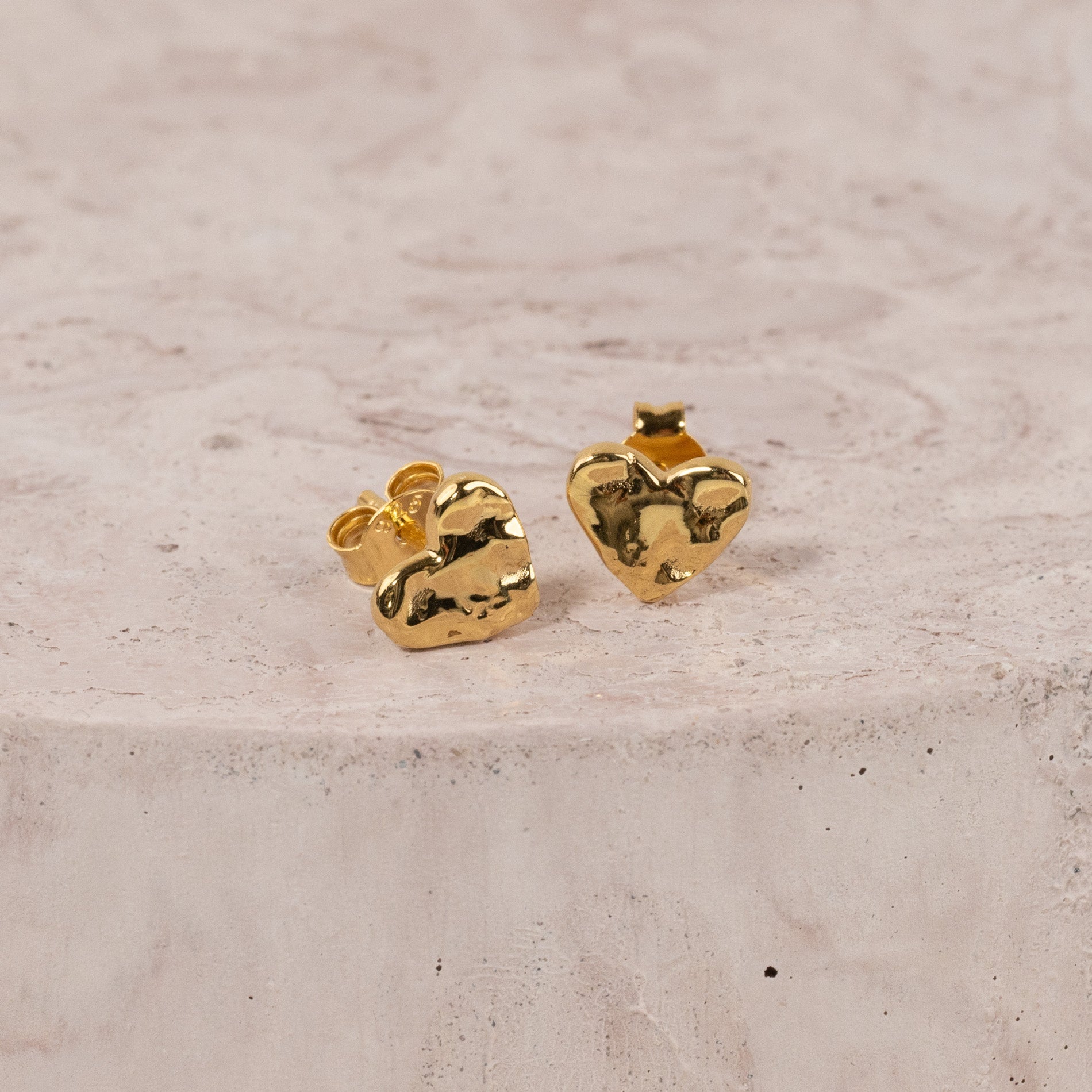 Øredobb i 100% resirkulert 18 karat forgylt sterlingsølv utformet som et hjerte. Øredobben har en rå overflate inspireret av smeltet metall.