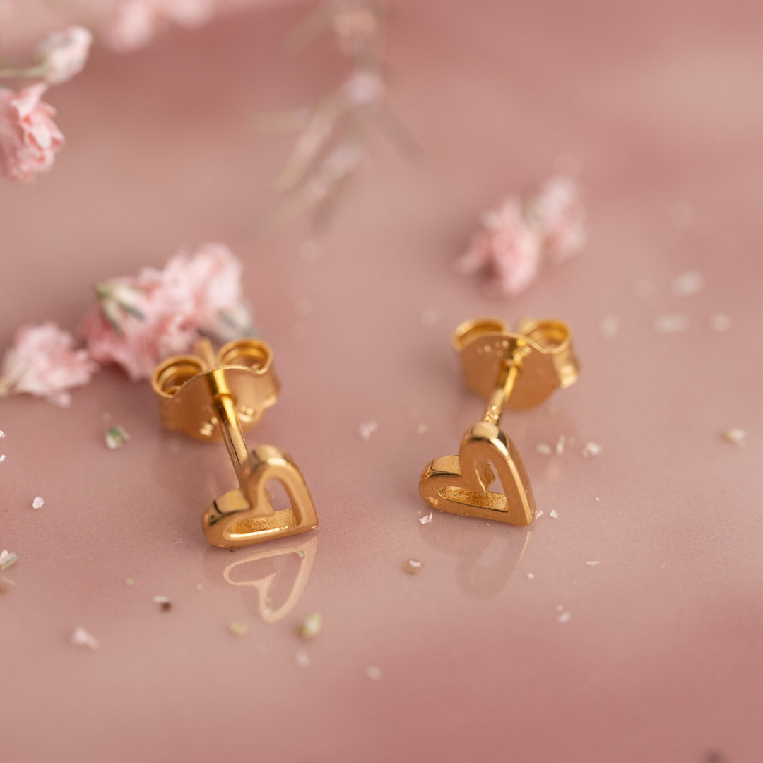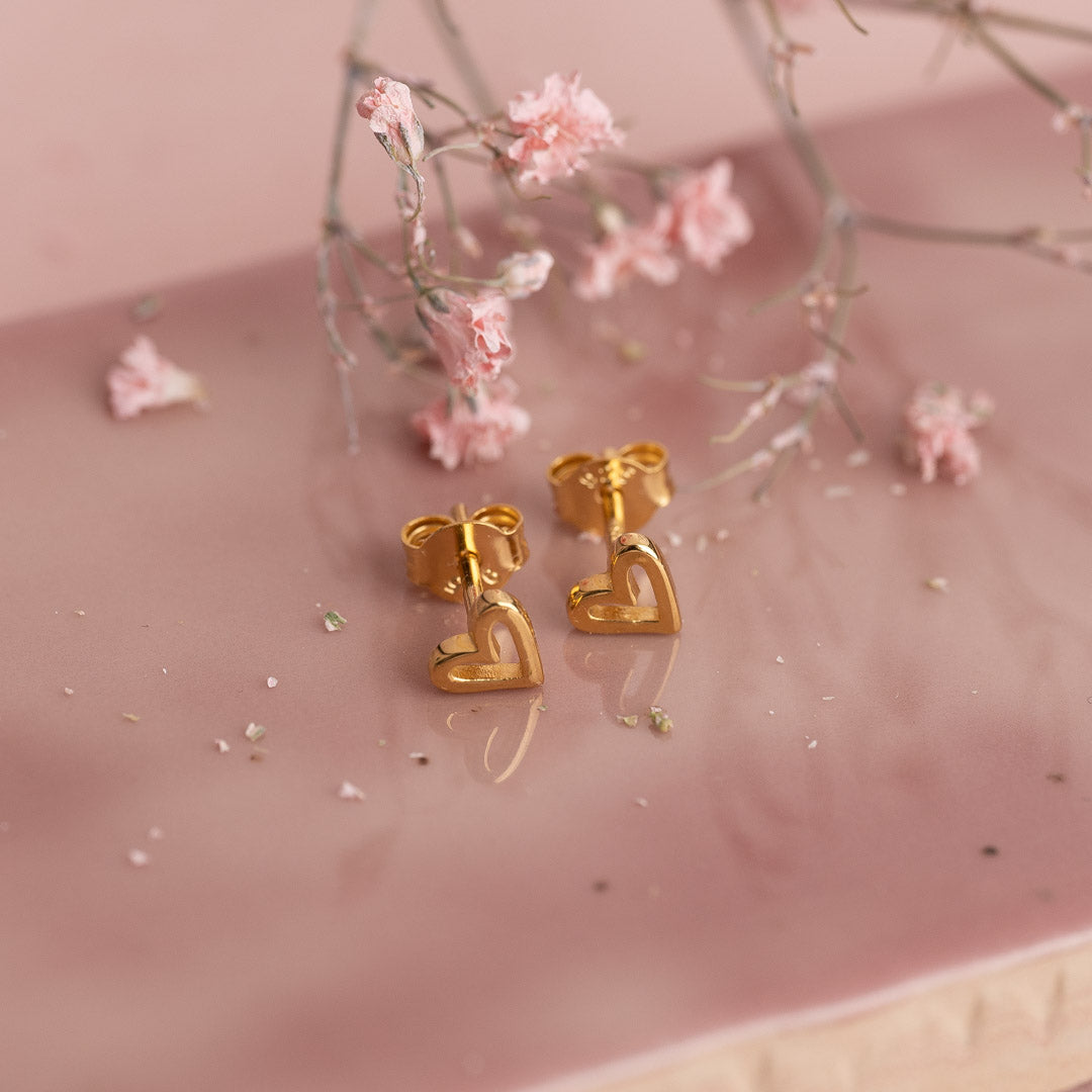 Øredobber i resirkulert 18 karat forgylt sterlingsølv. Hjertene måler ca. 6x6 mm og har en sommerfugllås.