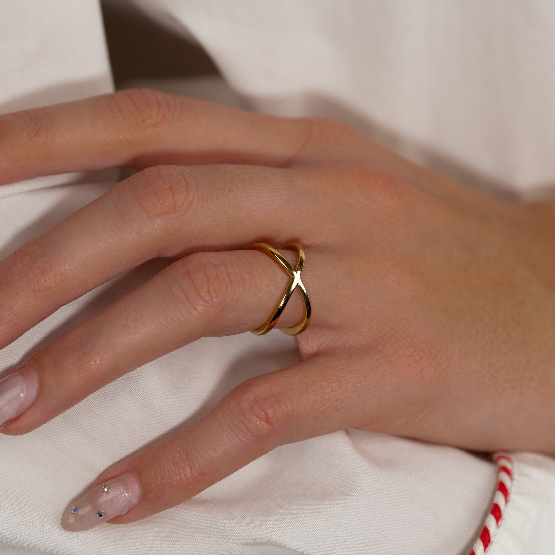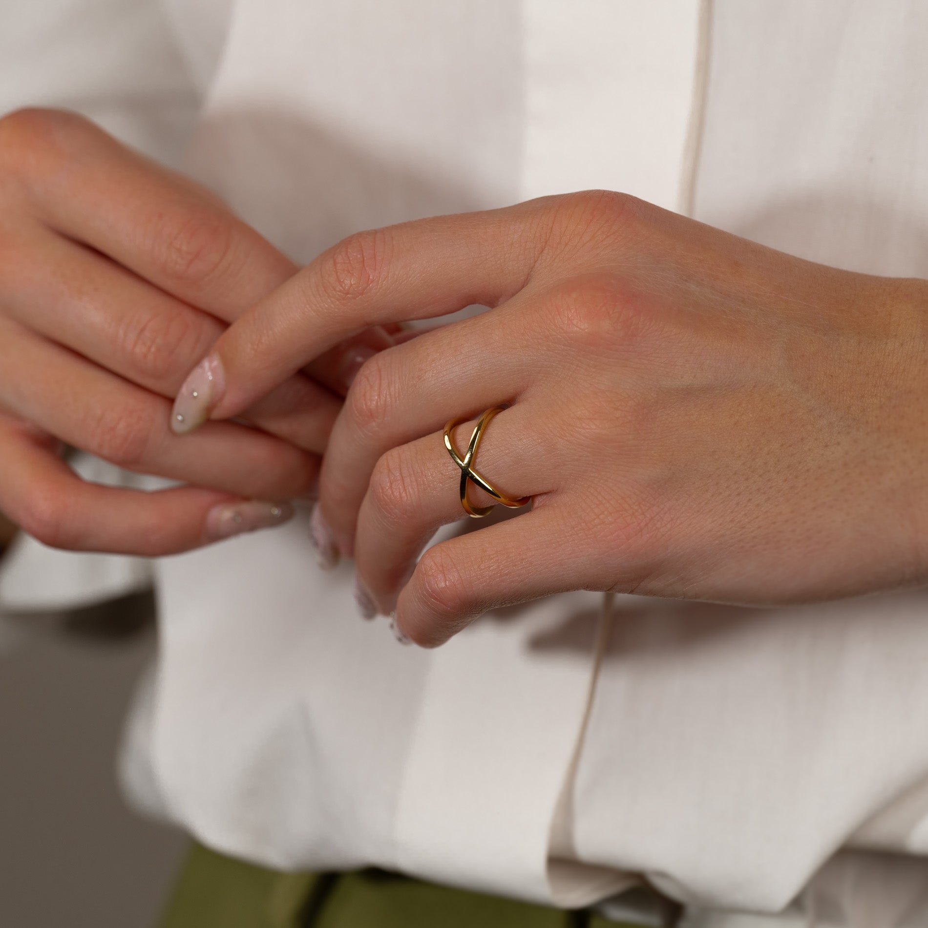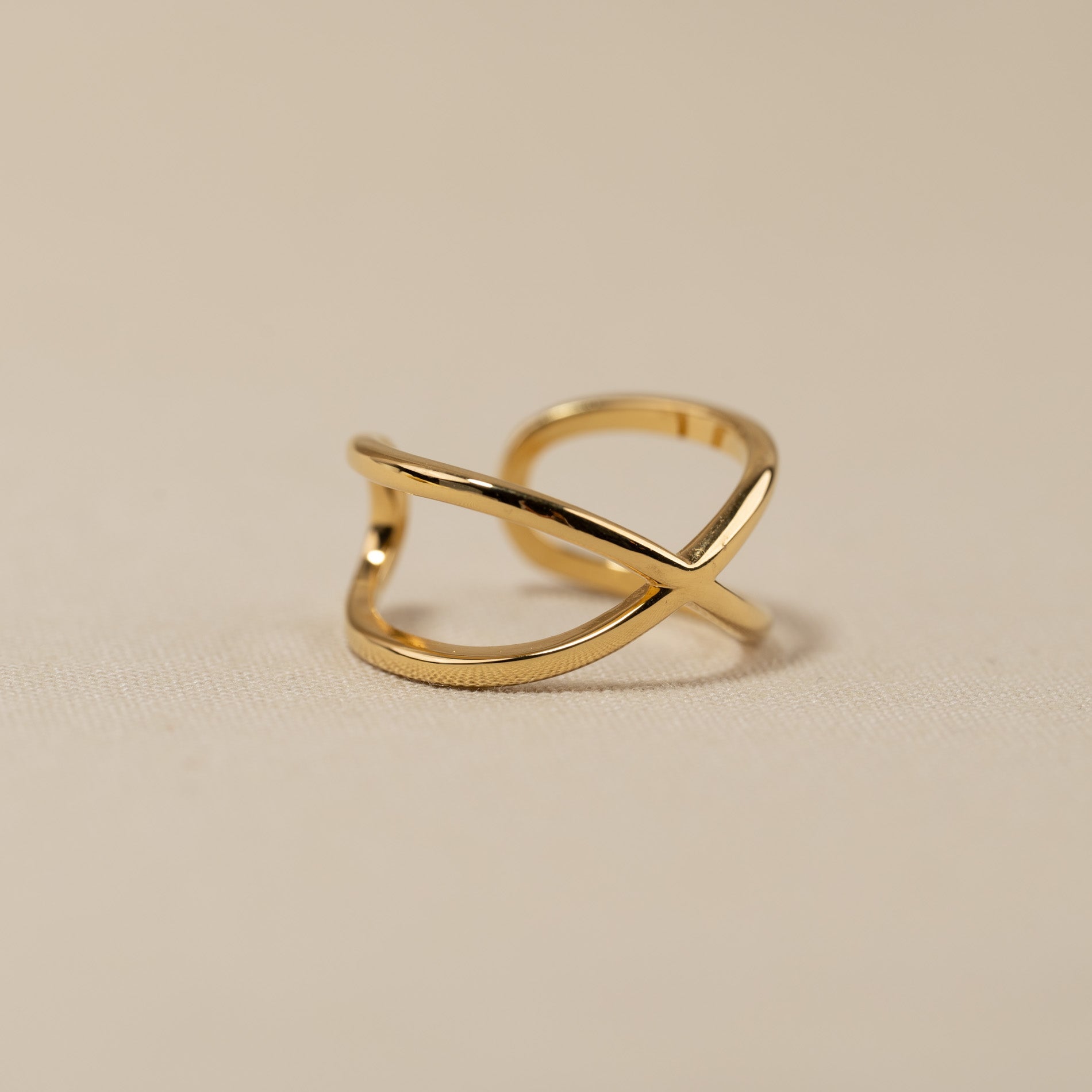 Vår Anastasia ring har et minimalistisk design som er luftig og enkelt. Ringen er laget i et langt stykke som krysser hverandre på fronten, og skaper et justerbart design på baksiden. Ringen kan derfor forsiktig justeres i størrelsen.