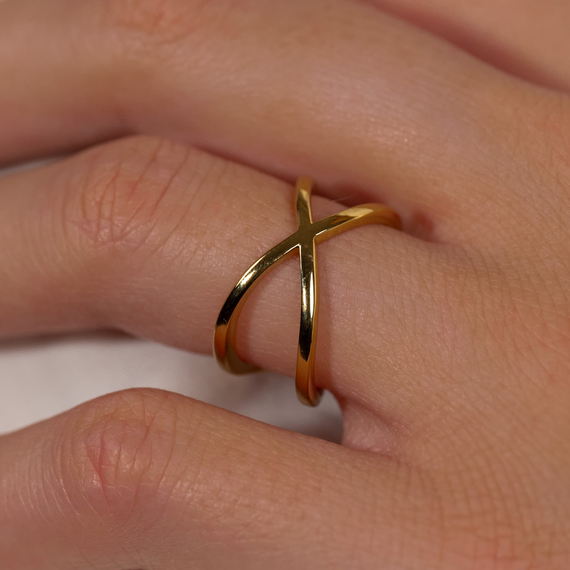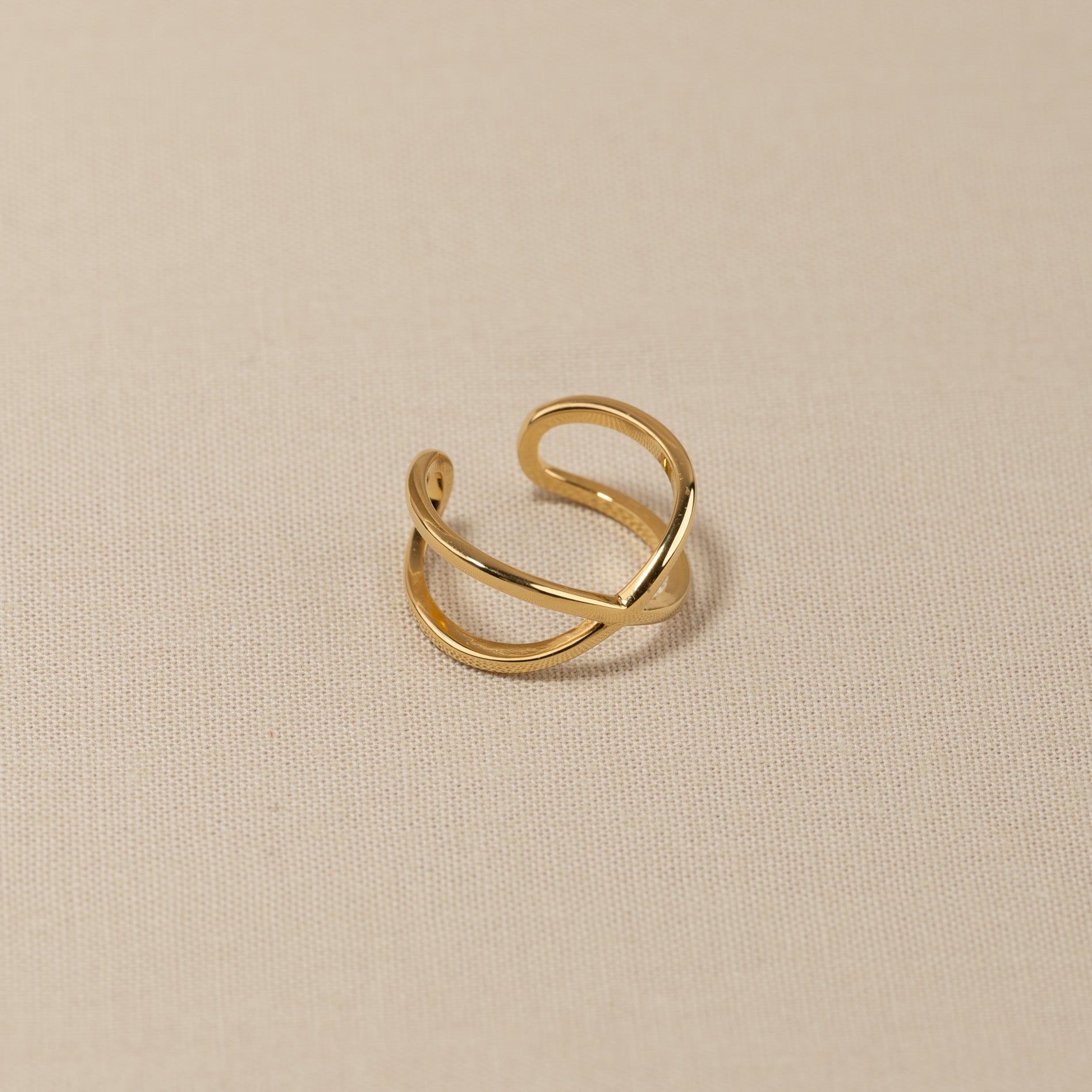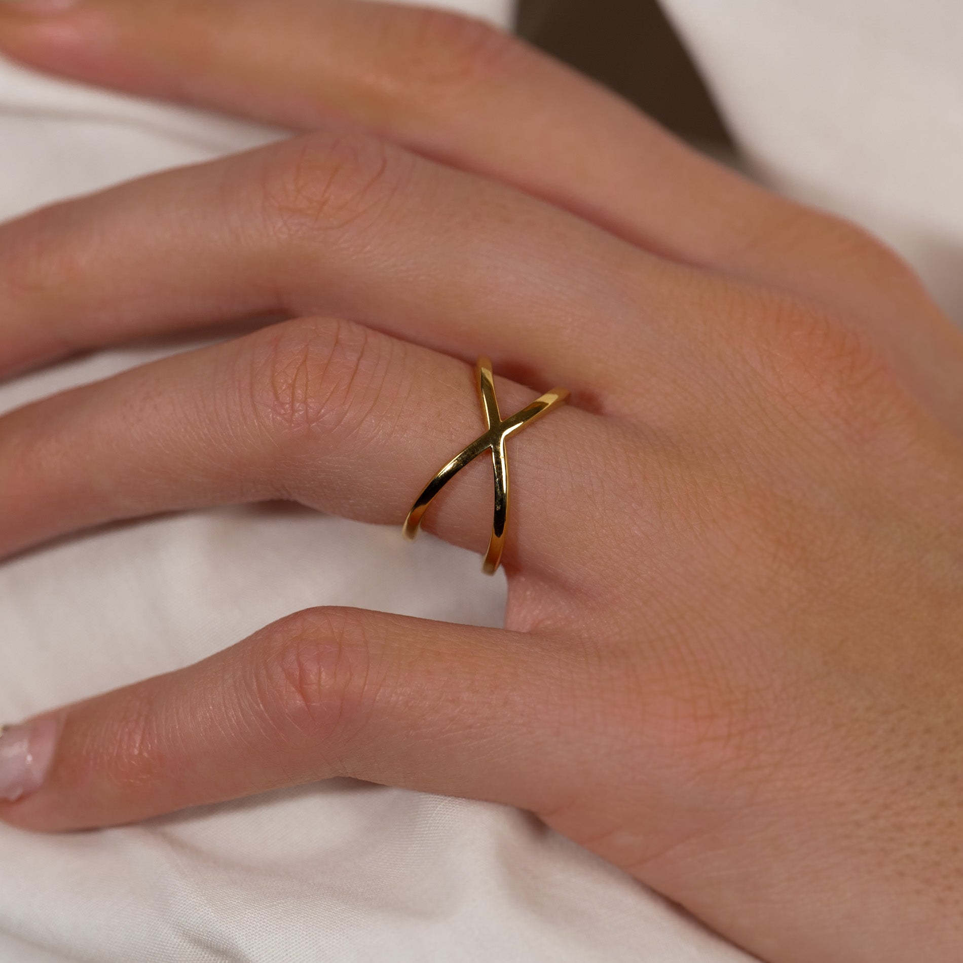 Vår Anastasia ring har et minimalistisk design som er luftig og enkelt. Ringen er laget i et langt stykke som krysser hverandre på fronten, og skaper et justerbart design på baksiden. Ringen kan derfor forsiktig justeres i størrelsen.