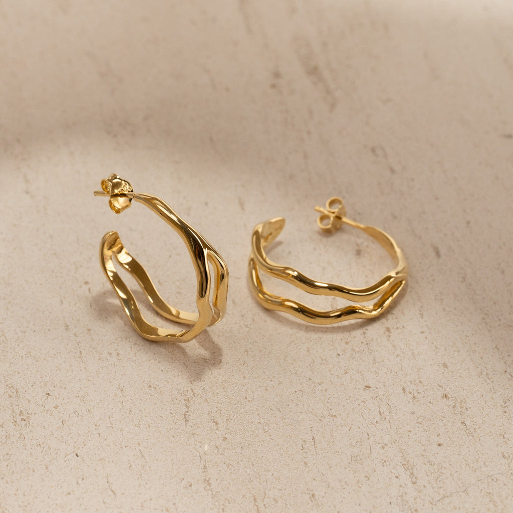 Creoler i 100% resirkulert 18 karat forgylt sterlingsølv i et organisk design. De myke formene gir øreringene et elegant og harmonisk uttrykk, som gjør dem både moderne og tidløse.