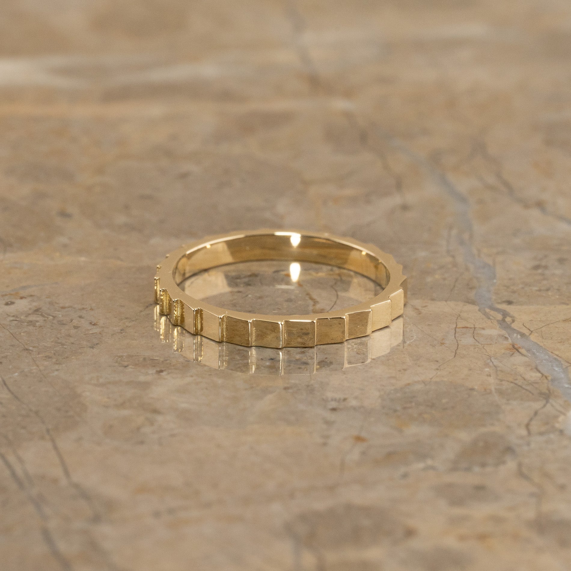 Ringen er laget i 100% resirkulert 9 karat massivt gull.