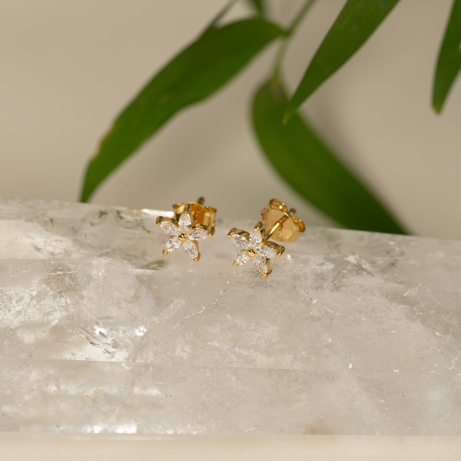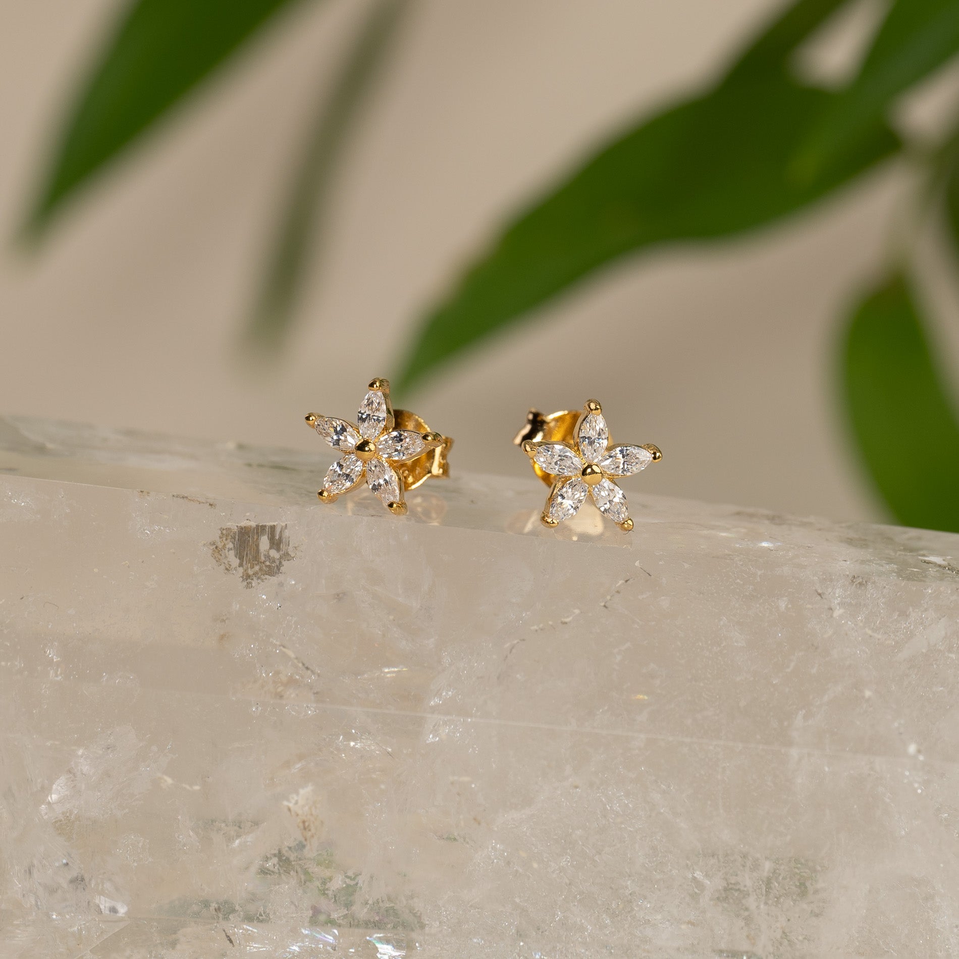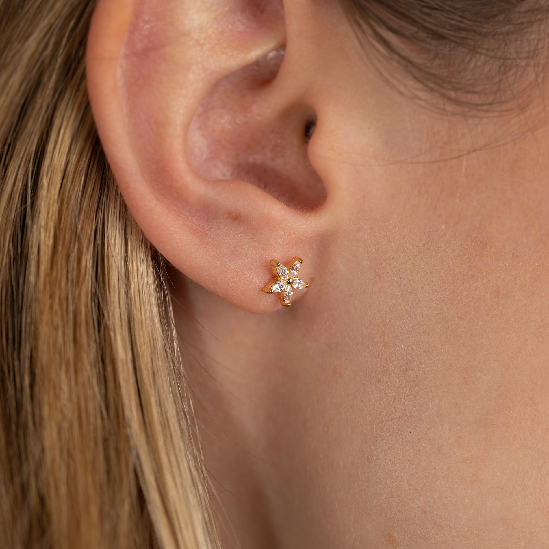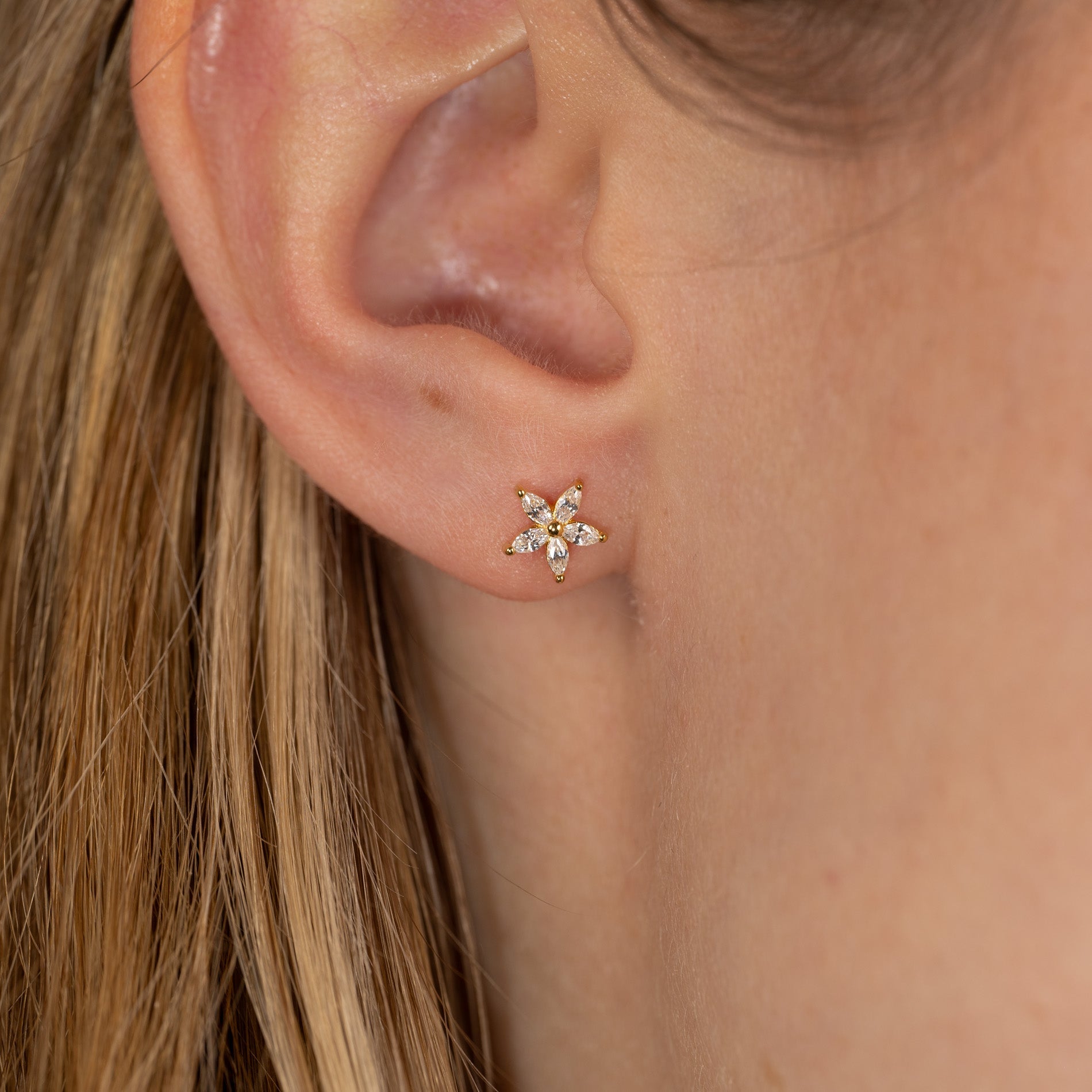 Våre Bellis øredobber er laget i 18 karat forgylt resirkulert sterlingsølv besatt med 5 zirkoniastein, plassert som spisse blomsterblader. Øredobbene er veldig elegante og er utrolig vakre enten alene eller i kombinasjon med andre øredobber.