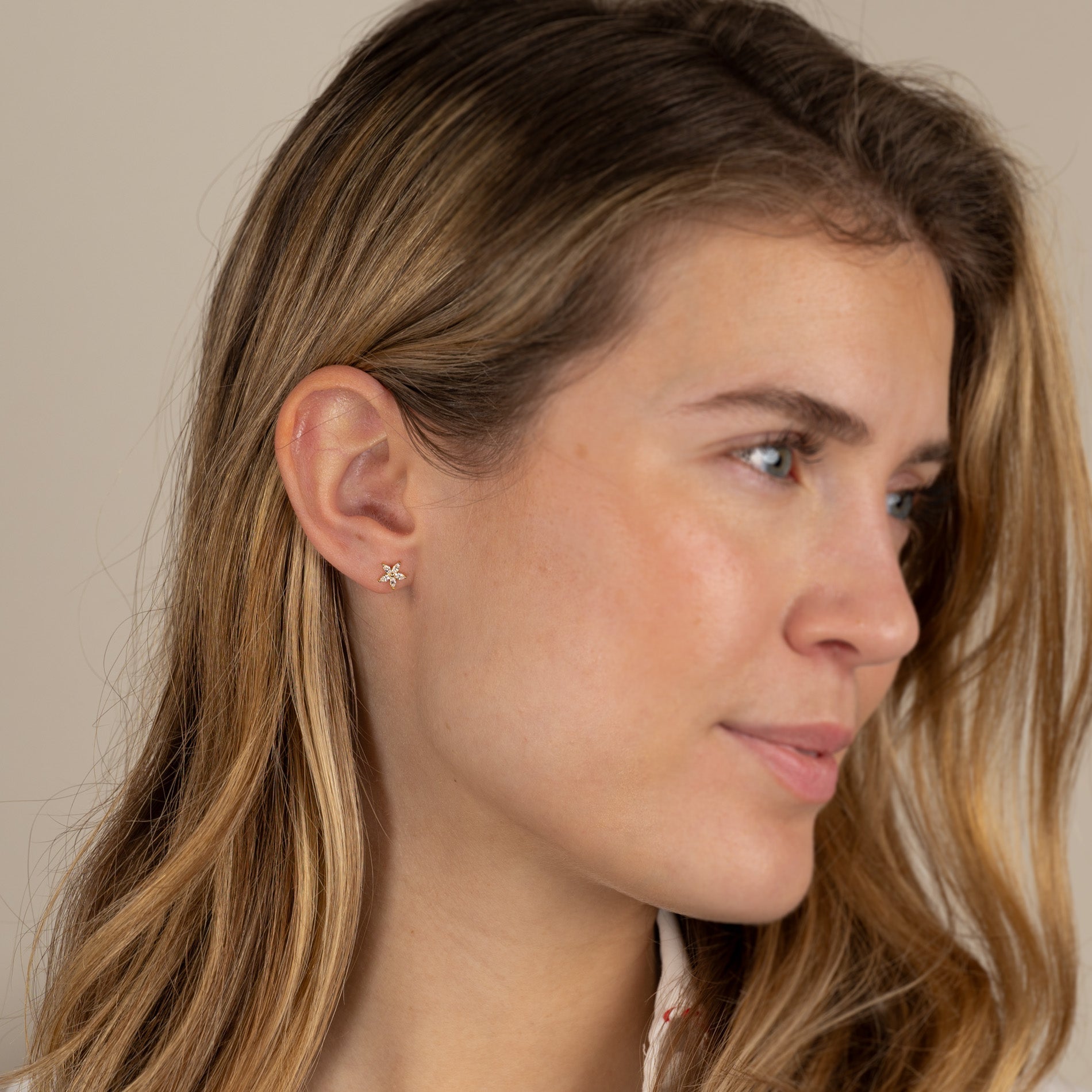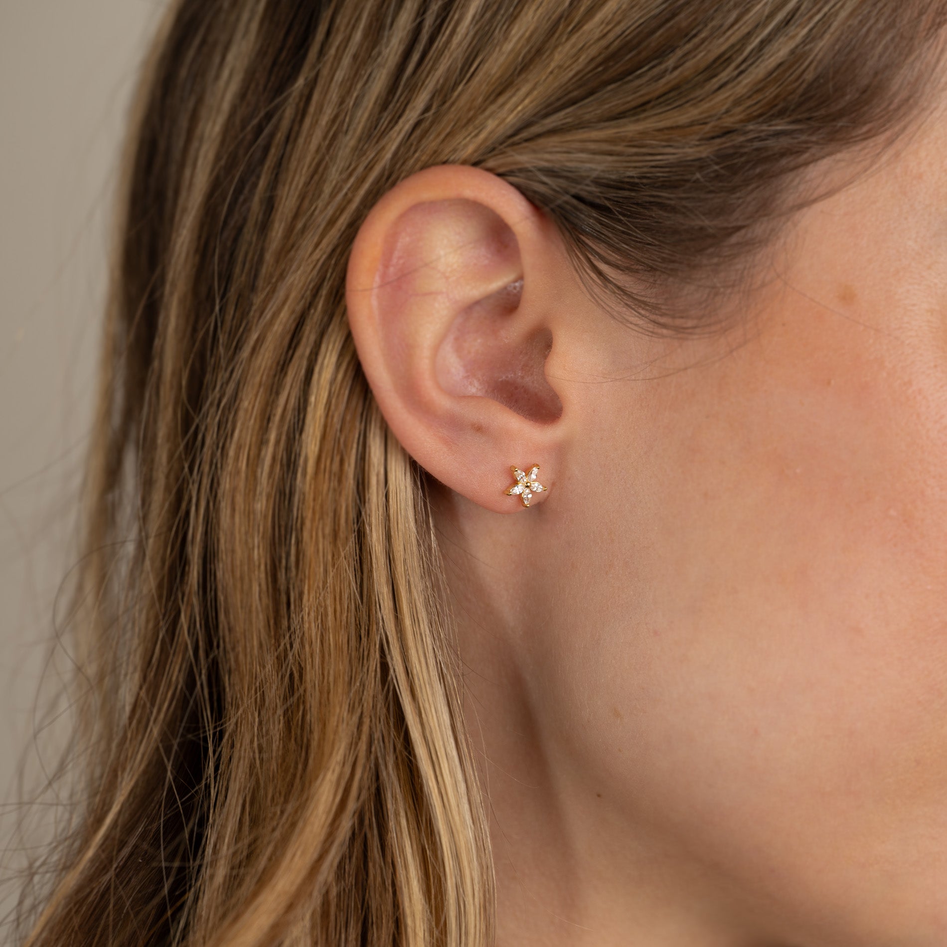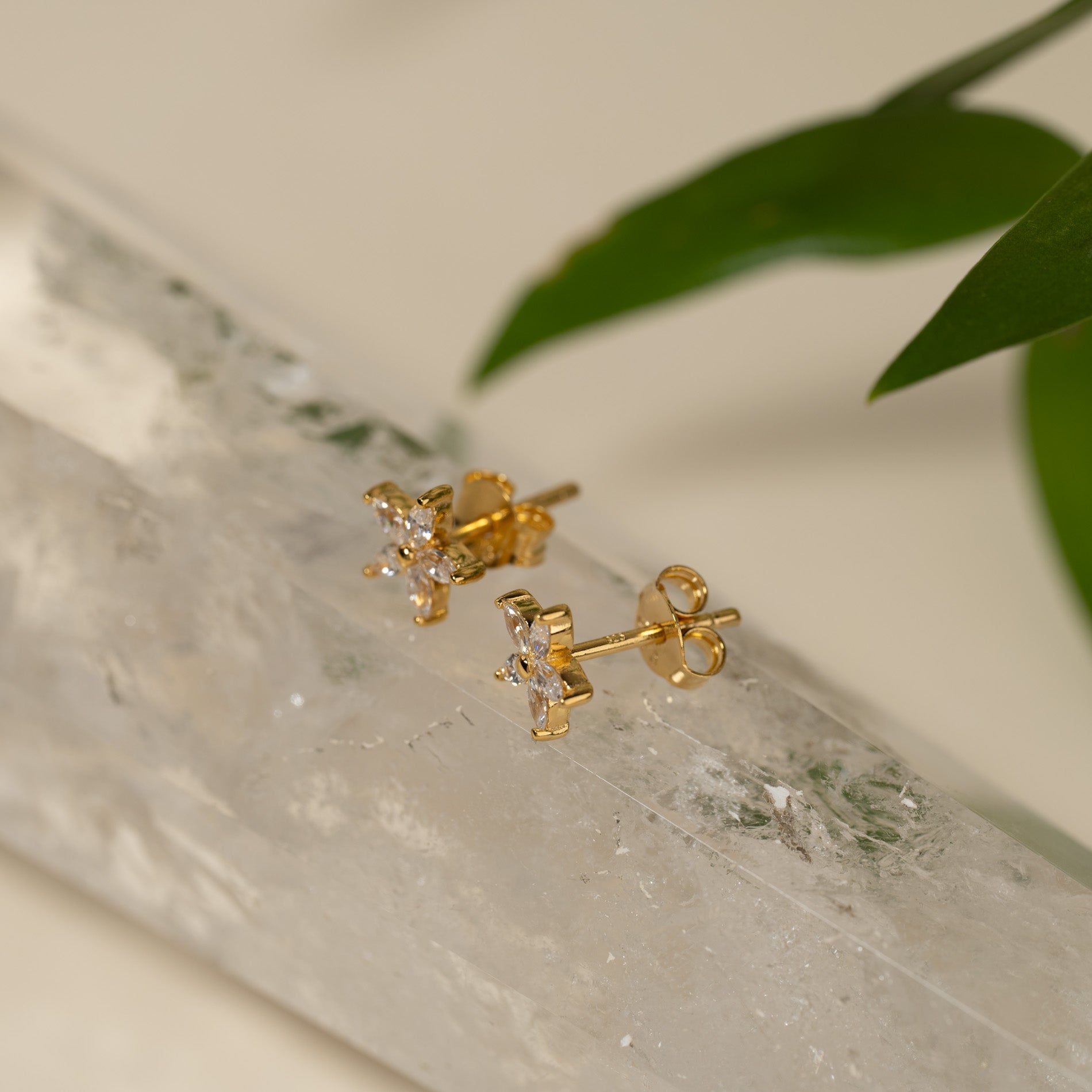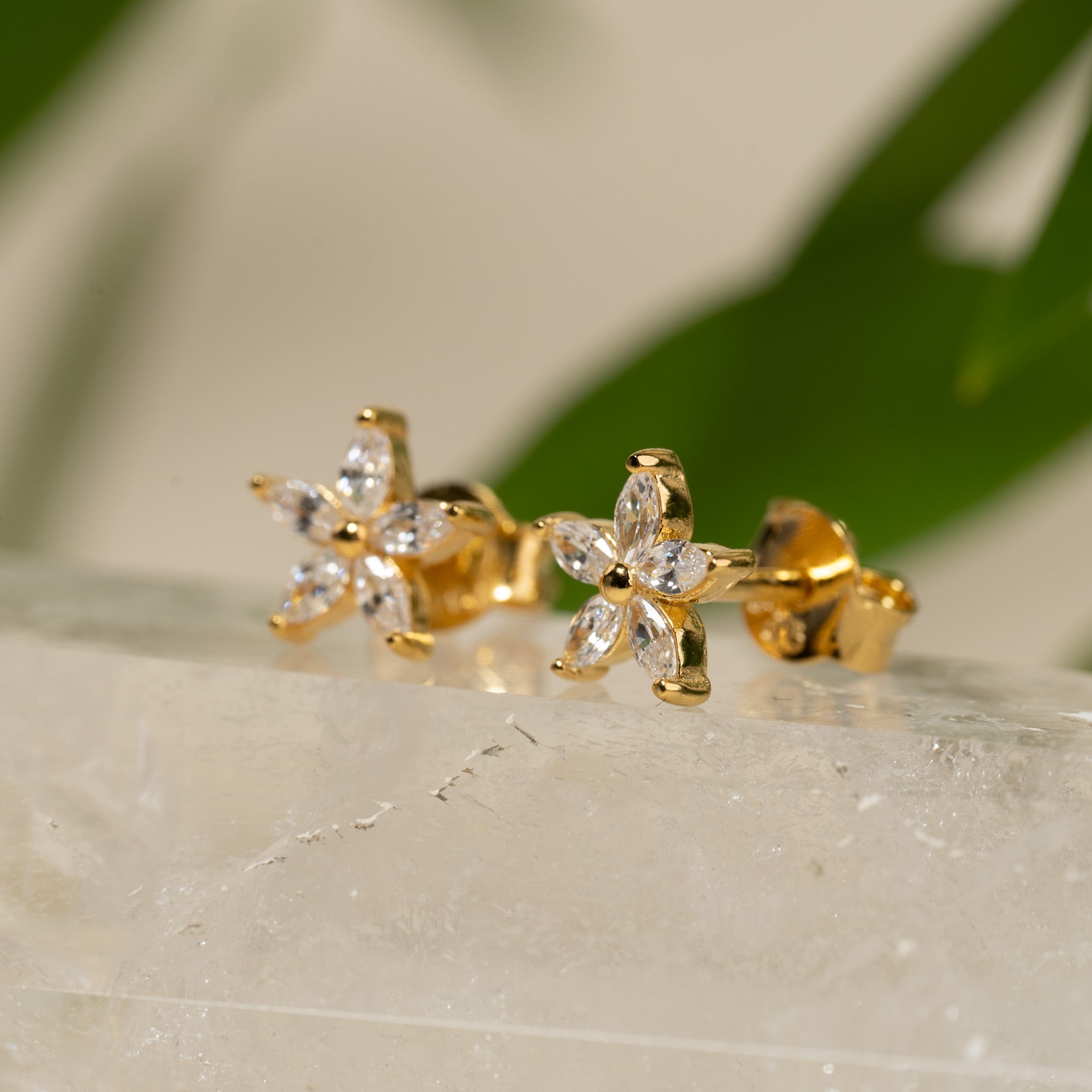 Våre Bellis øredobber er laget i 18 karat forgylt resirkulert sterlingsølv besatt med 5 zirkoniastein, plassert som spisse blomsterblader. Øredobbene er veldig elegante og er utrolig vakre enten alene eller i kombinasjon med andre øredobber.