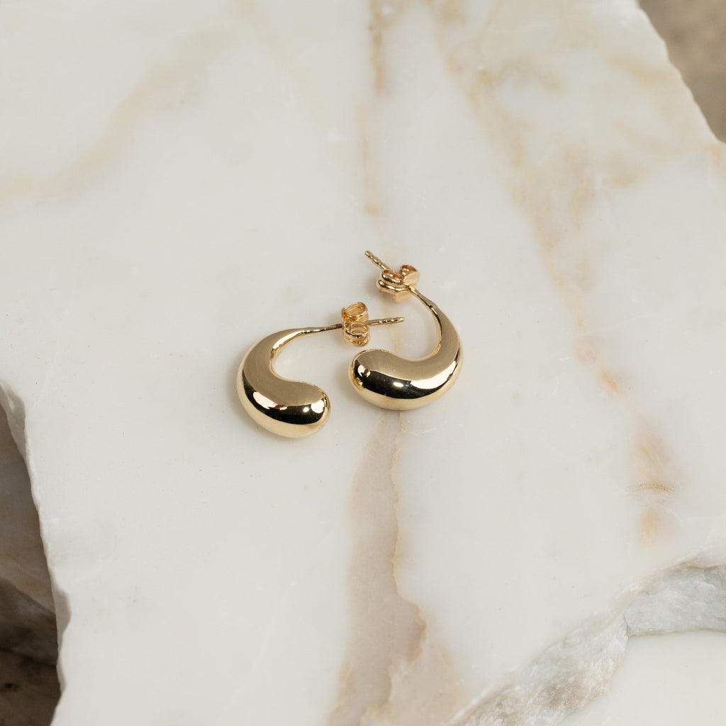 Øredobbene er laget av 100 % resirkulert 9 karat massivt gull.