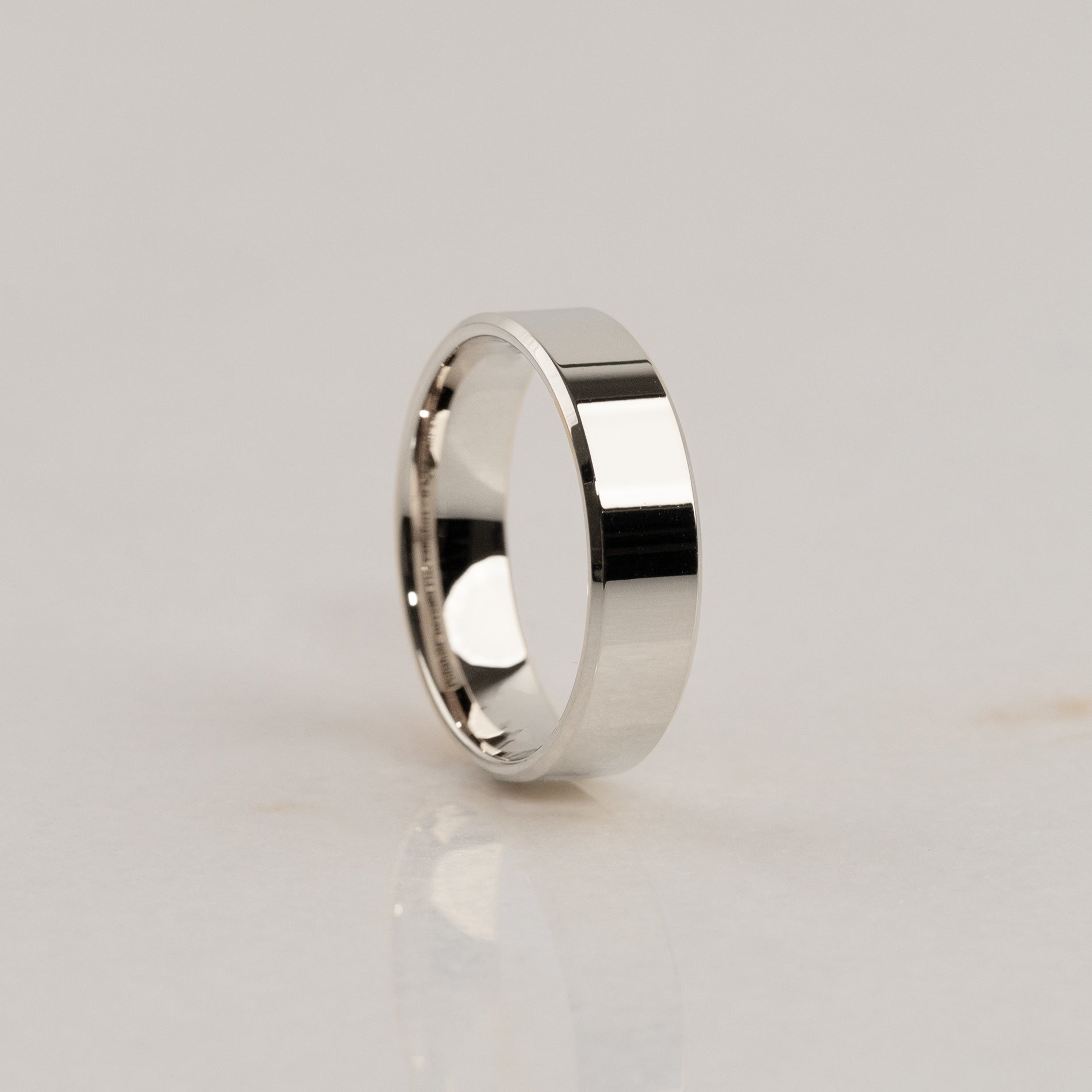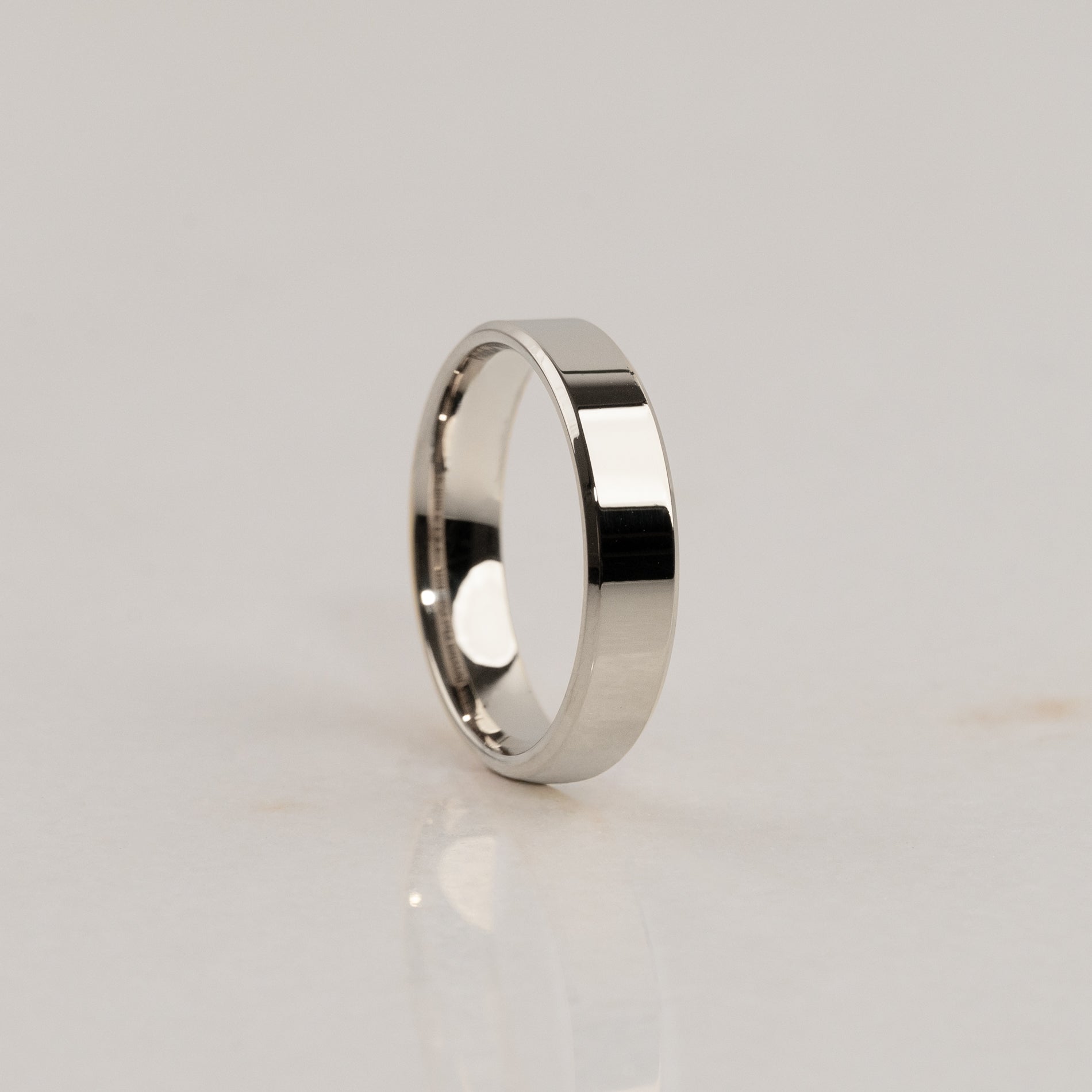 Beveled Flat Comfort har skråskårne kanter som gir ringen et moderne og mer markant design.