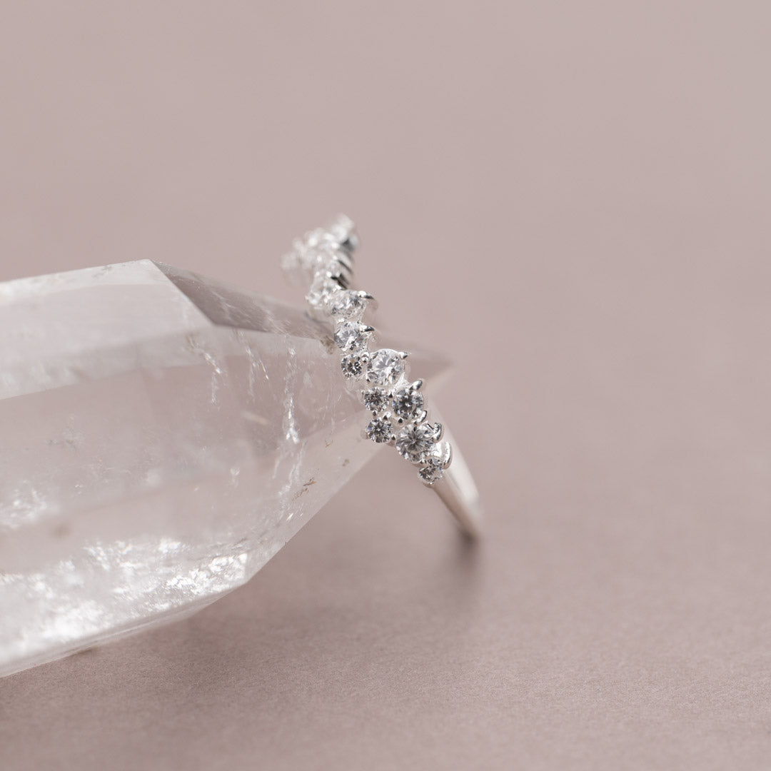 Ring i resirkulert 925 sterlingsølv. Ringen er designet med hvite, kubiske zirkoniasten i en klynge på oversiden av ringen.