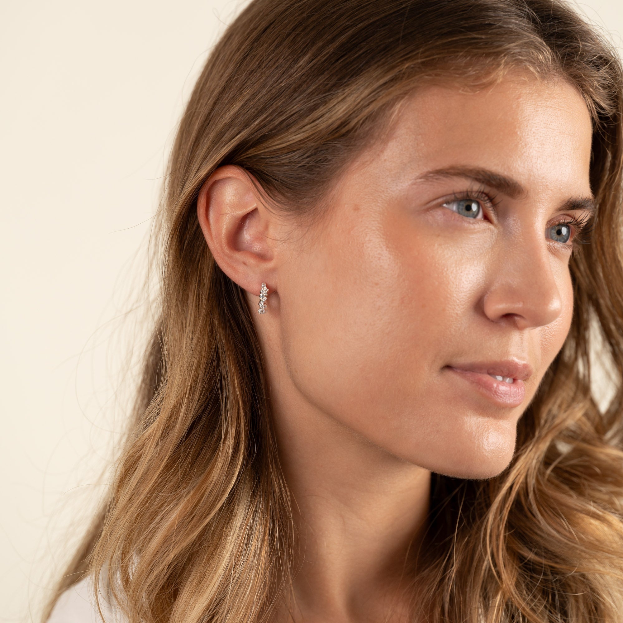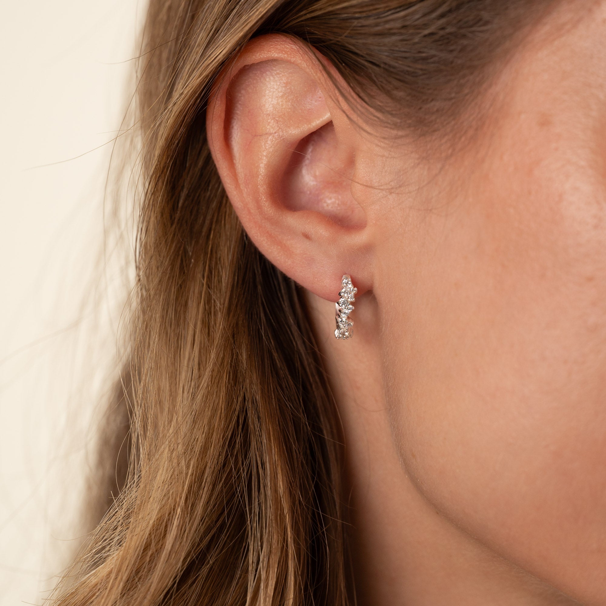 Øreringer i 100% resirkulert 925 sterlingsølv. Øreringen måler ca. 15 mm og er designet med hvite zirkoniastener.
