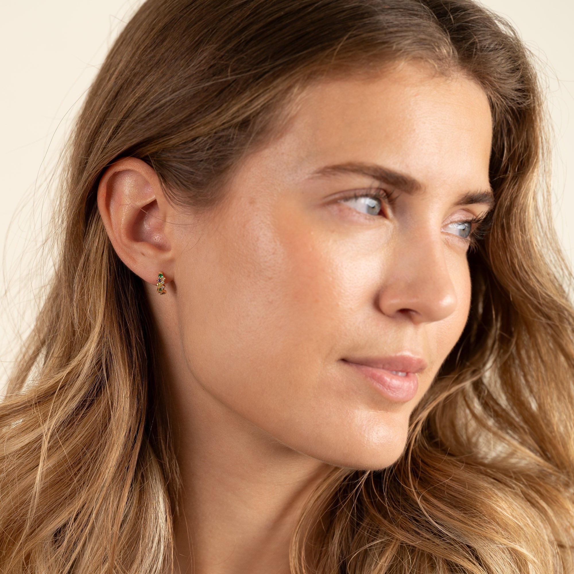 Våre Clair huggies er designet med fargerike zirkoniasten som skaper et fint fargespill, og øreringen sitter fint rundt øret og passer perfekt både til hverdagen og finere anledninger.
