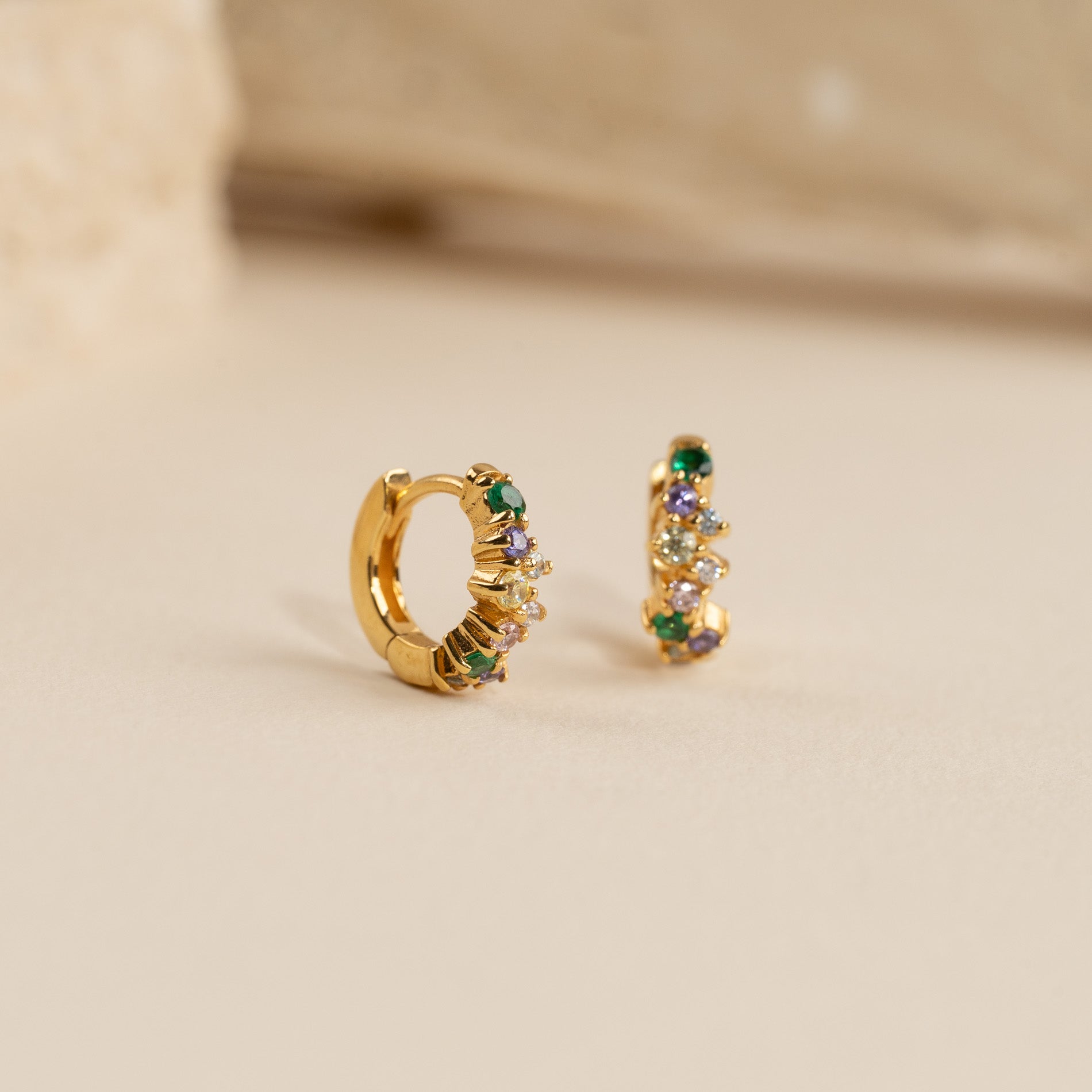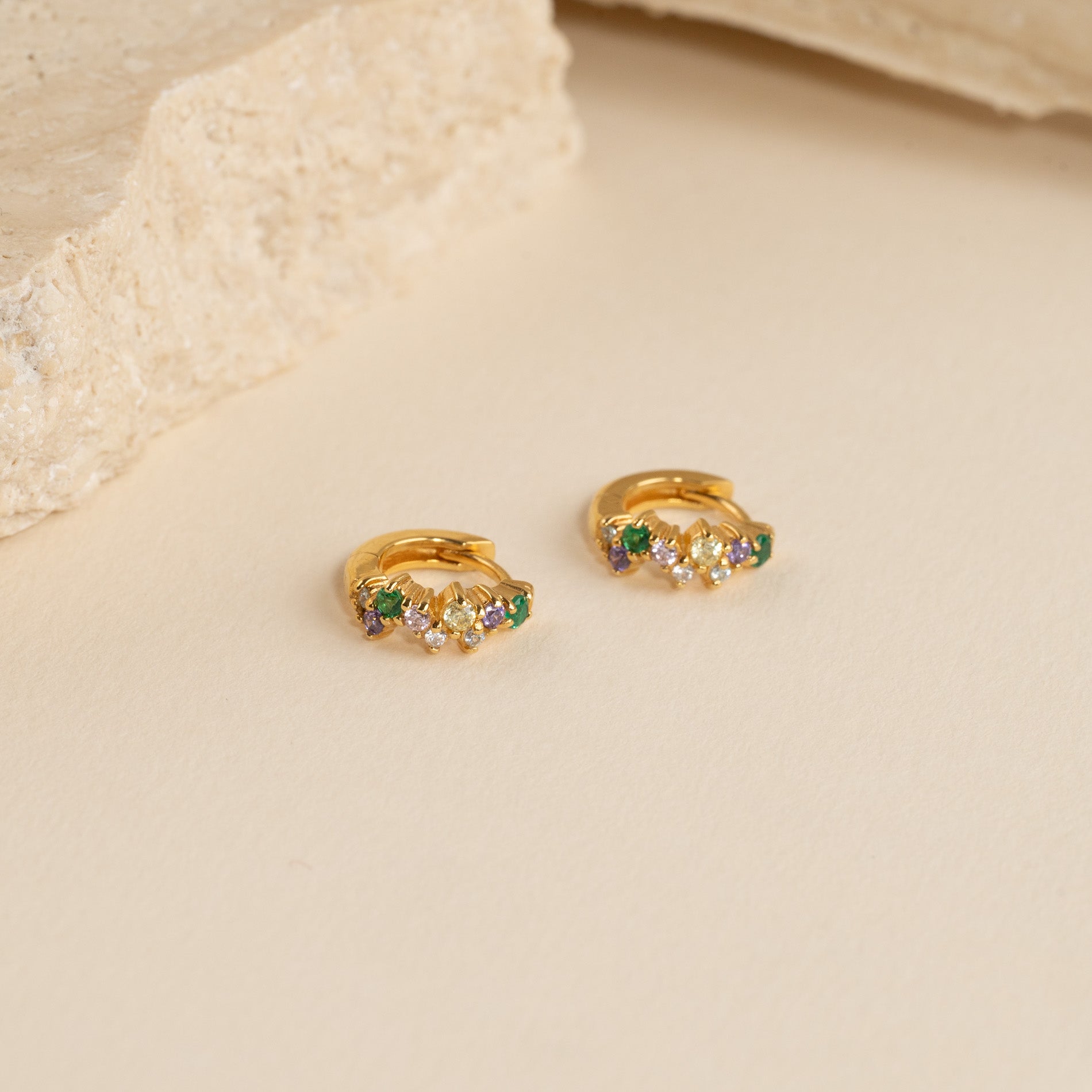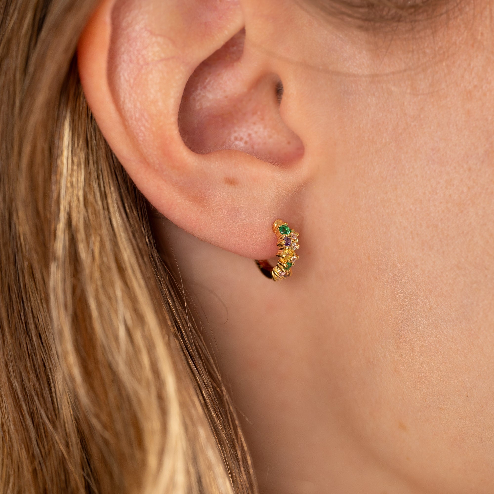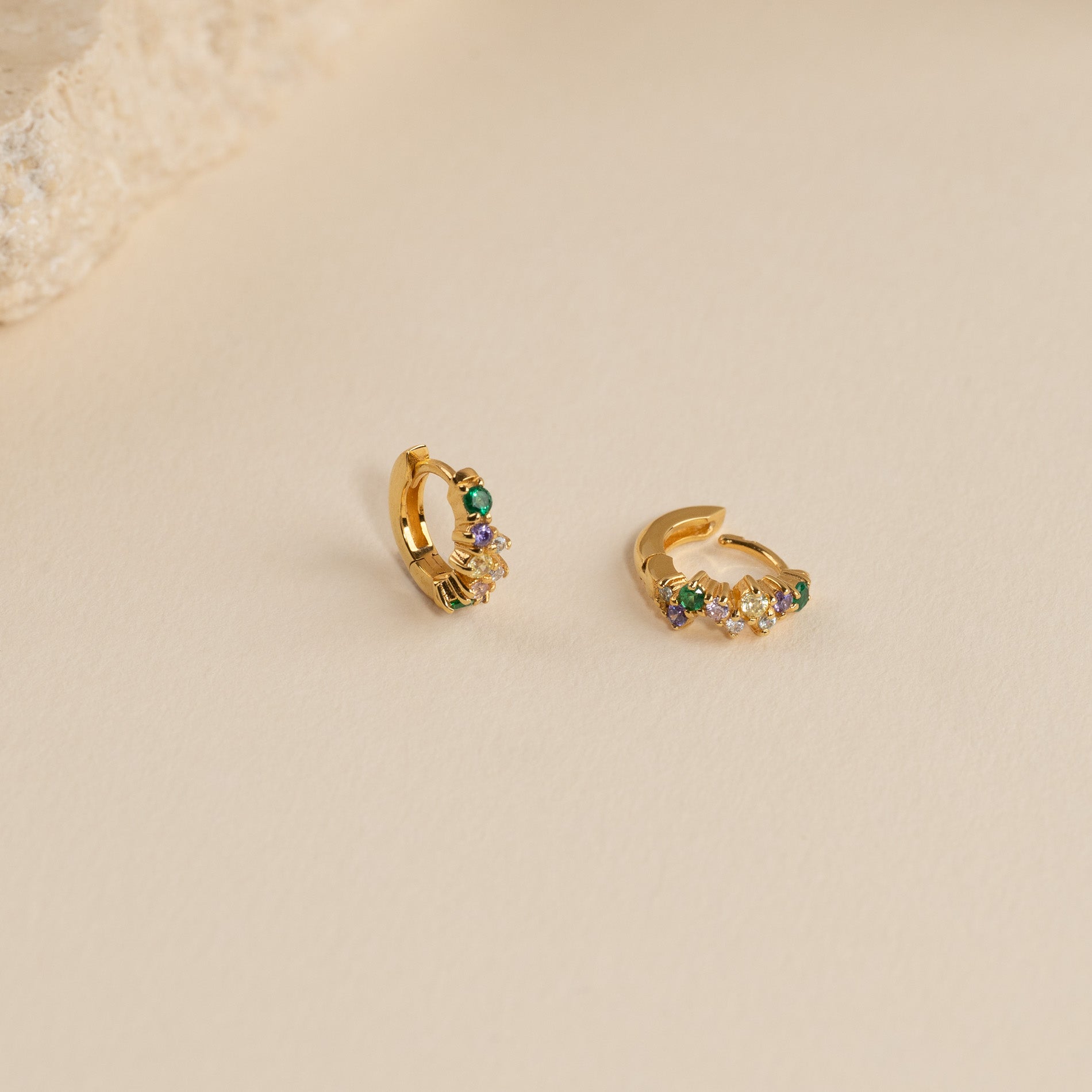 Mini huggies i gullbelagt sølv med fargerike zirkoniasten