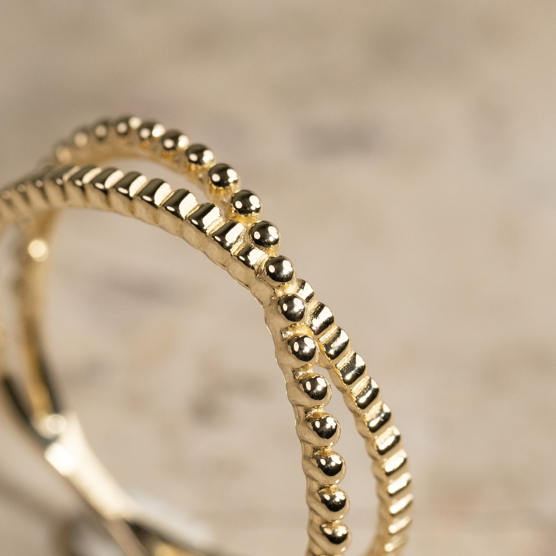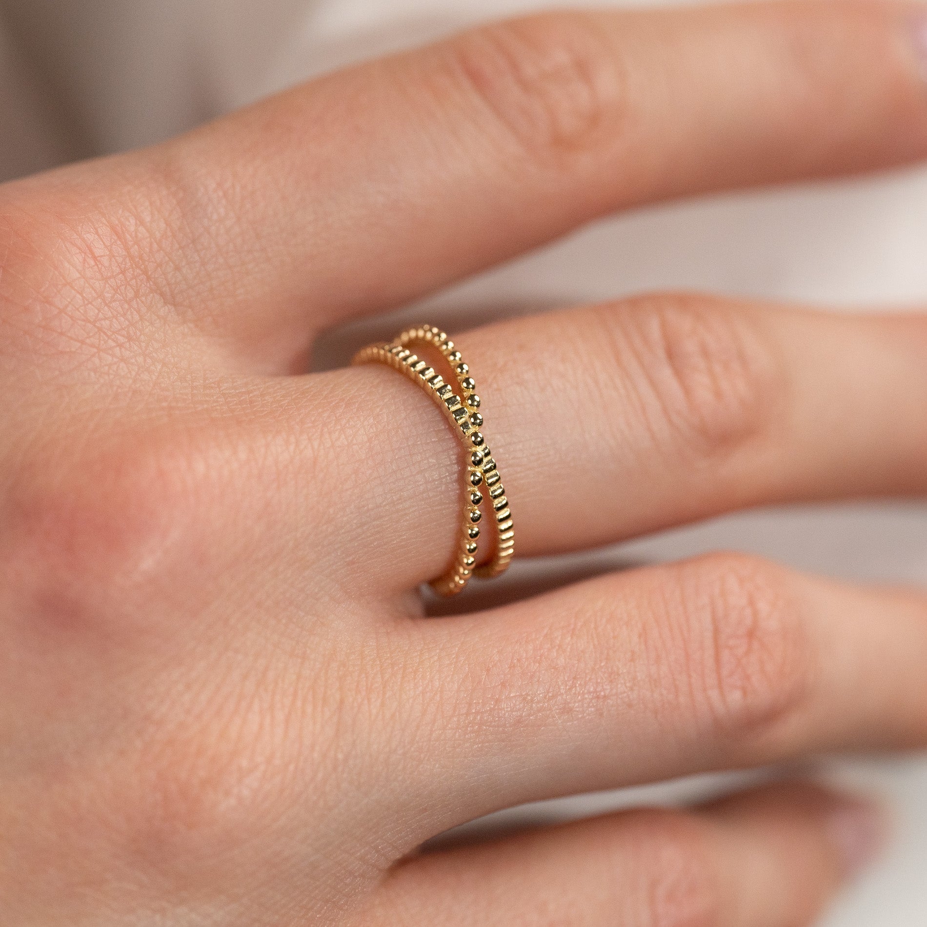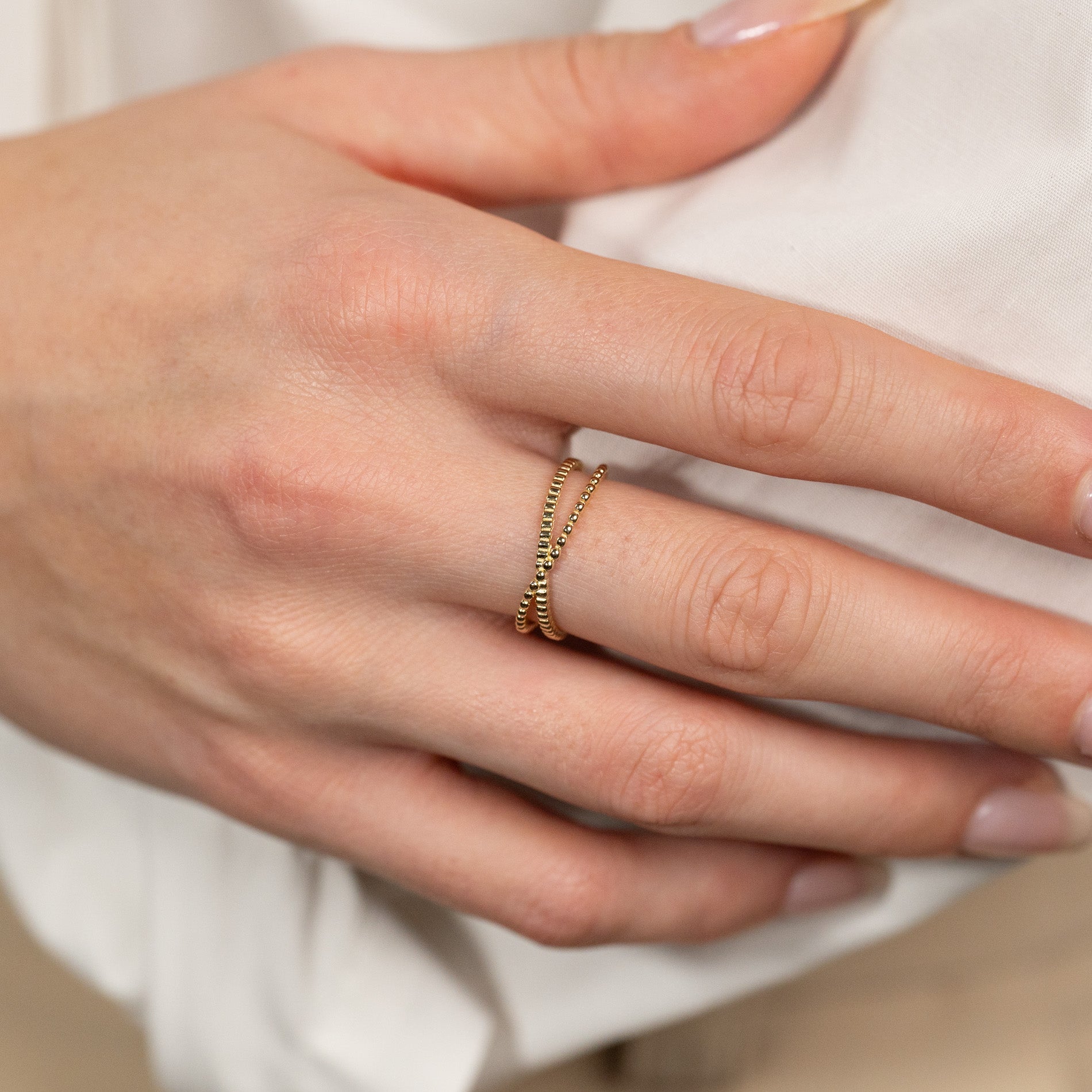 Ring skapt i 100% resirkulert massiv 9 karat gull. Den har et elegant kryssmønster med unike detaljer som gjør den både flott og allsidig – perfekt til å bære alene eller sammen med andre av våres ringer.