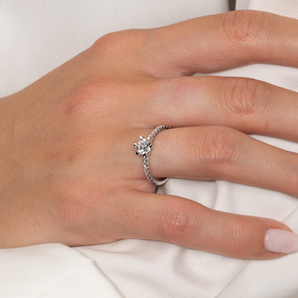 CLASSIC 6-PRONG ALLIANCE DIAMOND RING - 0.9ct - WG
