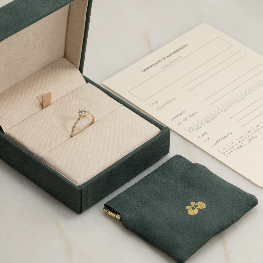 Sertifikatet inneholder all relevant og spesifikk informasjon om smykket, inkludert de 4 C'ene.