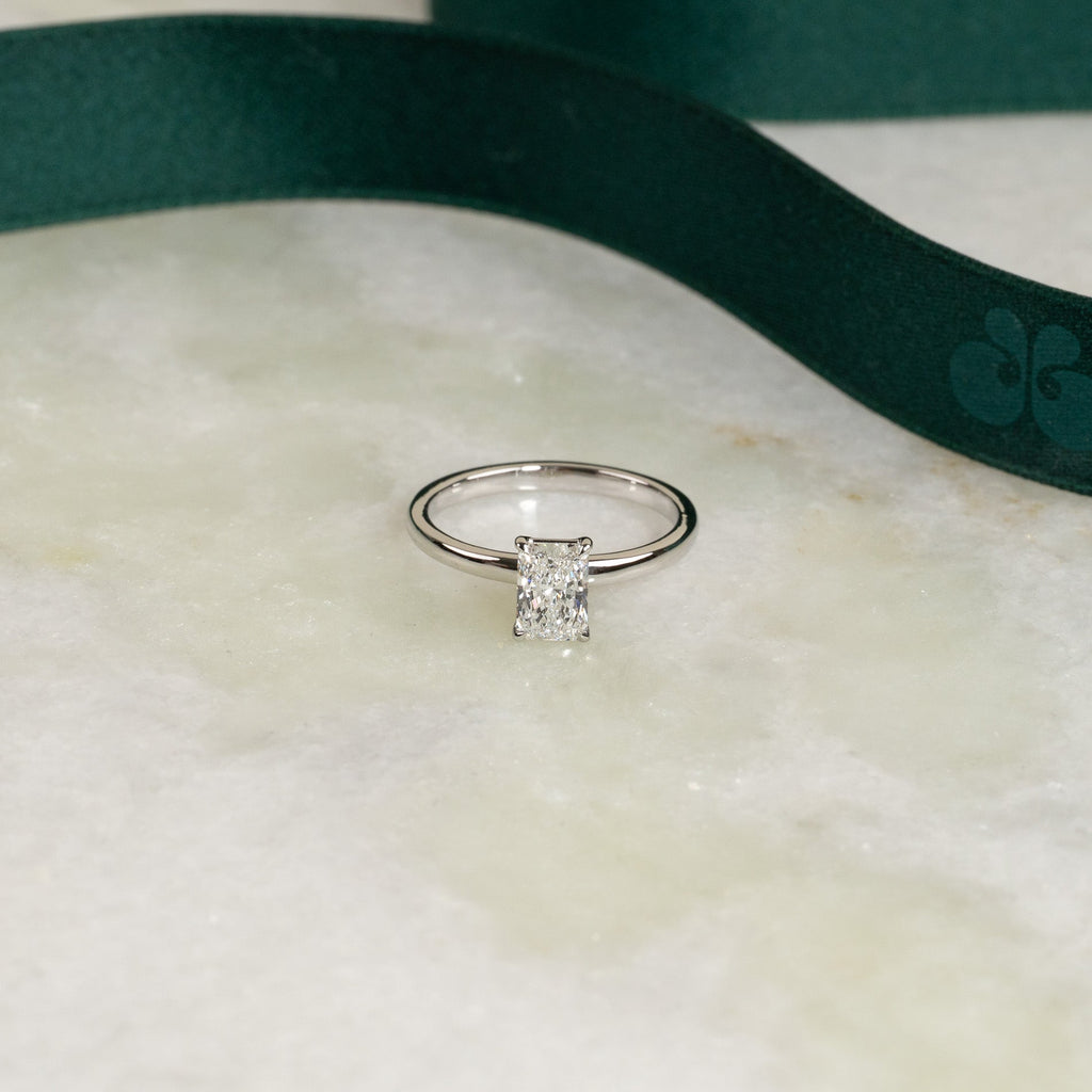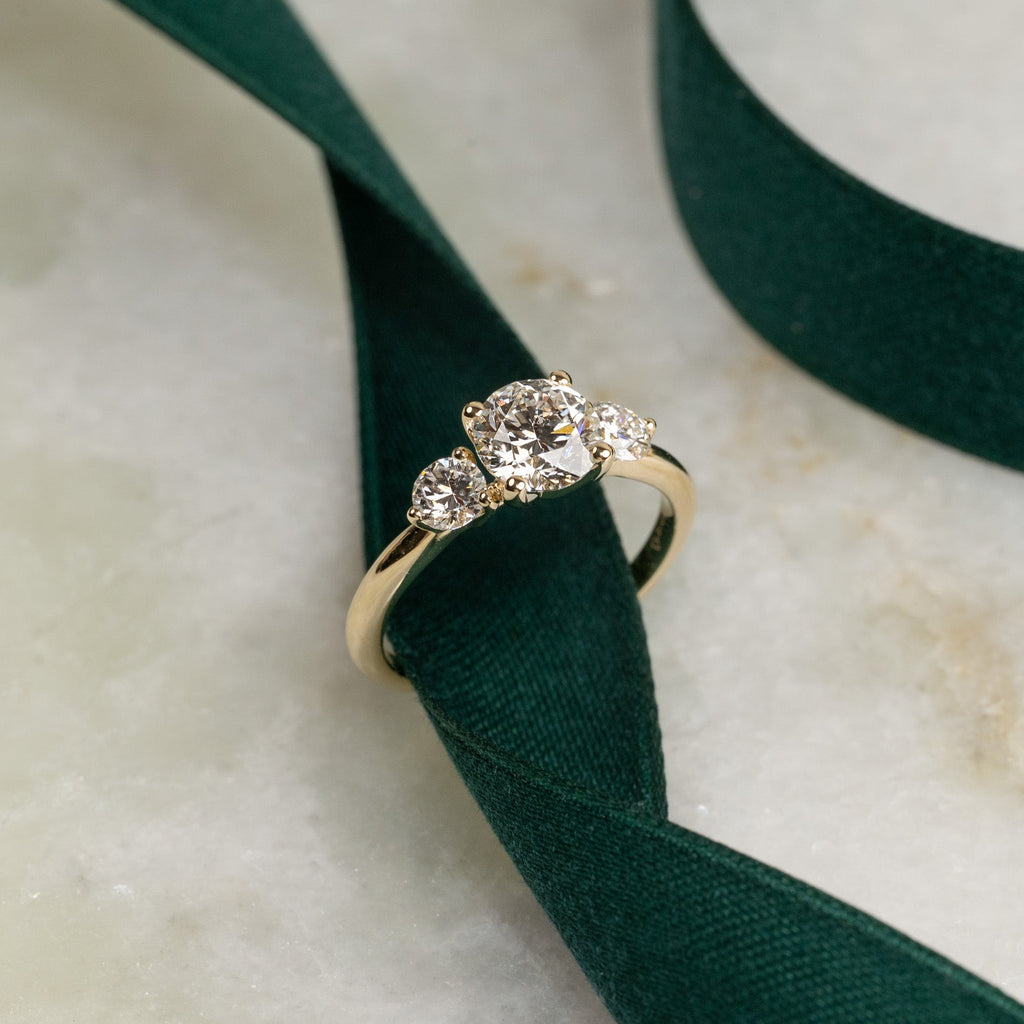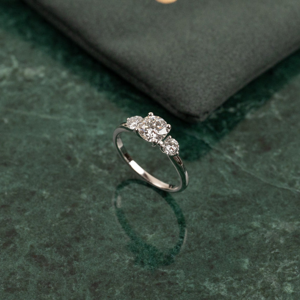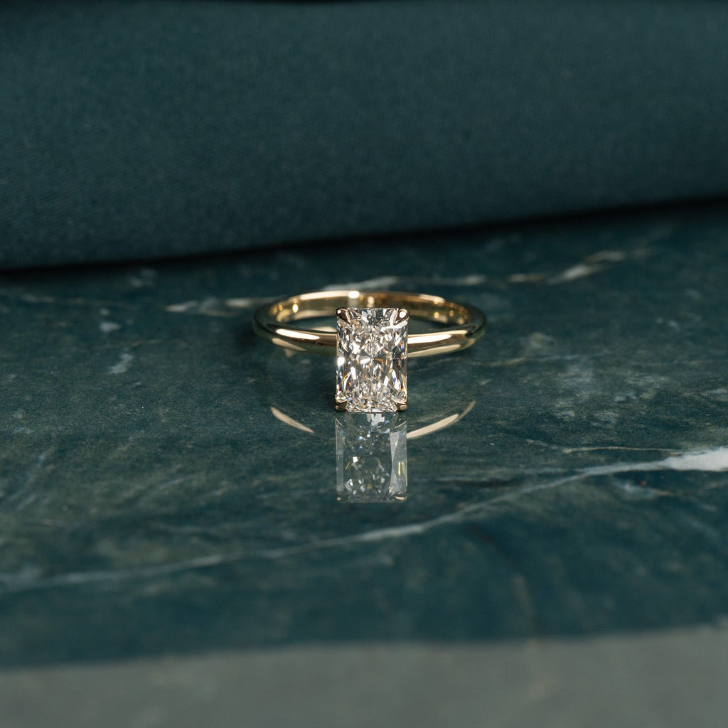 Ringen er i 14 karat massivt gull med etiske laboratoriedyrkede diamanter på totalt 0,9 ct. Diamantene har fargen E/F (River) og klarheten VVS. Smykket er laget med omhu; diamantene er produsert med blant annet solenergi, og gullet er 100% sertifisert resirkulert.