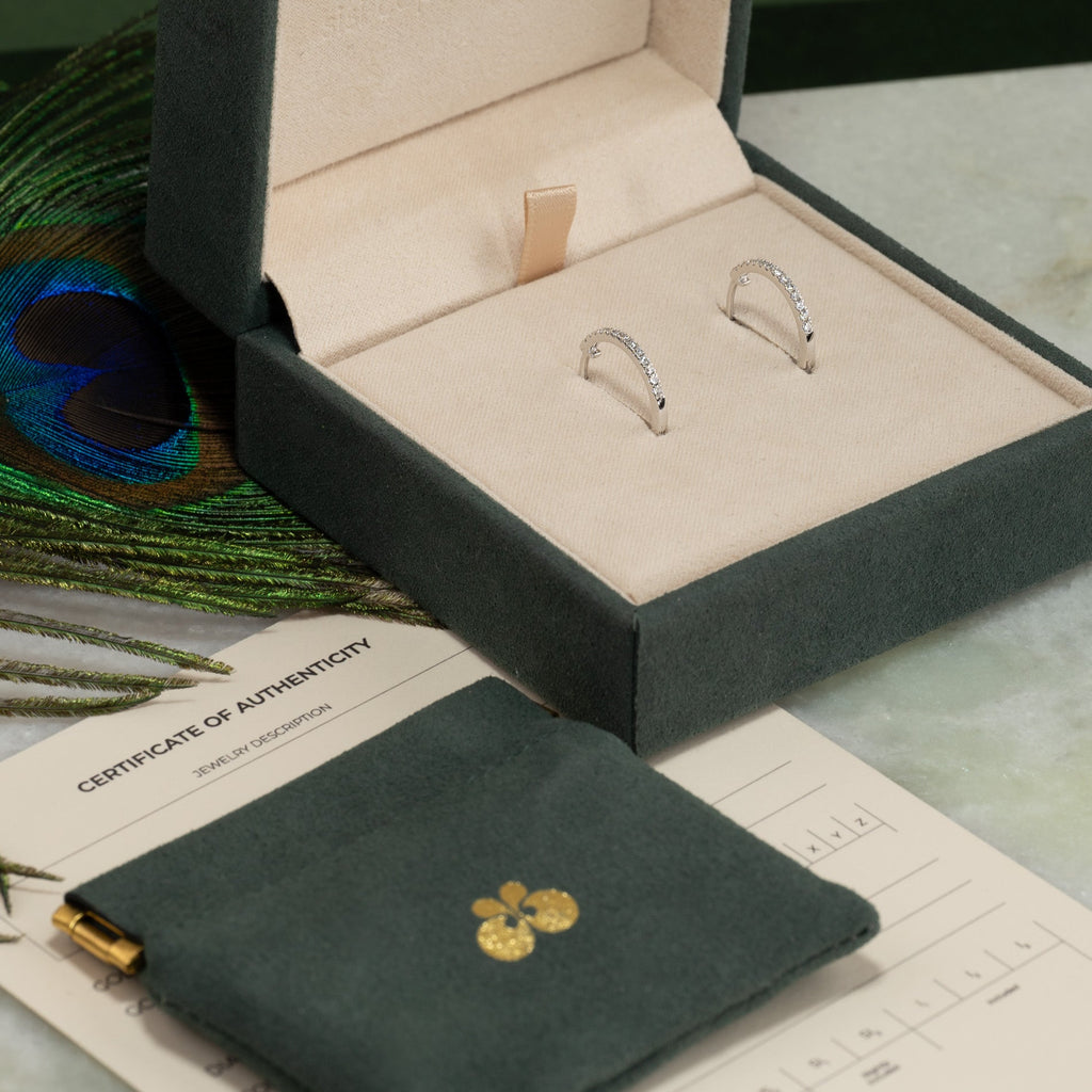 Creolene kommer i vår eksklusive Diamond Collection boks med en flott smykkeeske, diamantsertifikat og pouch. Boksen er også perfekt om du skal gi smykket i gave.