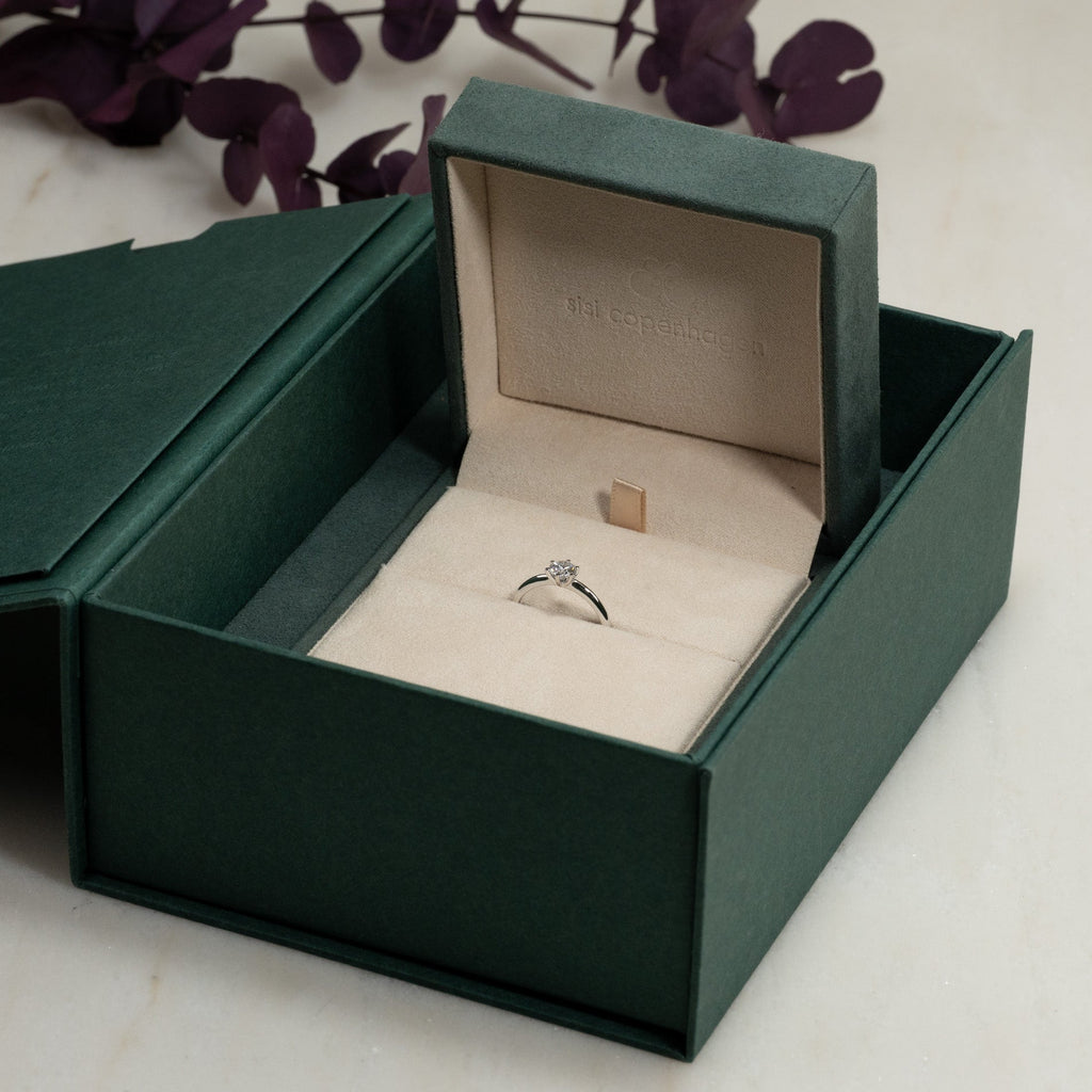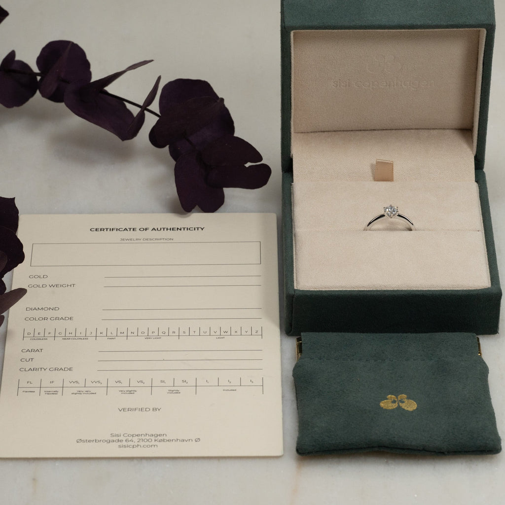 Ringen kommer i vår eksklusive Diamond Collection boks med en flott smykkeeske, diamantsertifikat og pouch. Boksen er også perfekt om smykket skal gis i gave.