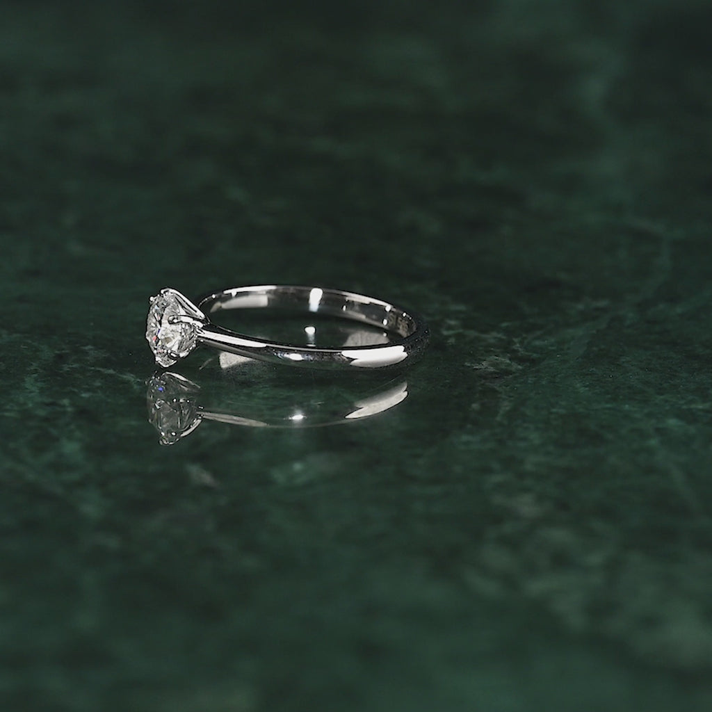 Diamantring i 14 karat hvitt gull med en 0,75 ct. lab-grown briljantslipt diamant. Diamanten er satt i en lav, klassisk innfatning med 6 klør. Ringen er klassisk og elegant, og passer for enhver anledning; den egner seg også utmerket som forlovelsesring.