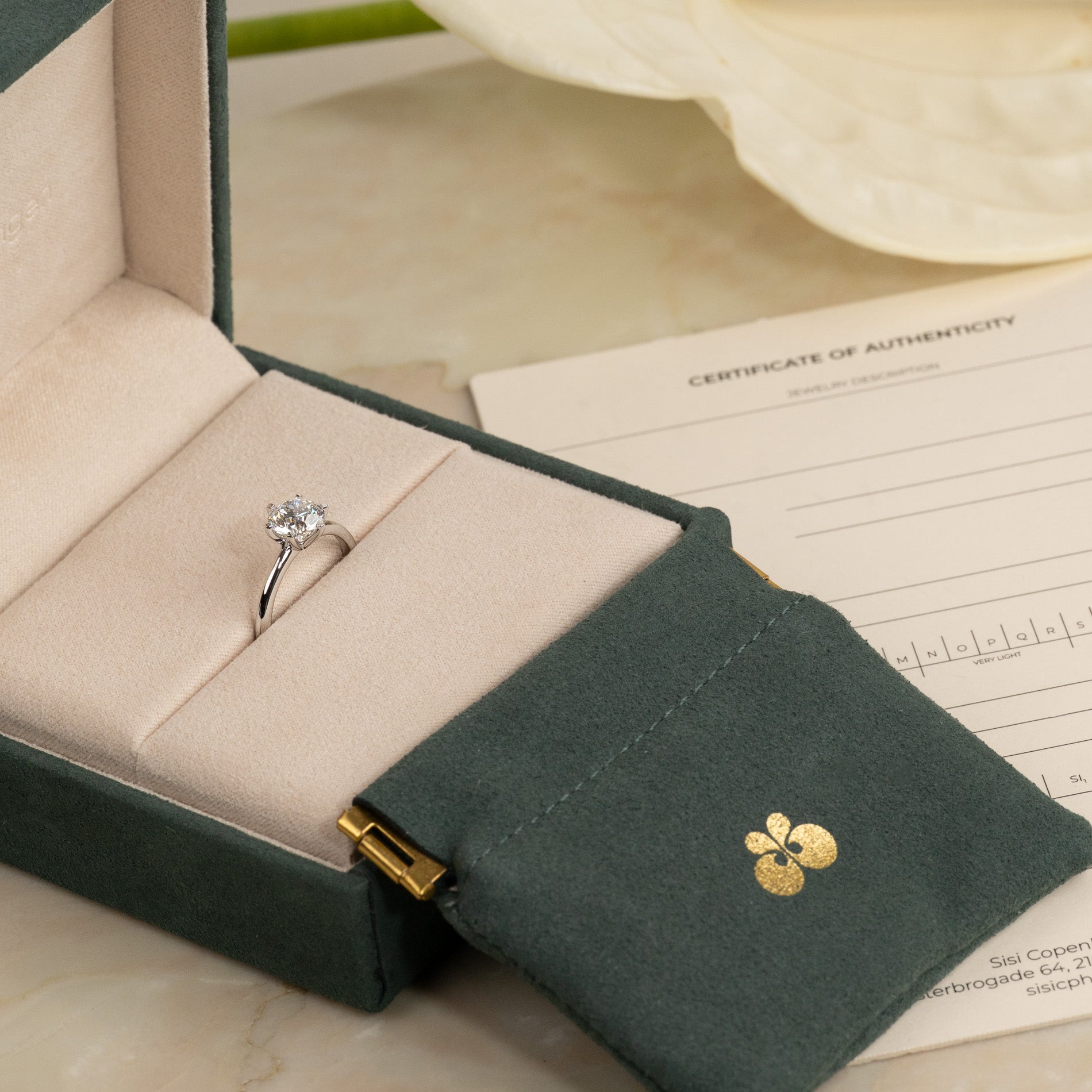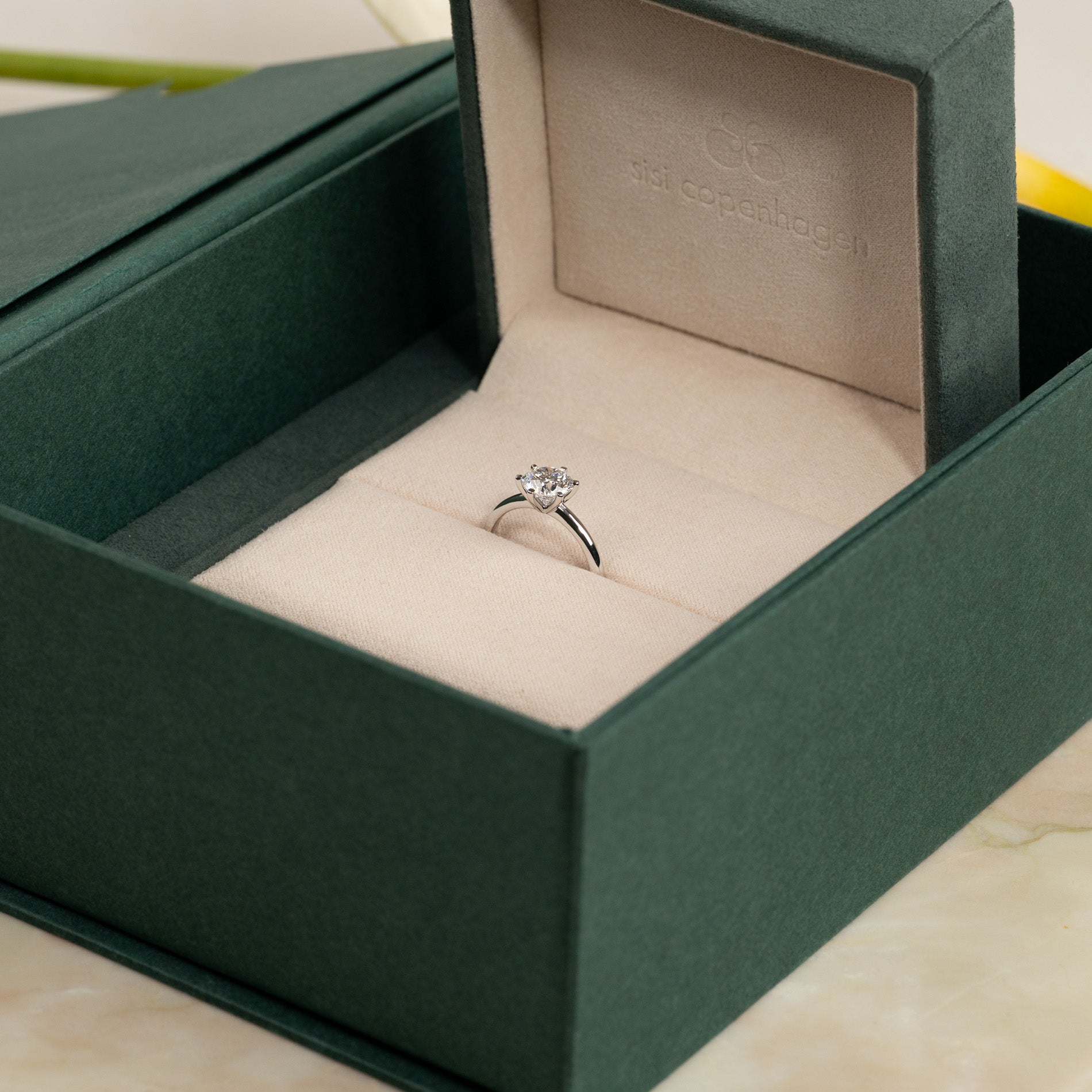 Ringen leveres i vår eksklusive Diamond Collection-eske med et vakkert smykkeskrin, sertifikat og etui. Skrinet er også perfekt hvis du ønsker å gi smykket i gave.