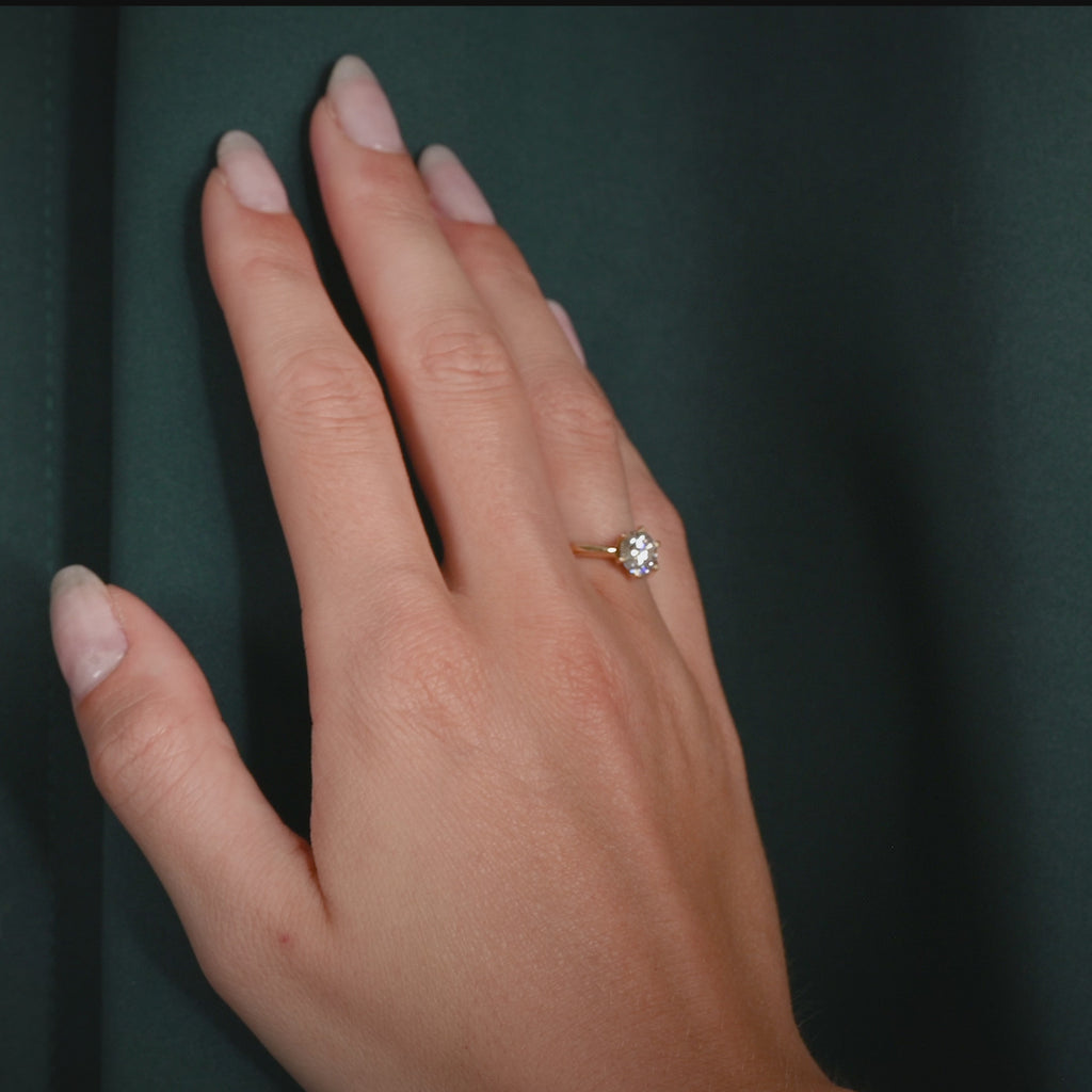 Ringen er laget av 14 karat massivt gull med en etisk fremstilt, laboratoriedyrket diamant som veier 1,5 ct. Diamanten har fargen E/F (River) og klarheten VVS. Diamanten leveres med et IGI-sertifikat. Diamantene er produsert med grønn energi - primært fra solen.