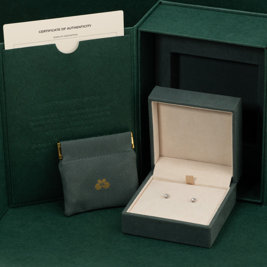 Øredobbene kommer i vår eksklusive Diamond Collection boks med en flott smykkeeske, diamantsertifikat og pouch. Boksen er også helt perfekt om smykket skal gis i gave.