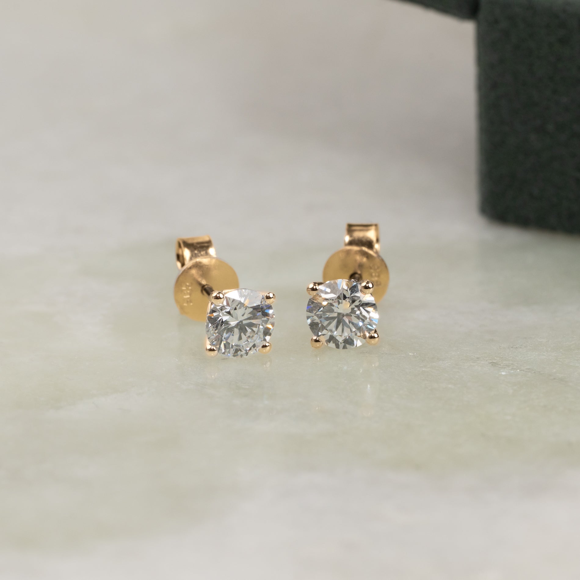 Våre Solitaire diamant-øredobber er laget i 14 karat massivt gull med lab-grown diamanter, hver på 0,75 ct. med en samlet vekt på 1,5 ct. De har fargen E/F (River) og klarhet VVS. Smykket er laget med omtanke; diamantene er produsert med blant annet solenergi, og gullet er 100% sertifisert resirkulert.