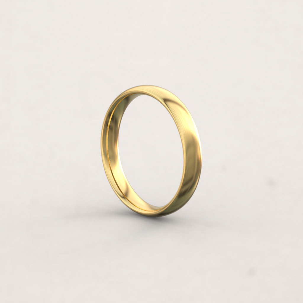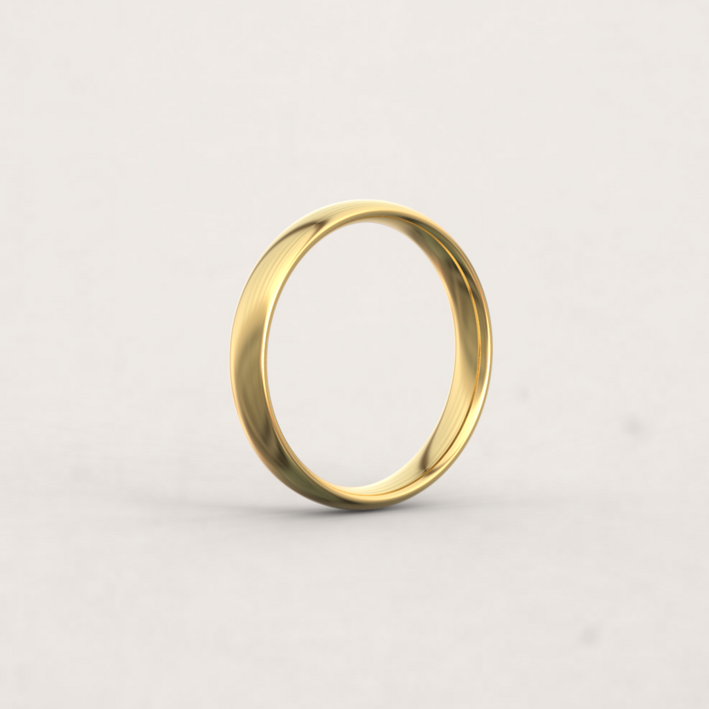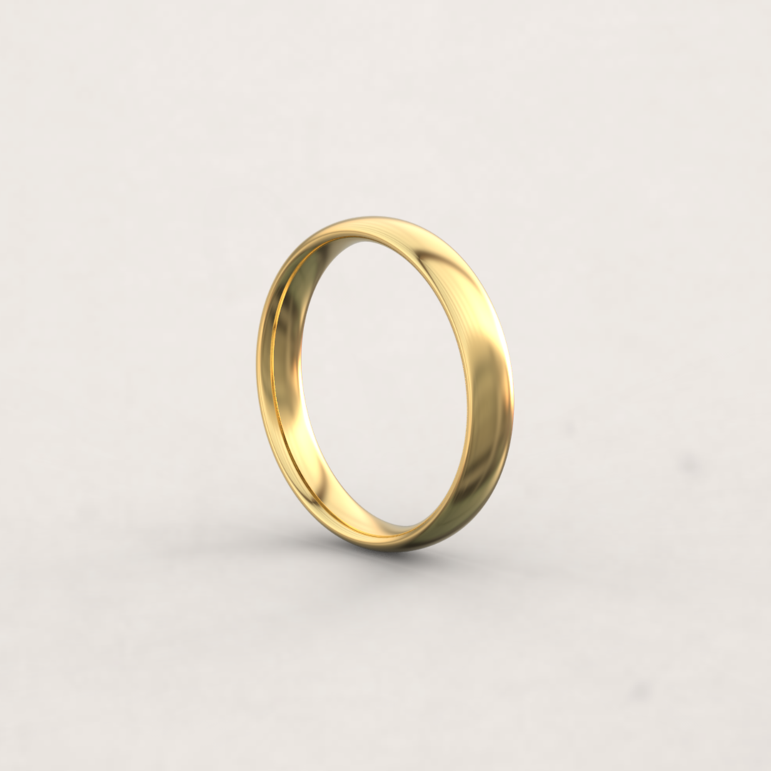 D-profilen består av en flat innside og en buet utside, slik at ringens tverrsnitt danner en D-form. Dette er vår mest klassiske giftering, med sitt myke og elegante uttrykk.