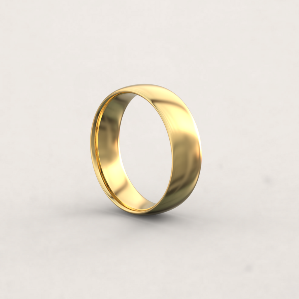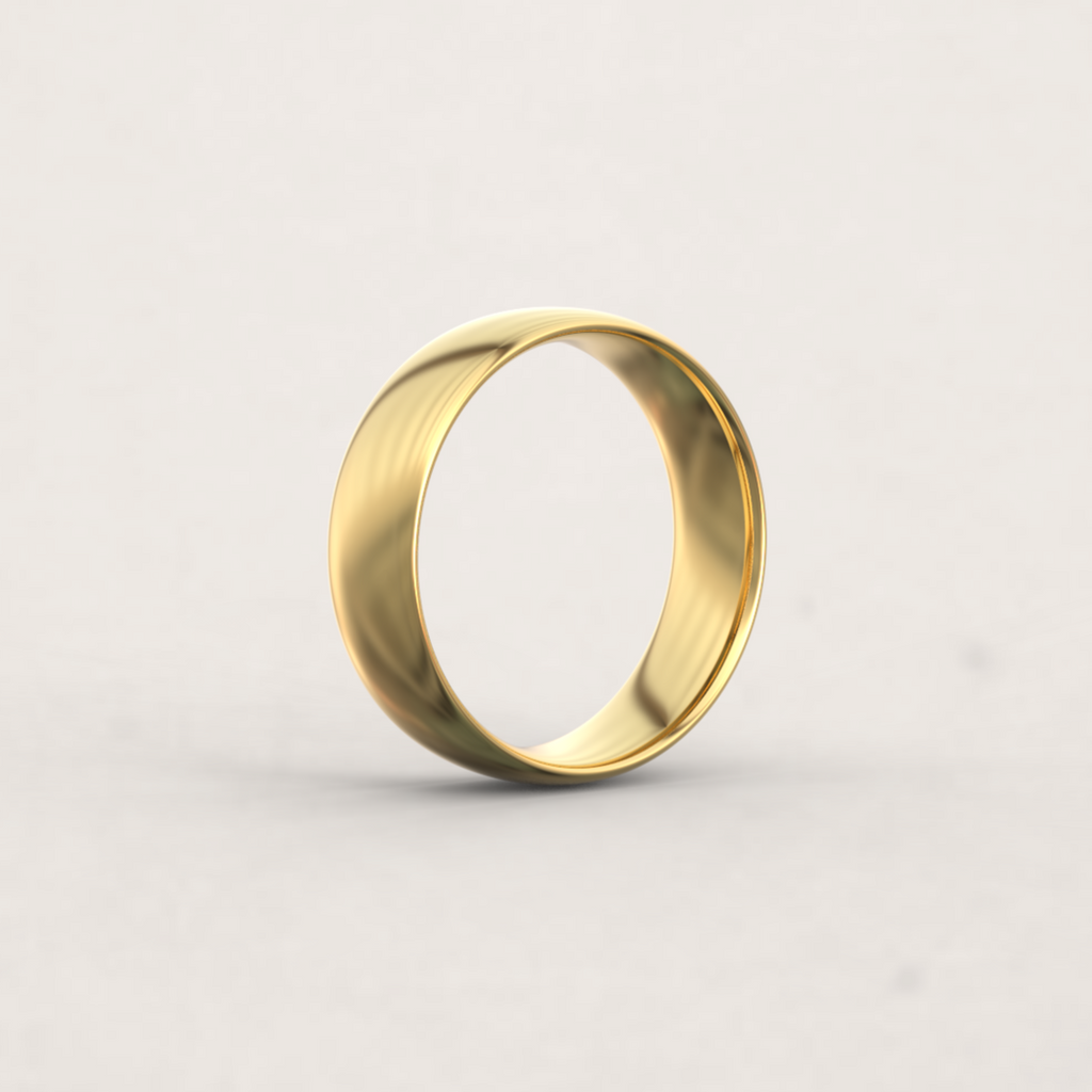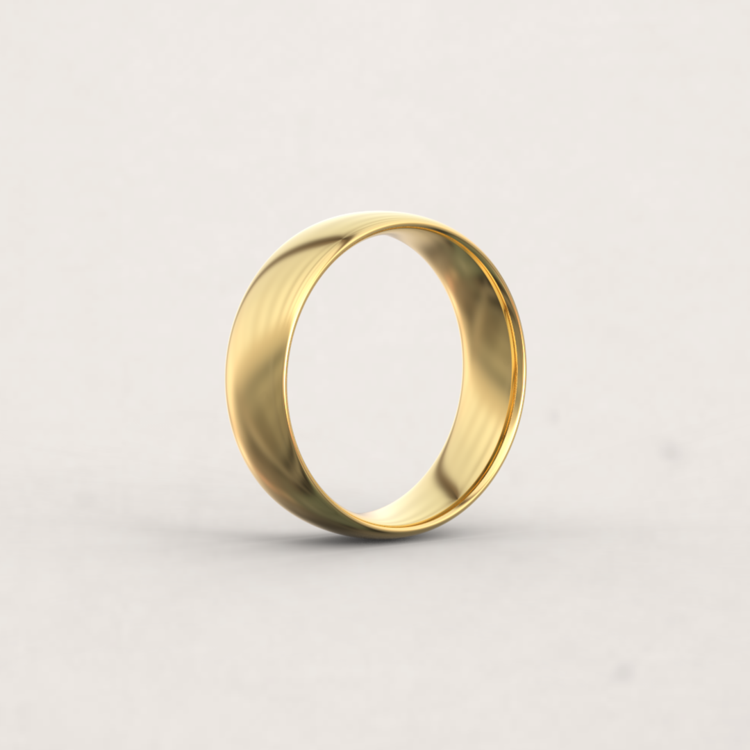 D-profilen består av en flat innside og en buet utside, slik at ringens tverrsnitt danner en D-form. Dette er vår mest klassiske giftering, med sitt myke og elegante uttrykk.
