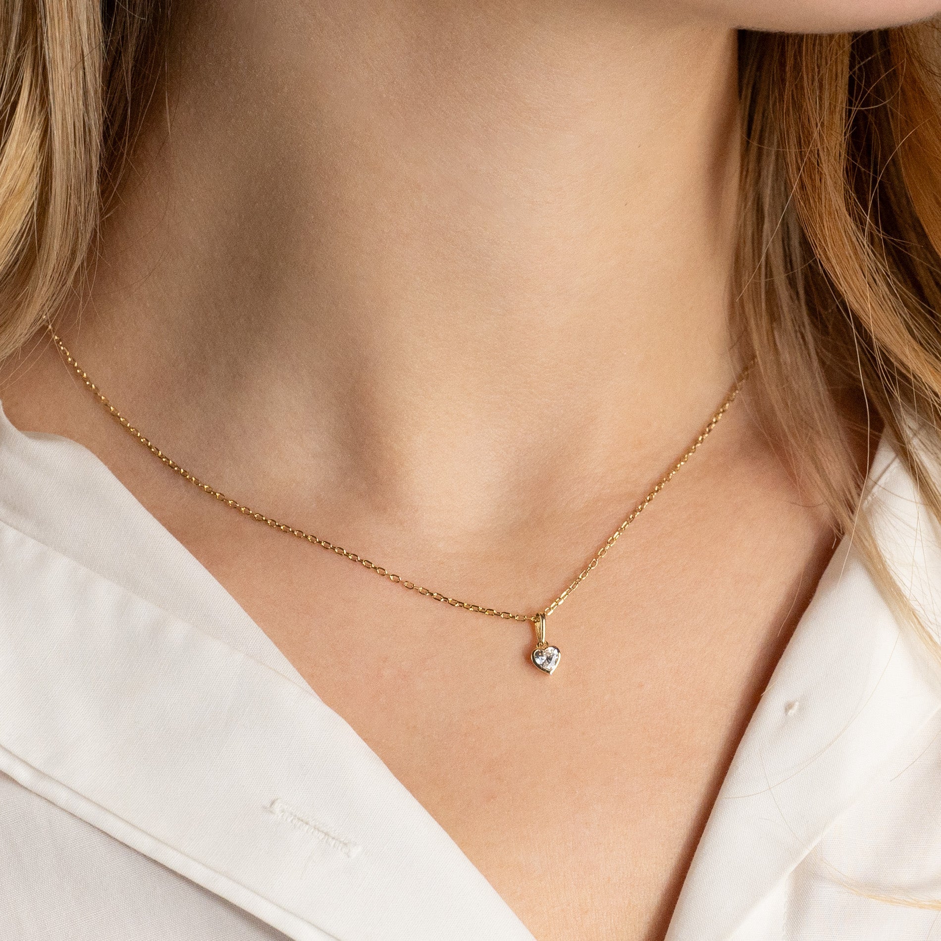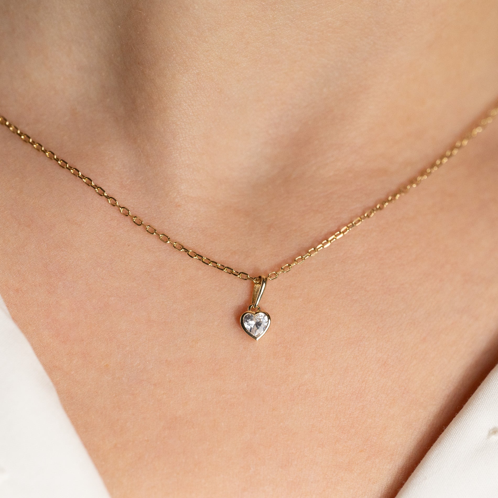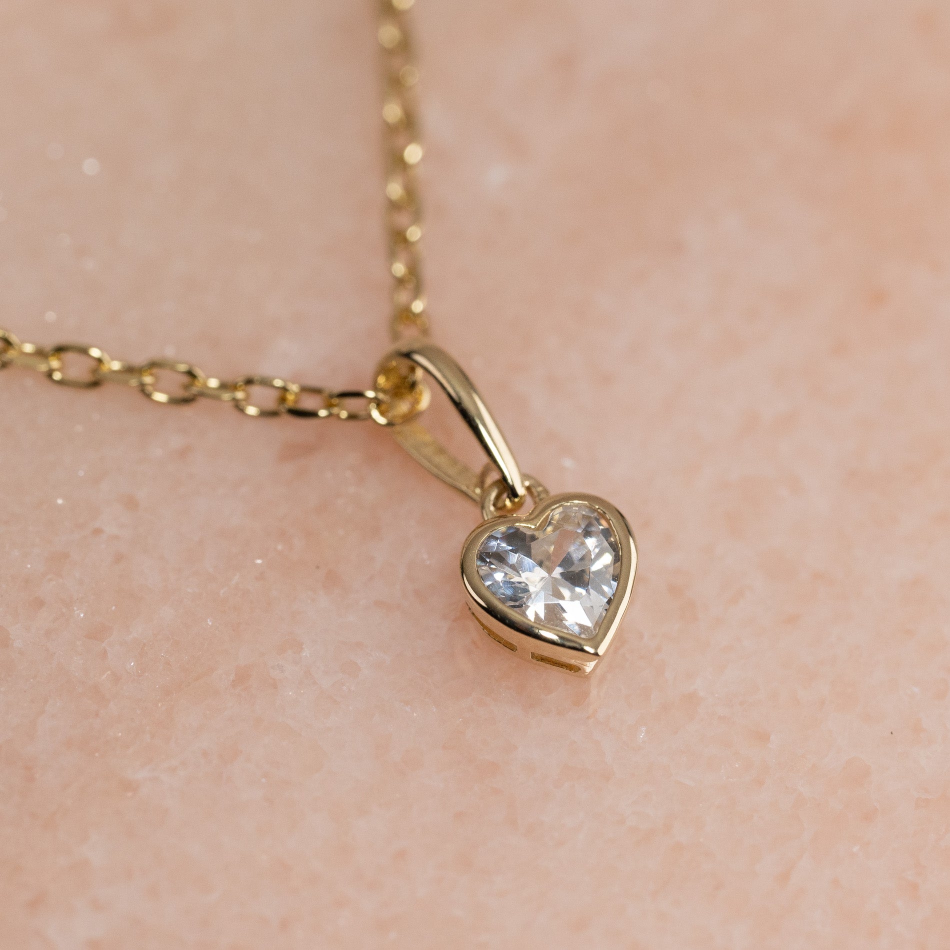 Liten halskjedeanheng med hjertefasettert zirkon og 100 % resirkulert 9 kt. massivt gull.