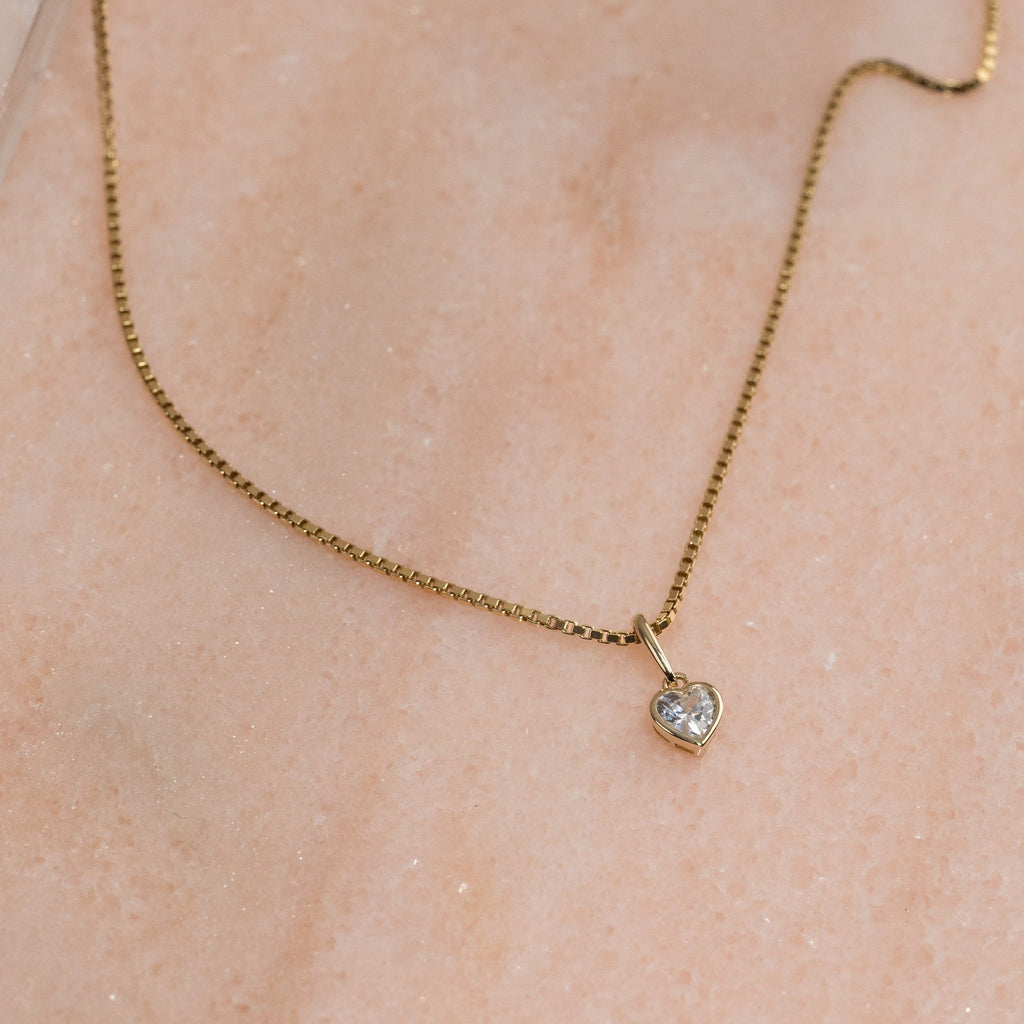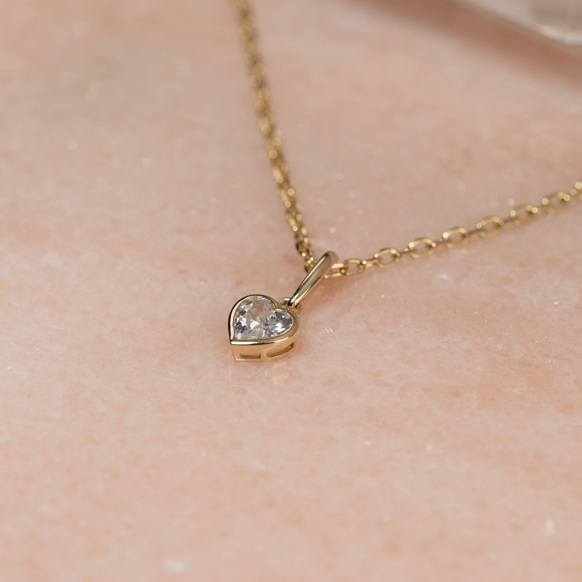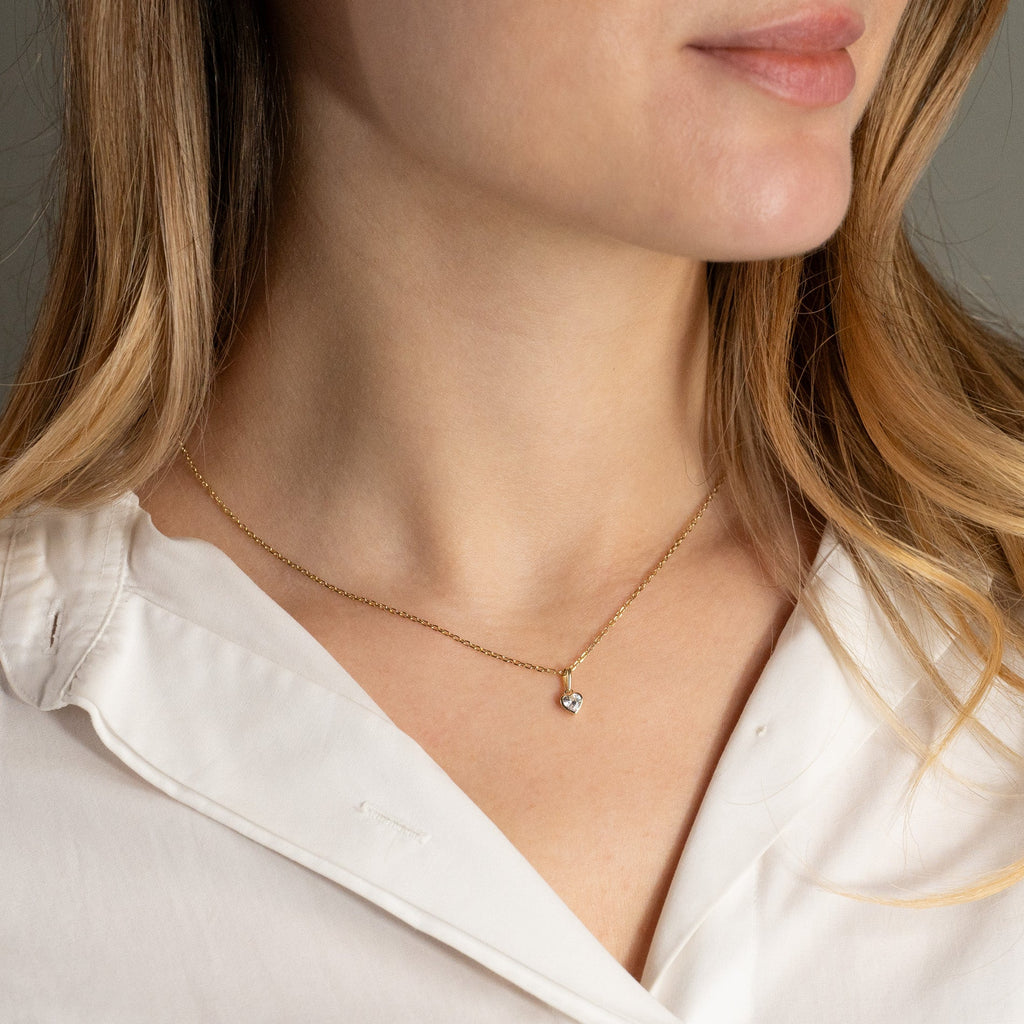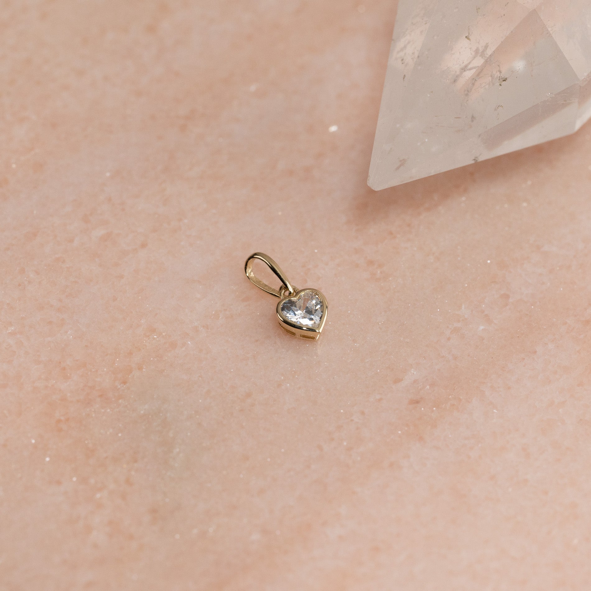 Liten halskjedeanheng med hjertefasettert zirkon og 100 % resirkulert 9 kt. massivt gull.
