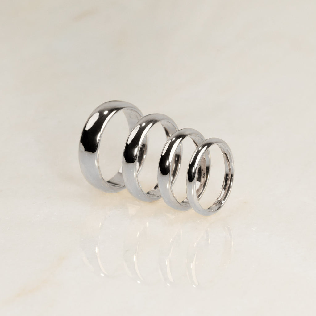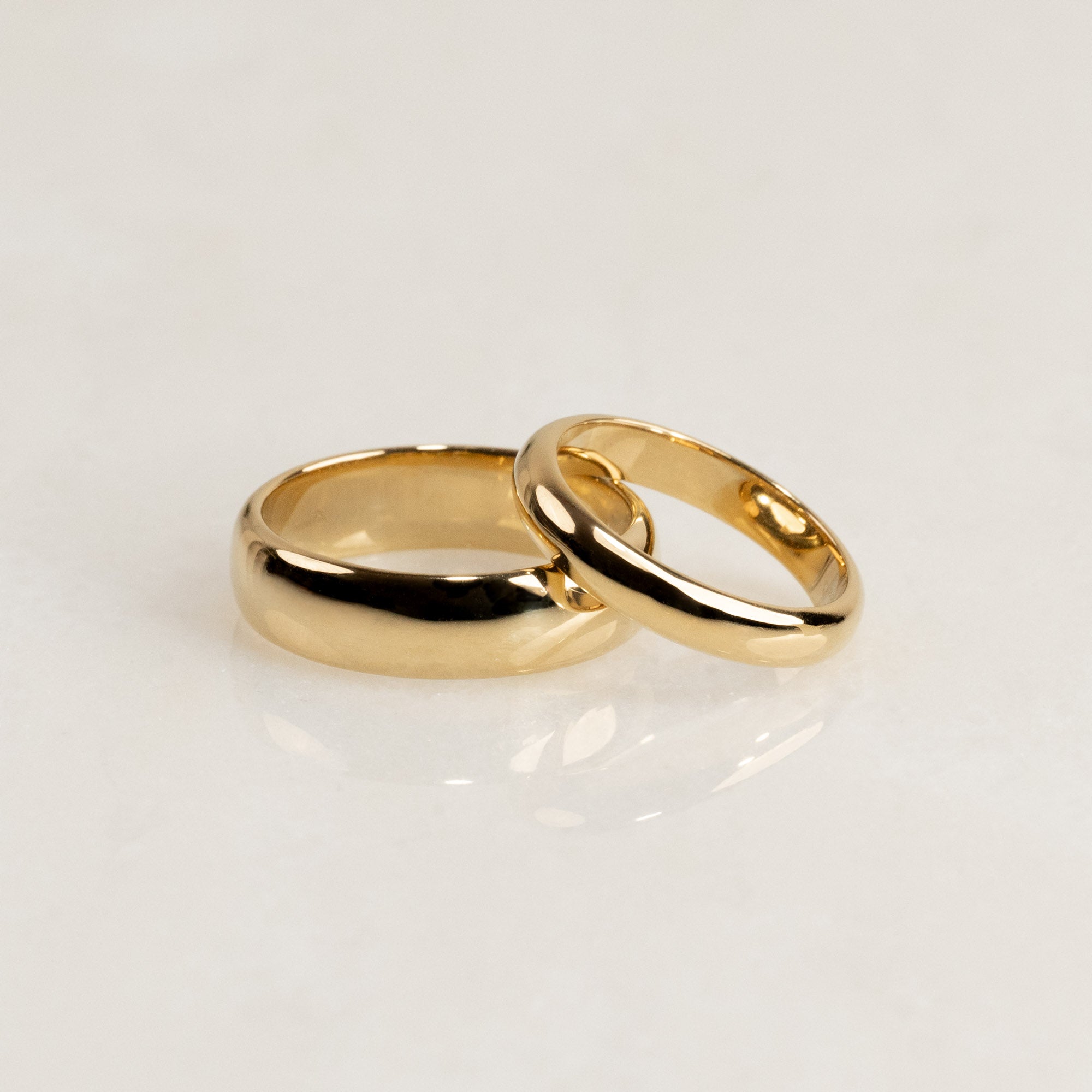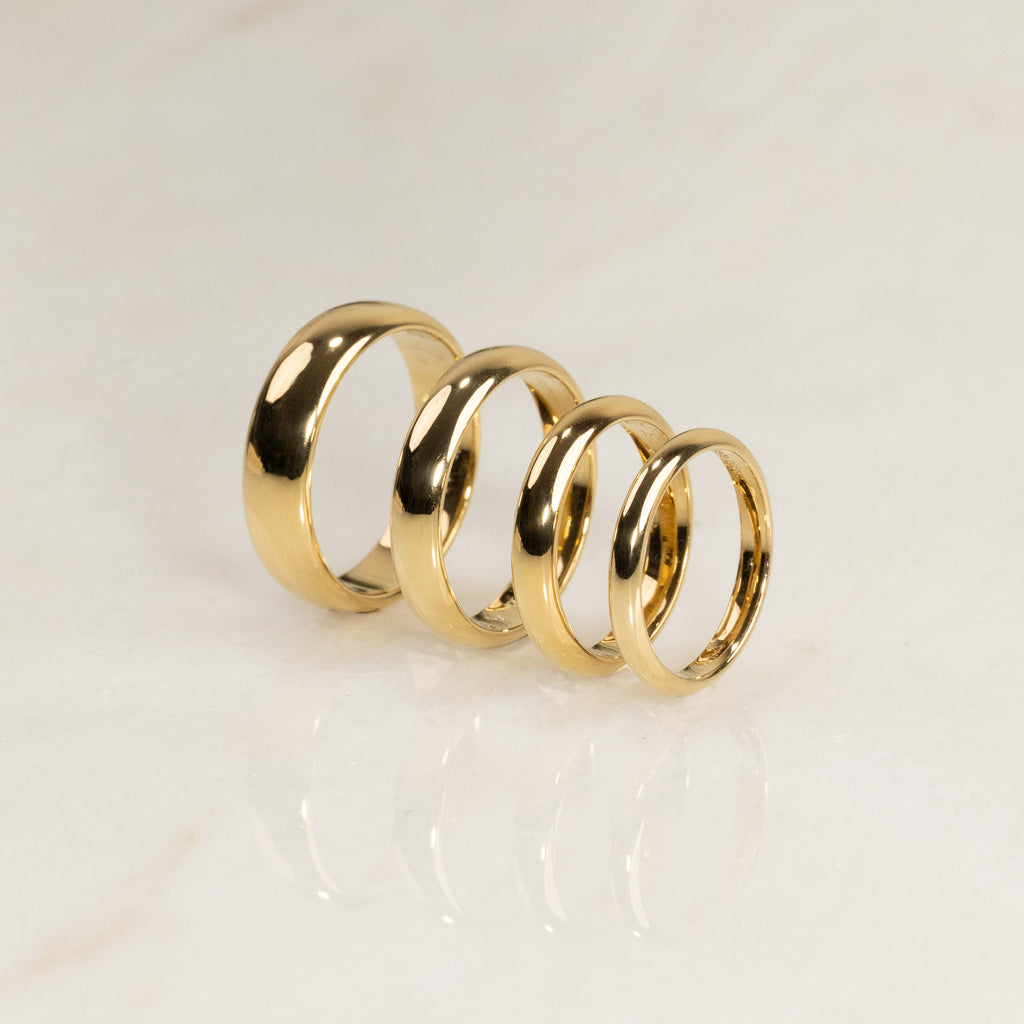 Giftering i 14 karat gull eller hvitt gull i en klassisk D-profil. D-profilen er kjennetegnet ved en flat innside og en buet utside, slik at tverrsnittet av ringen har en ‘D’-form.