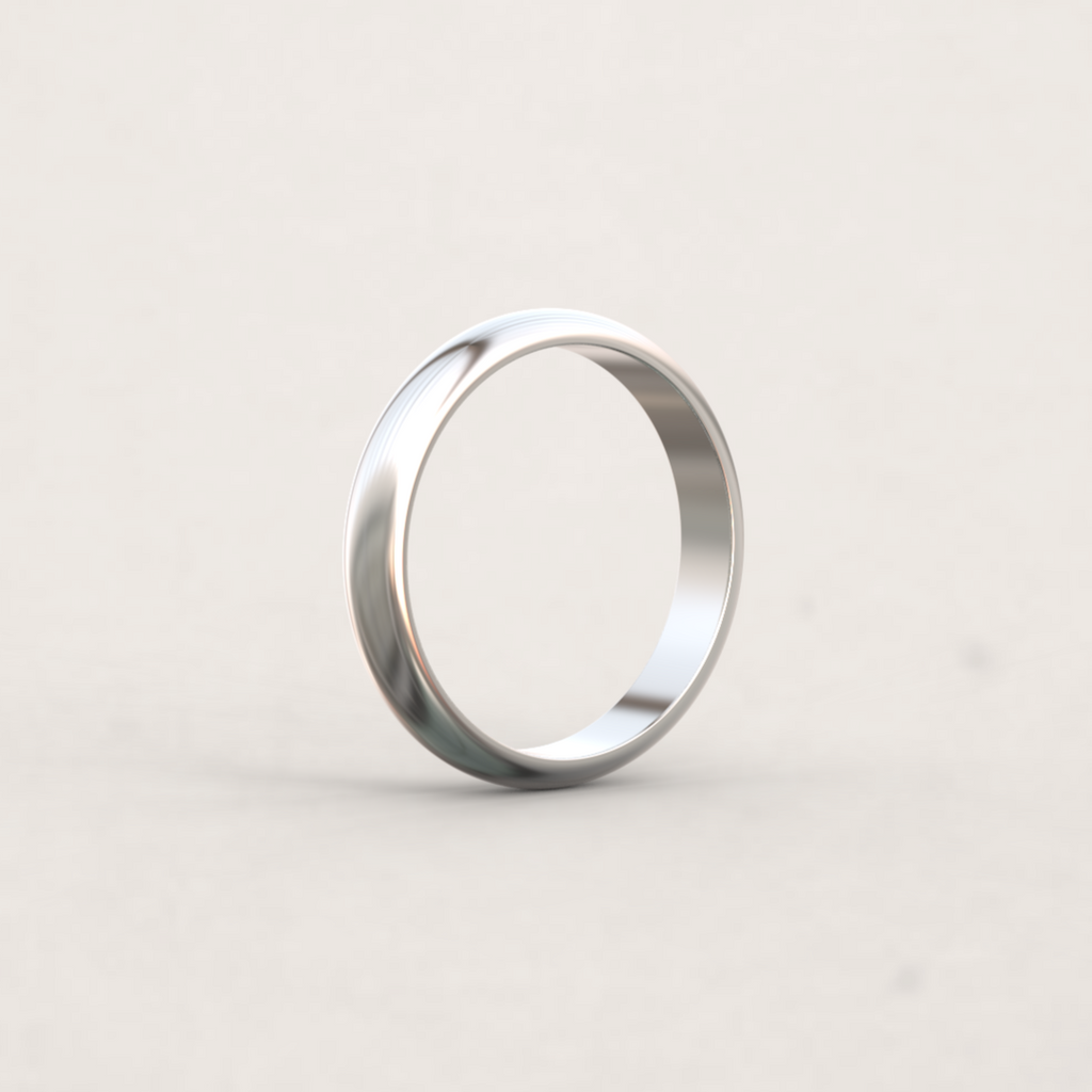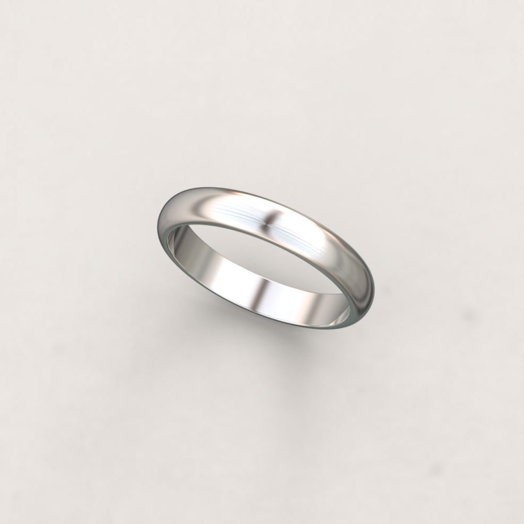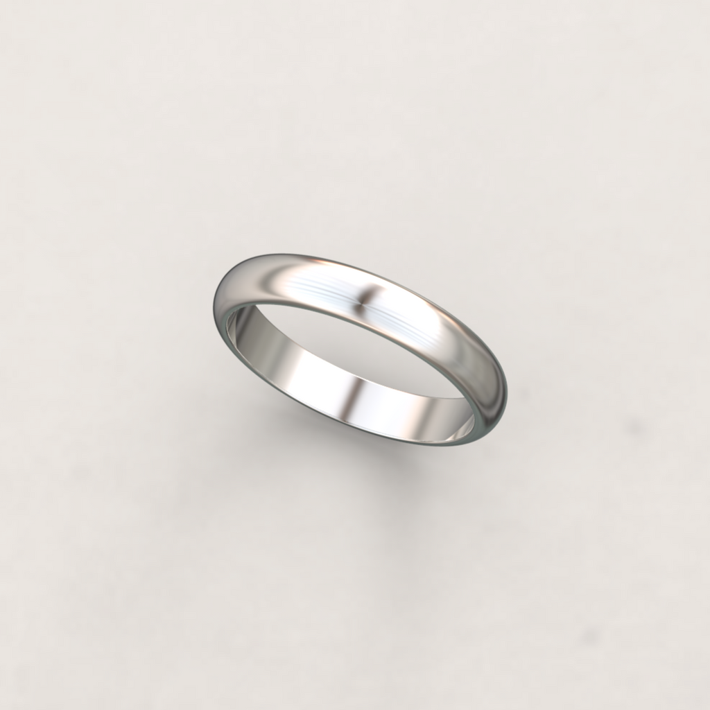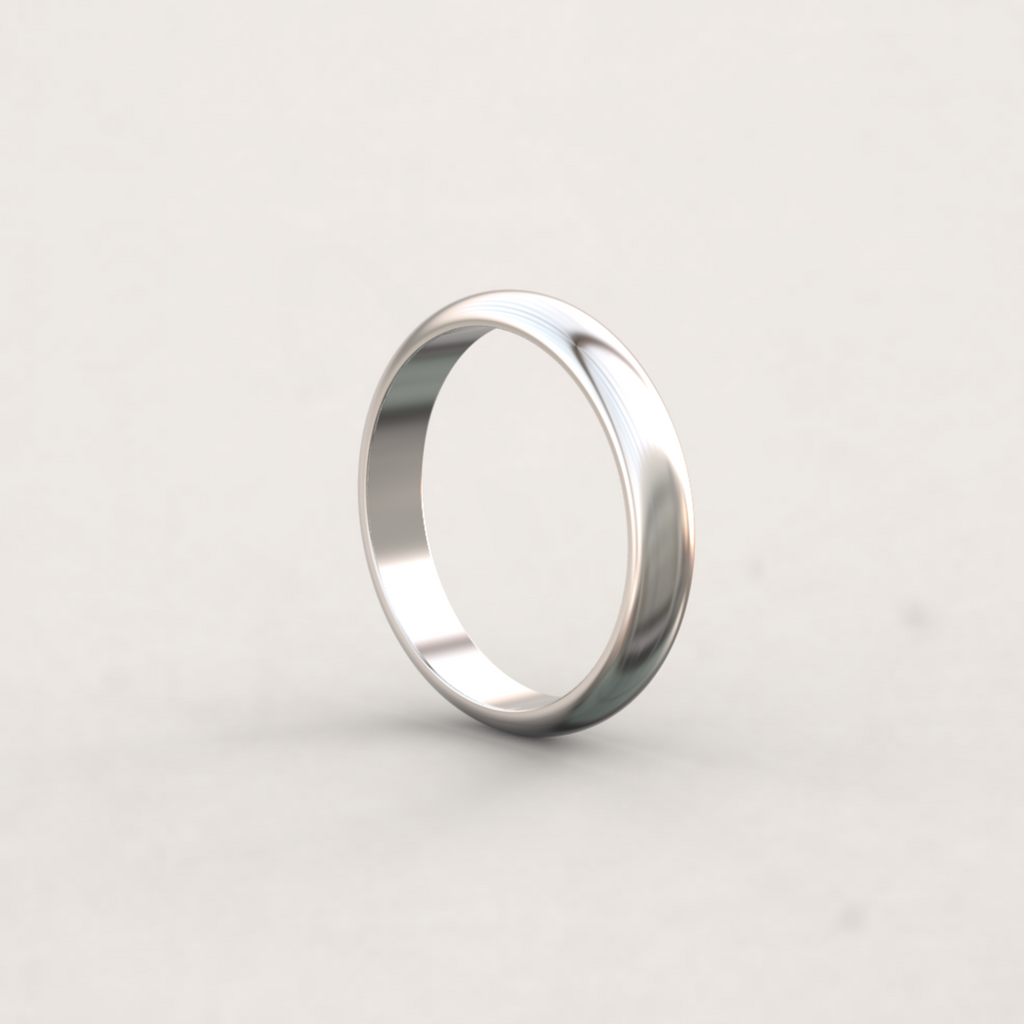 Giftering i 14 karat hvitt gull i en klassisk D-profil på 3,5 mm. D-profilen er kjennetegnet ved en flat innside og en buet utside, slik at tverrsnittet av ringen har en ‘D’-form.