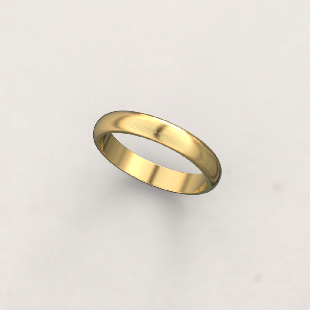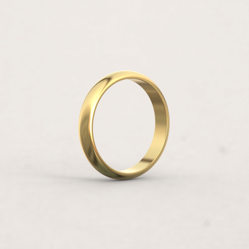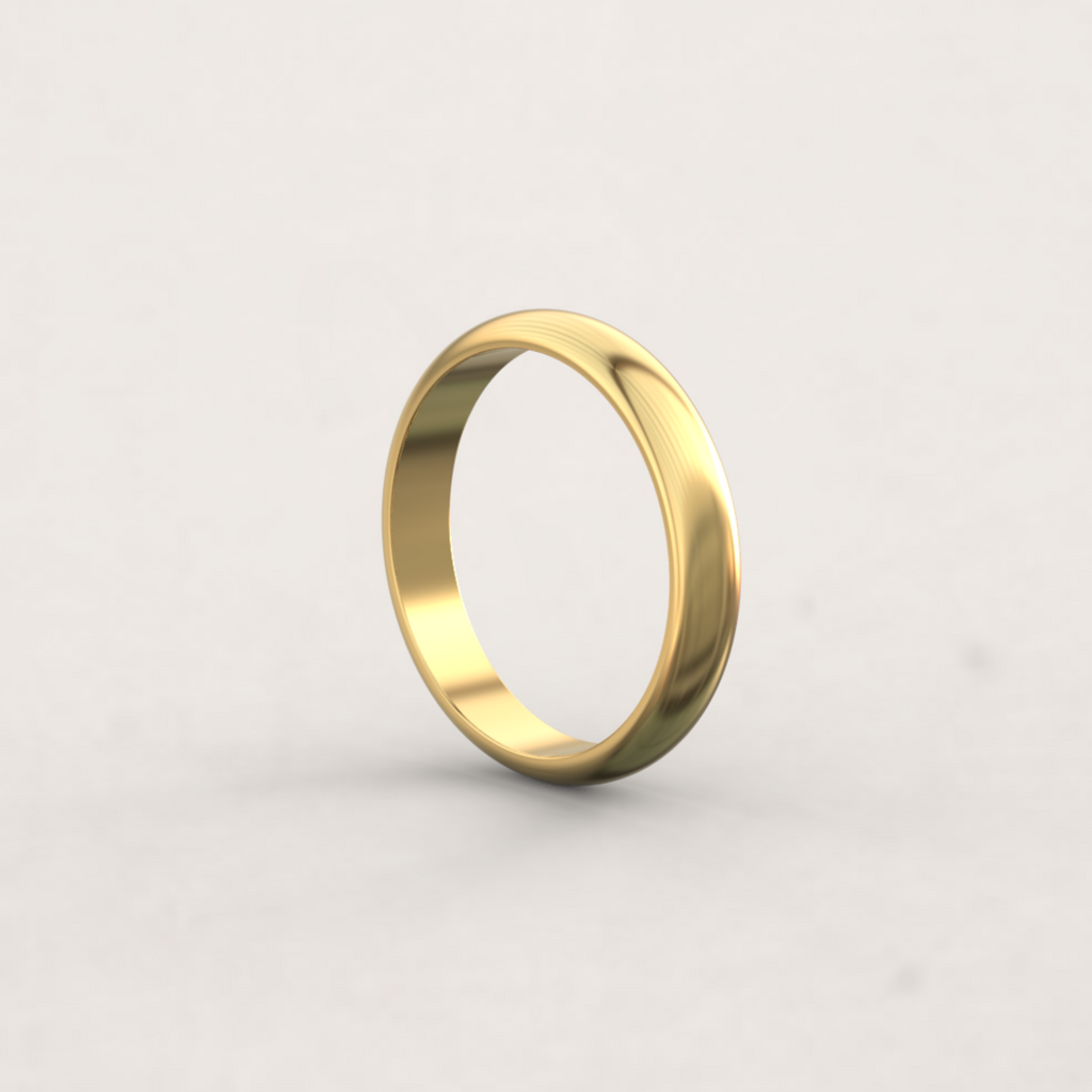 Giftering i 14 karat gull i en klassisk D-profil i 3,5 mm. D-profilen er kjennetegnet ved en flat innside og en buet utside, slik at tverrsnittet av ringen har en ‘D’-form.