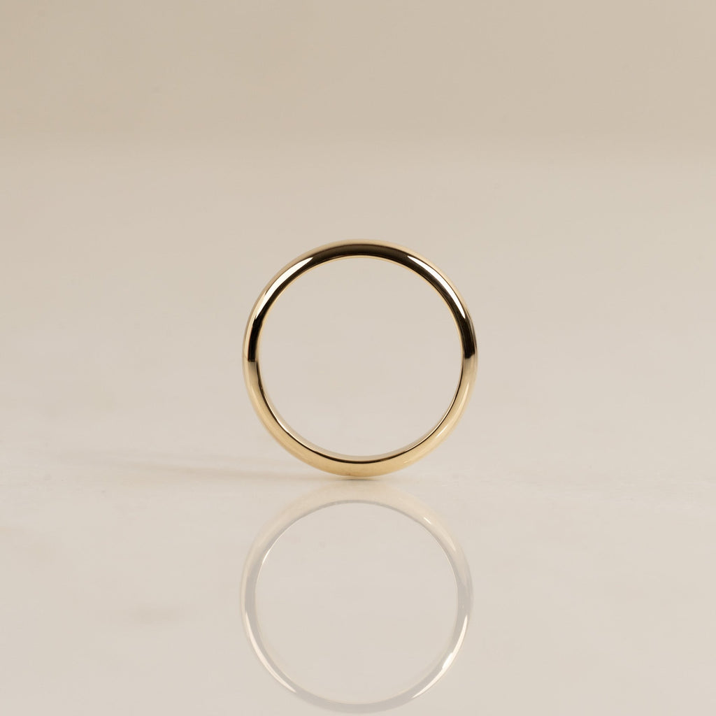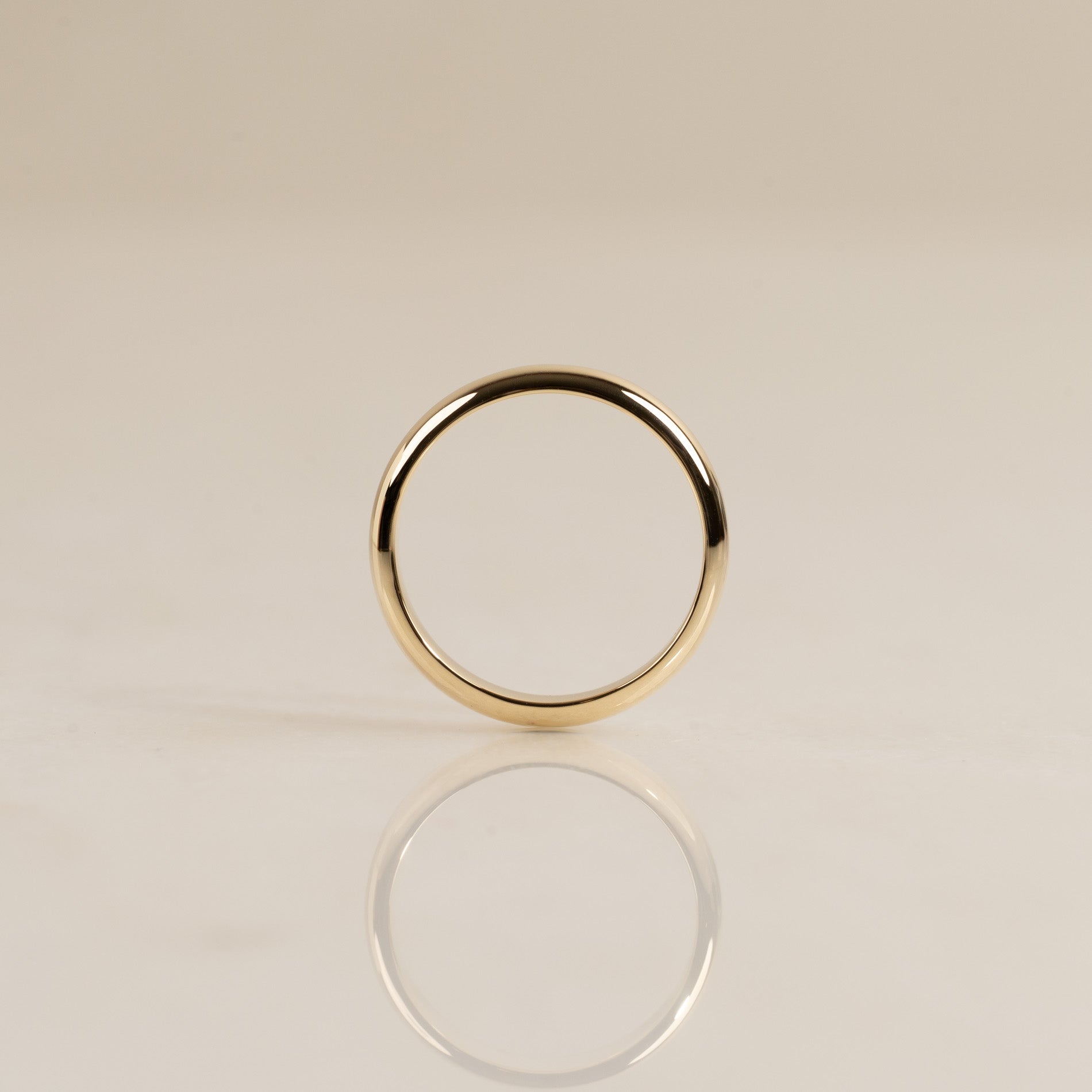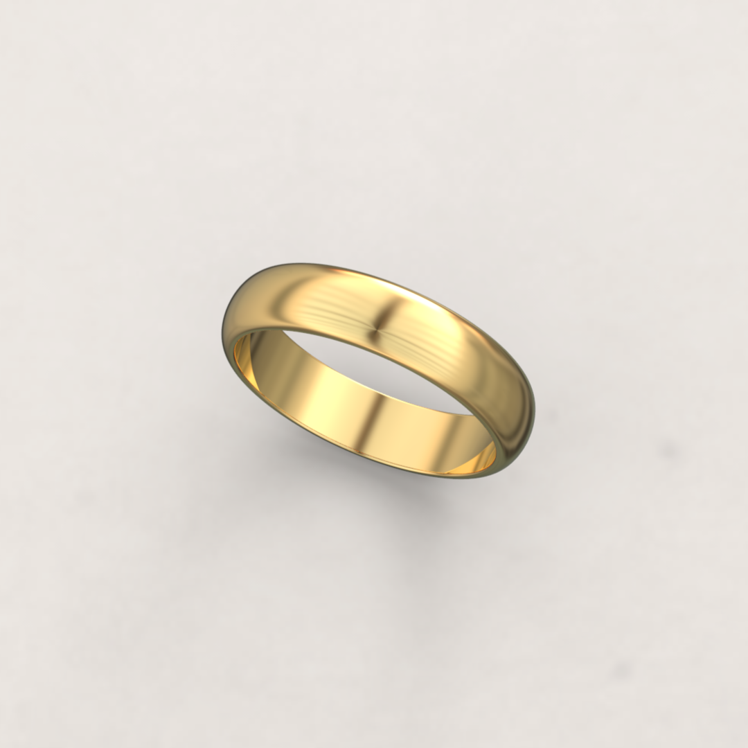 Giftering i 14 karat gull i en klassisk D-profil i 4,5 mm. D-profilen er kjennetegnet ved en flat innside og en buet utside, slik at tverrsnittet av ringen har en ‘D’-form.