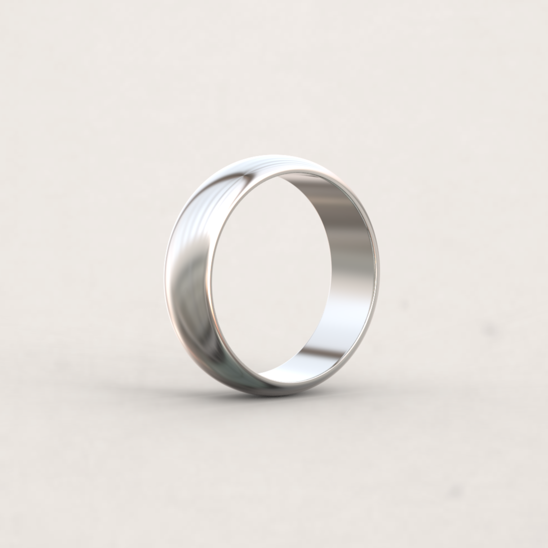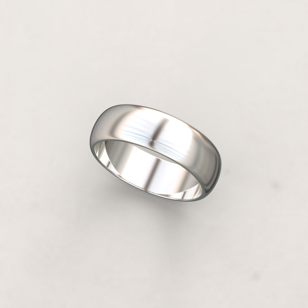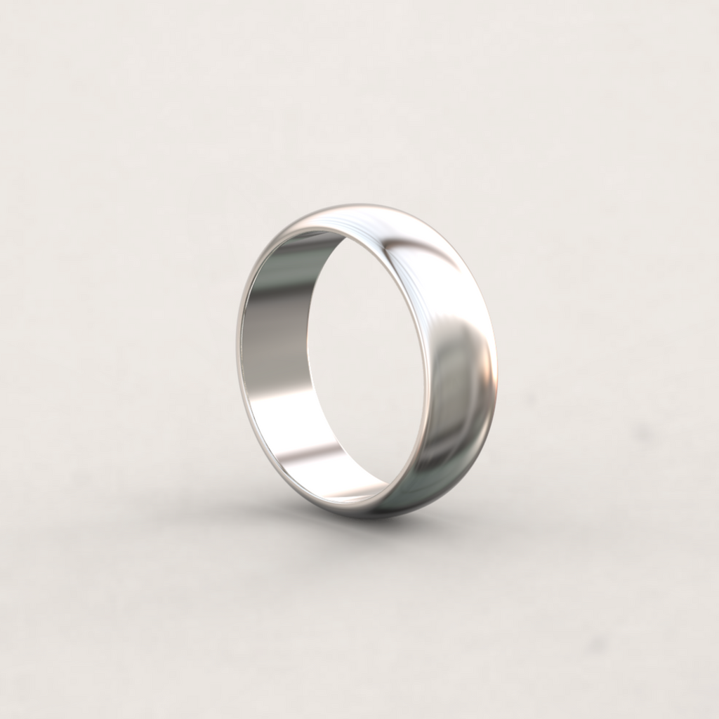 Giftering i 14 karat hvitt gull i en klassisk D-profil på 6 mm. D-profilen er kjennetegnet ved en flat innside og en buet utside, slik at tverrsnittet av ringen har en ‘D’-form.