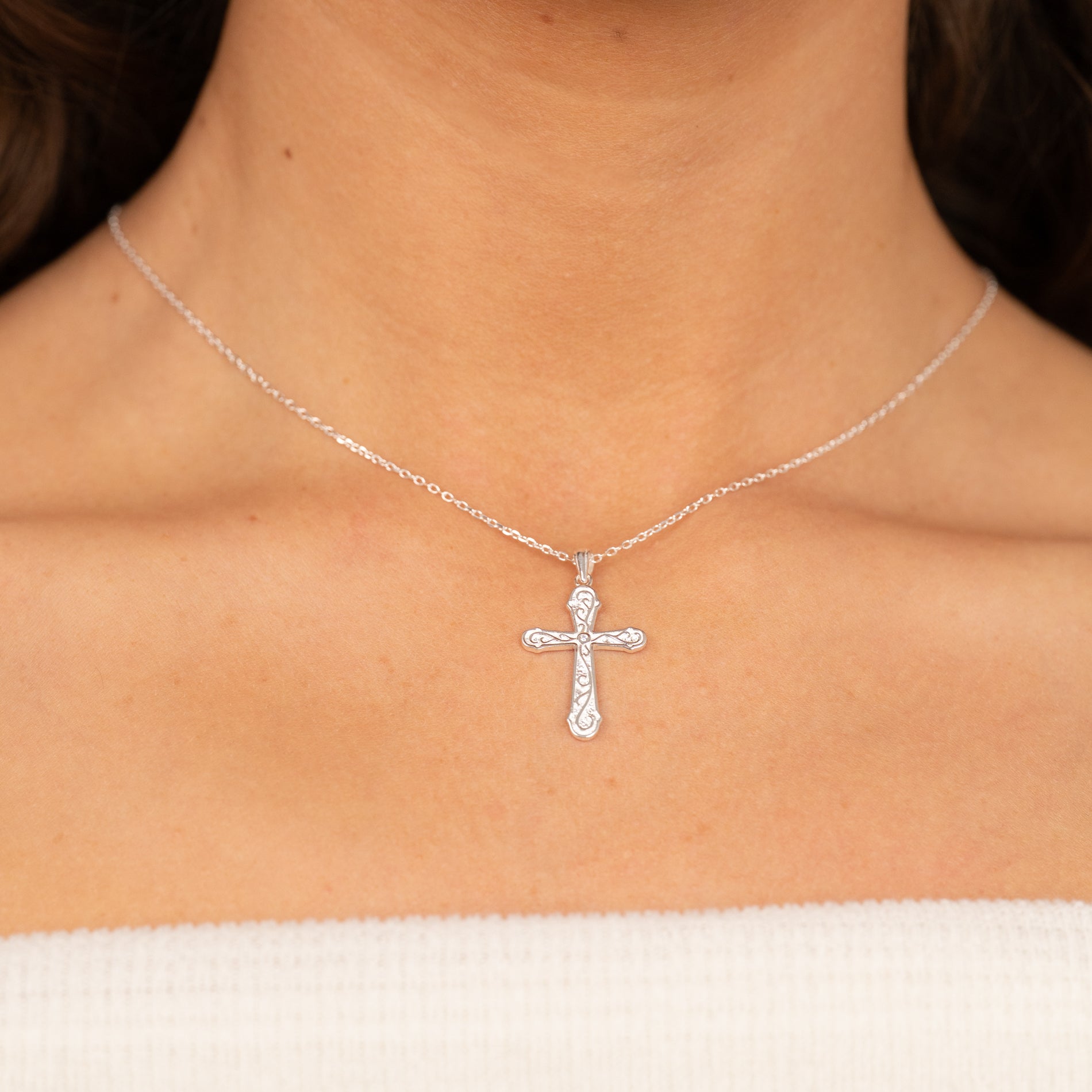 Anhenget er en moderne tolkning av det klassiske Dagmarkorset og har med sine ulike teksturer et elegant og tidløst uttrykk. Det gjør det perfekt som et symbolsk smykke eller en personlig gave til konfirmasjon eller andre spesielle anledninger.