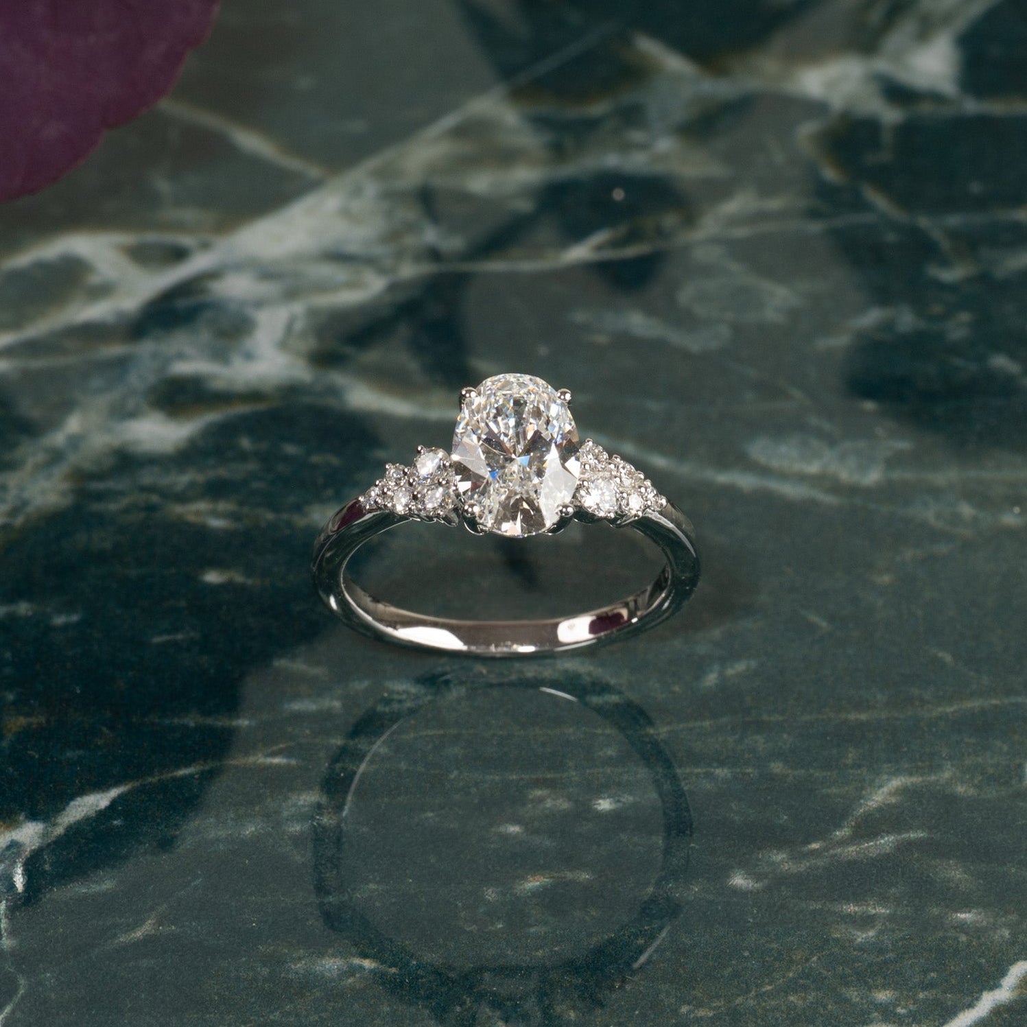 DELICATE CLUSTER OVAL-CUT LAB-DIAMOND RING - 1.85ct - WG