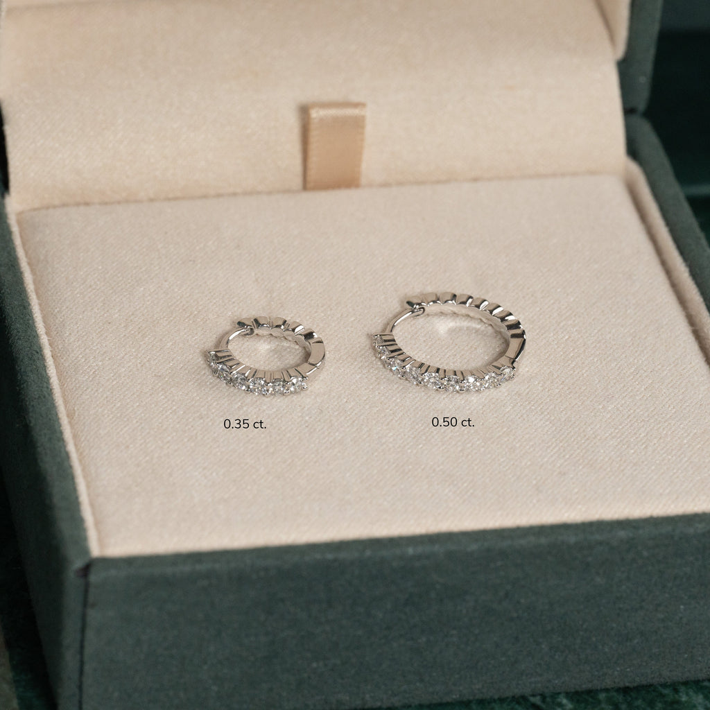 Klassiske diamantcreoler laget i 14 karat hvitt gull med 6 lab-dyrkede diamanter hver med en totalvekt på 0,35 ct.