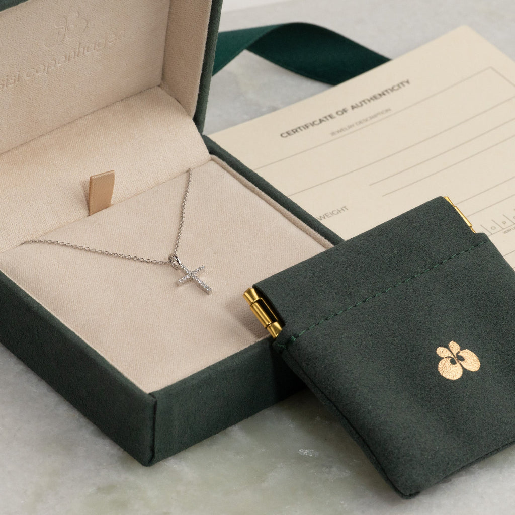 Smykket leveres i vår eksklusive Diamond Collection-eske. Esken inneholder en smykkeeske, et sertifikat og en pose. Esken er pyntet med et fint gavebånd – klar til å gi i gave.