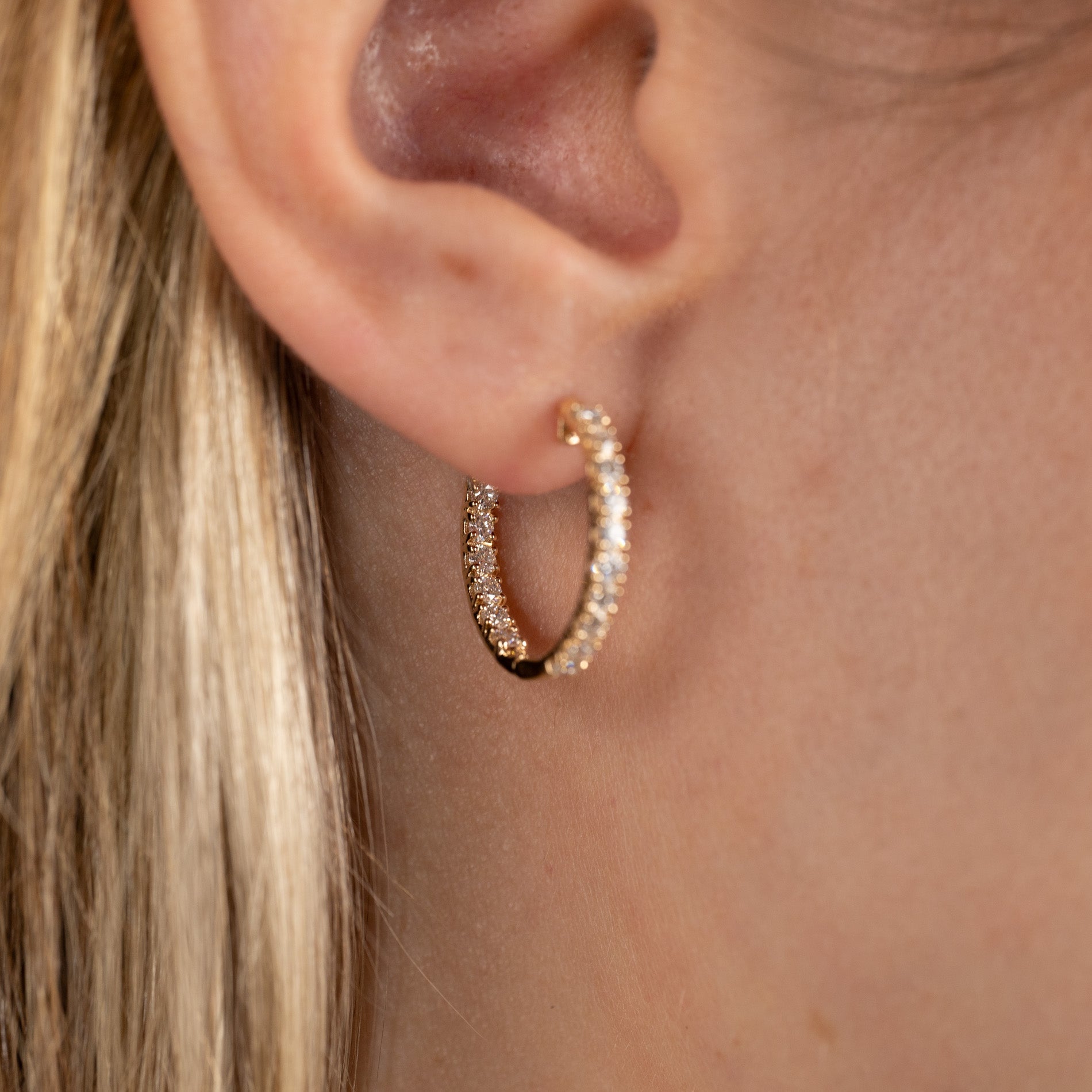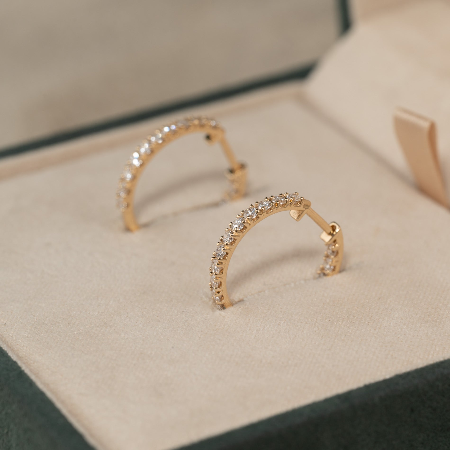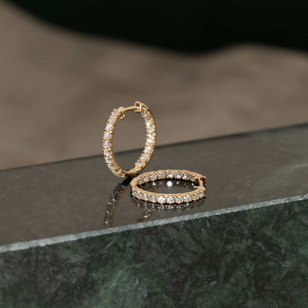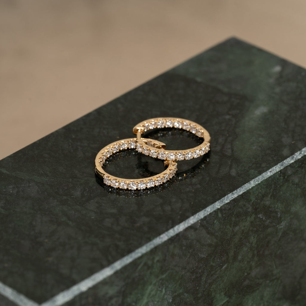 Creoler i 14 karat gull besatt med 1,0 ct. lab-dyrkede diamanter utvendig og innvendig. Øredobbene er moderne, ekstraordinære og utrolig elegante. De er perfekte for festlige begivenheter eller om du vil ha et ekstra fint hverdagssmykke som skiller seg ut.