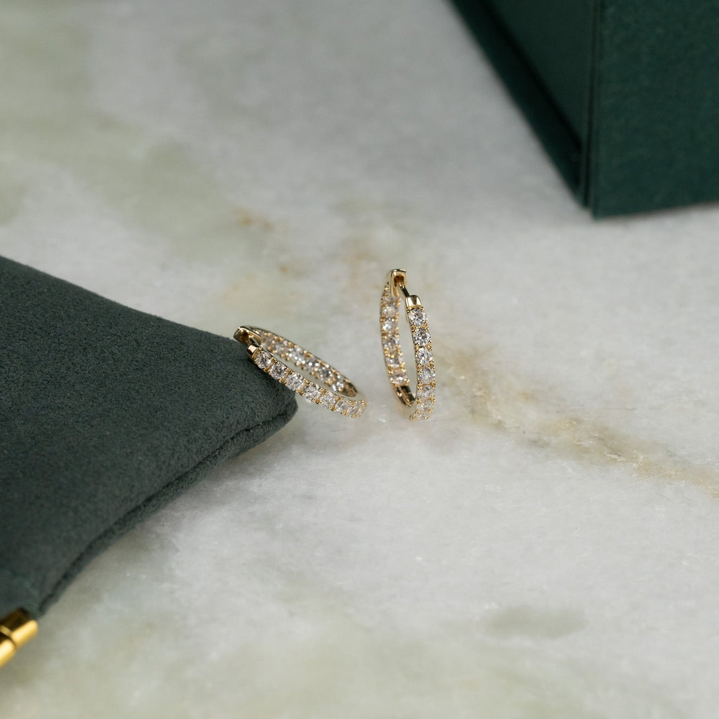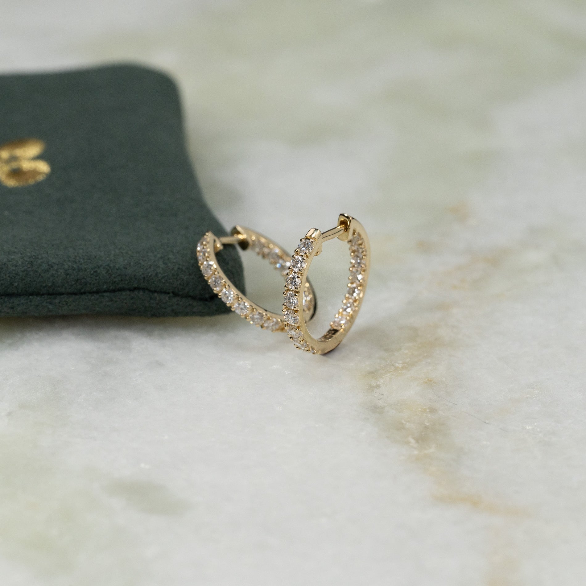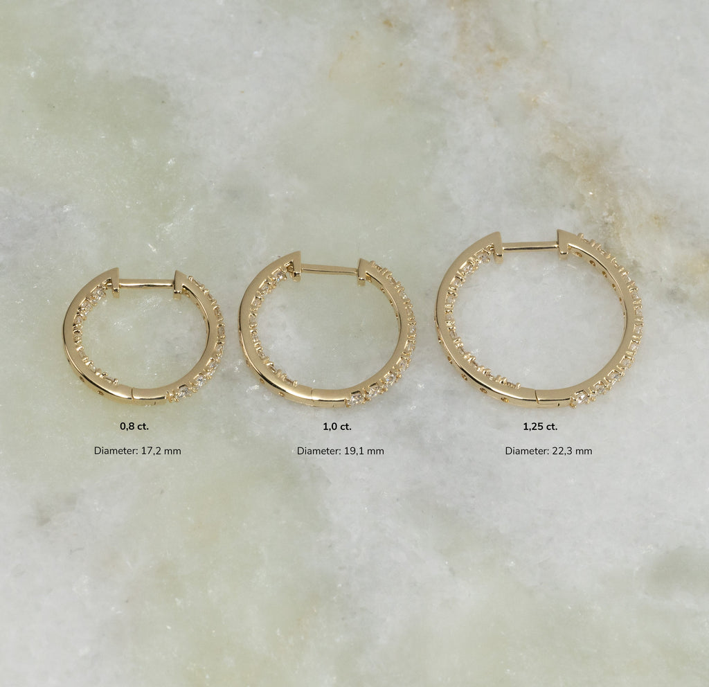 Creoler i 14 karat gull besatt med 0,8 ct. Lab-grown diamanter utvendig og innvendig.