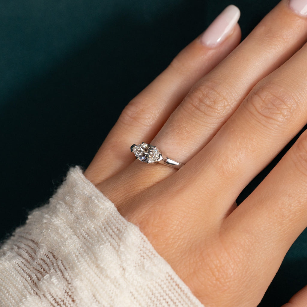 Ring i 14 karat hvitt gull med en 1,0 ct. marquise-slipt lab-grown diamant. Steinen er vakkert innfattet i en East To West basket-fatning, med 4 talon- og 2 V-klør, som komplimenterer den elegante steinen. Ringen er en perfekt cocktailring, den perfekte gave til en du elsker og holder av, eller som den perfekte forlovelsesring.