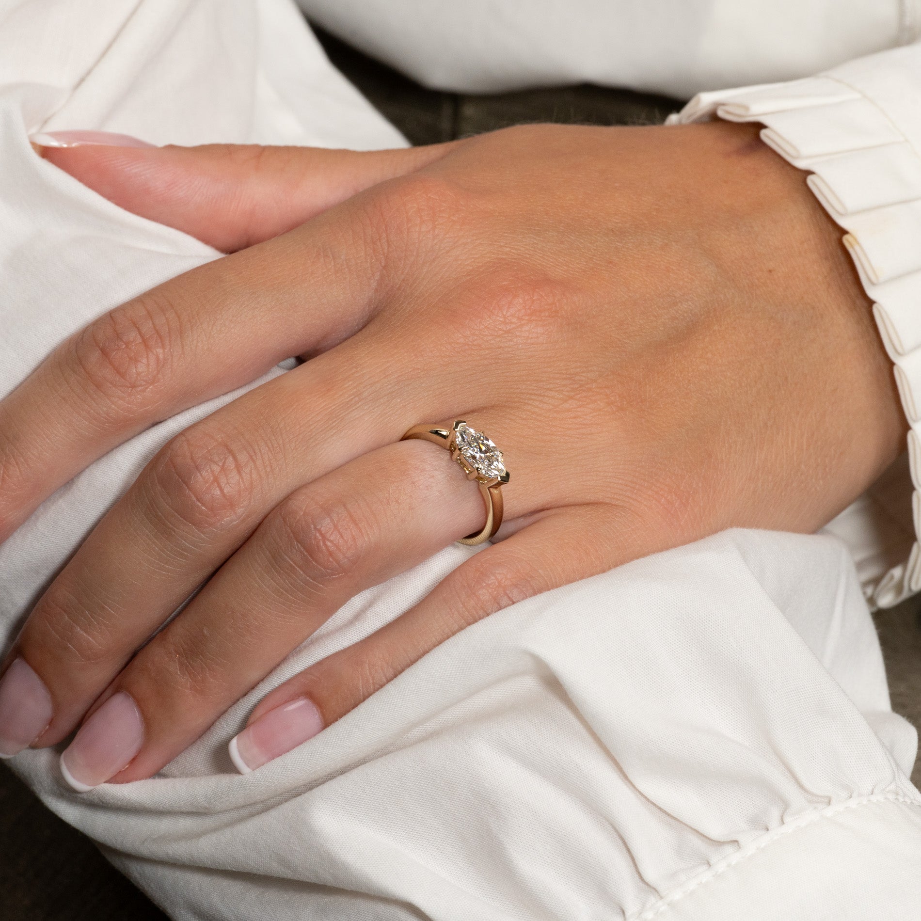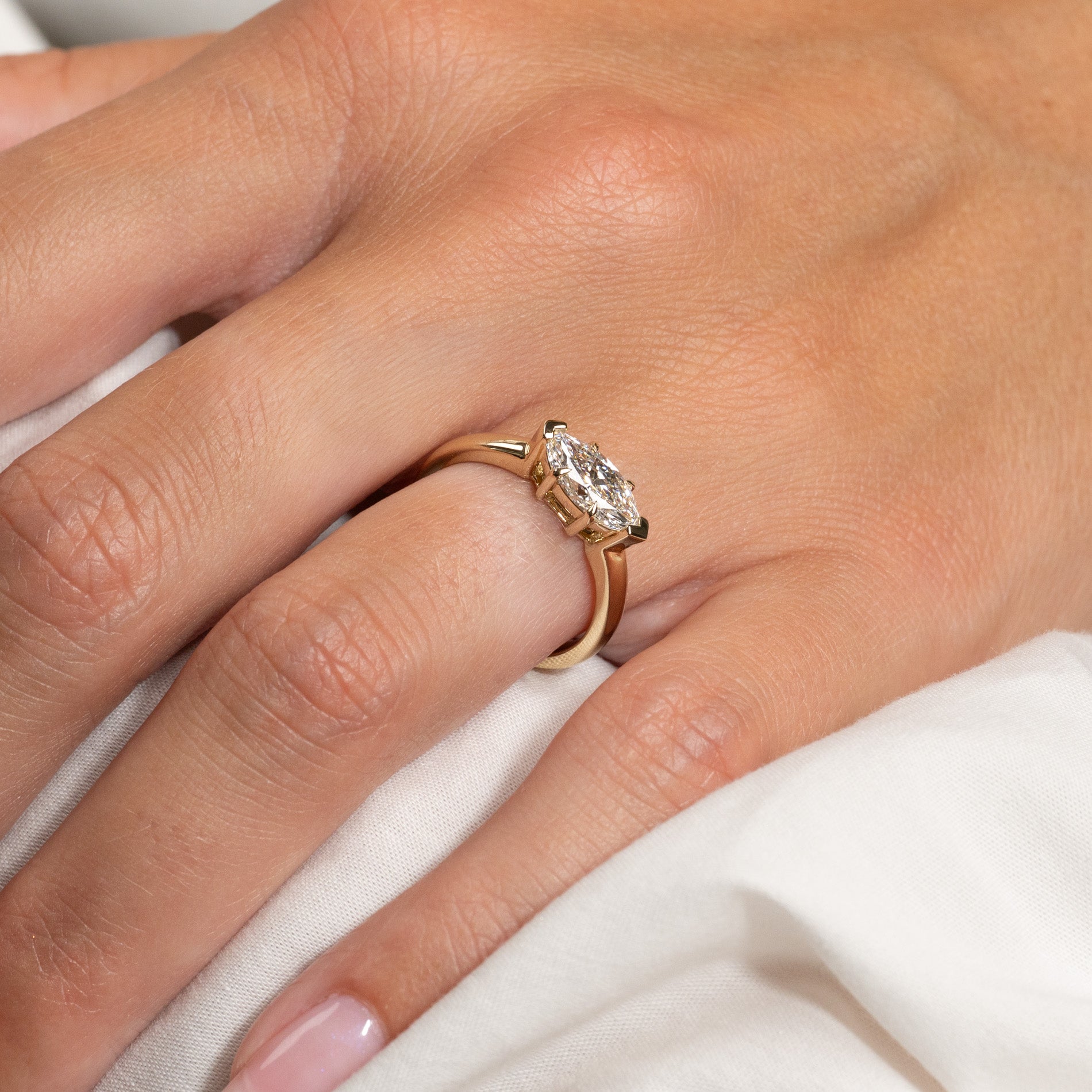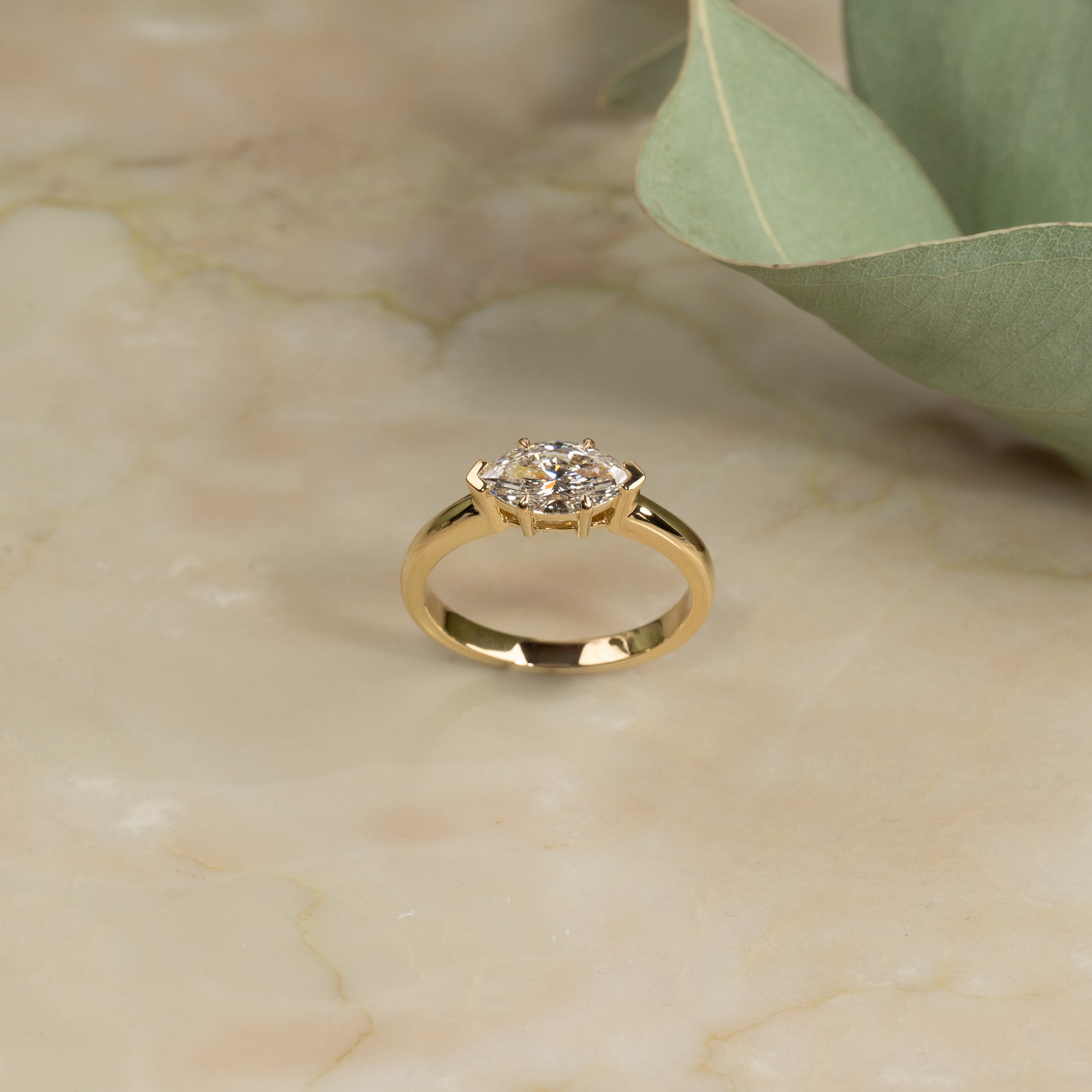 EAST TO WEST MARQUISE-CUT SOLITAIRE LAB-DIAMOND RING - 1.0ct - YG