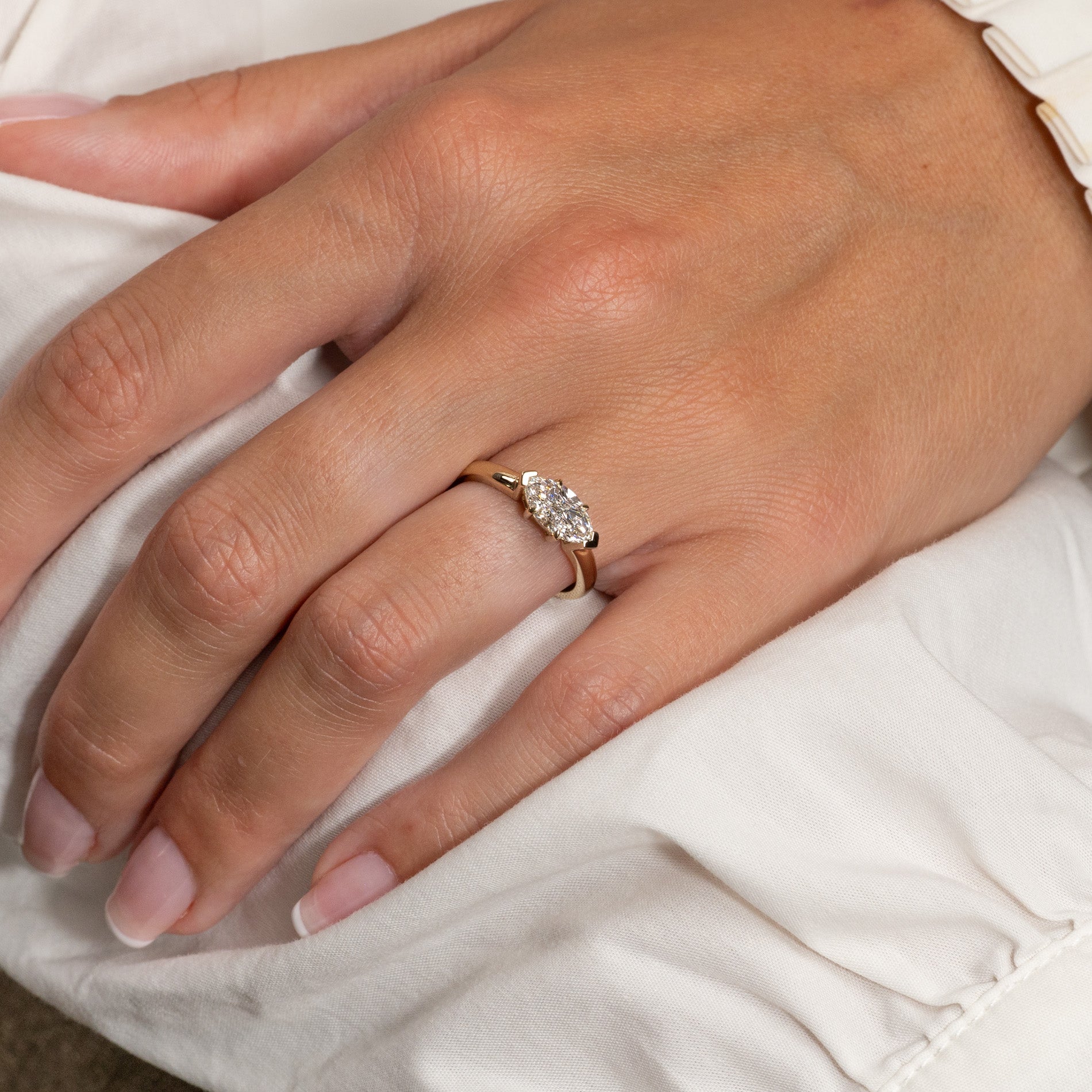 East-to-west solitaire med 1,0 ct. marquise-slebet lab-grown diamant